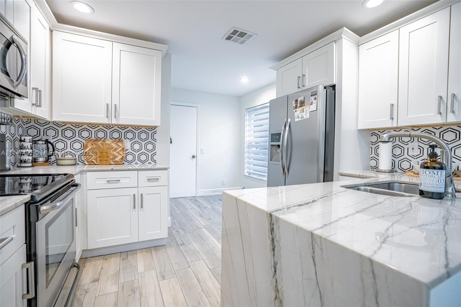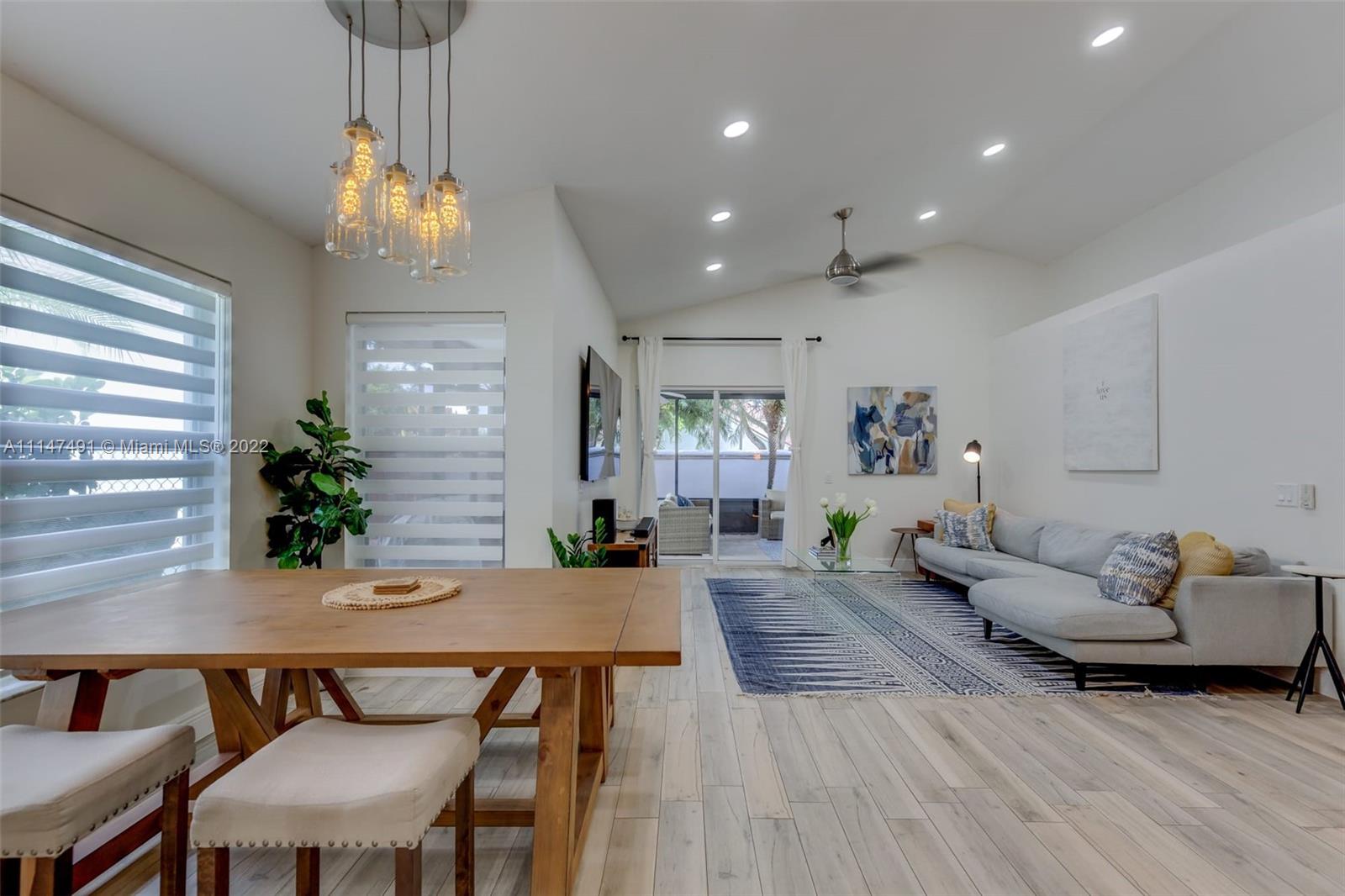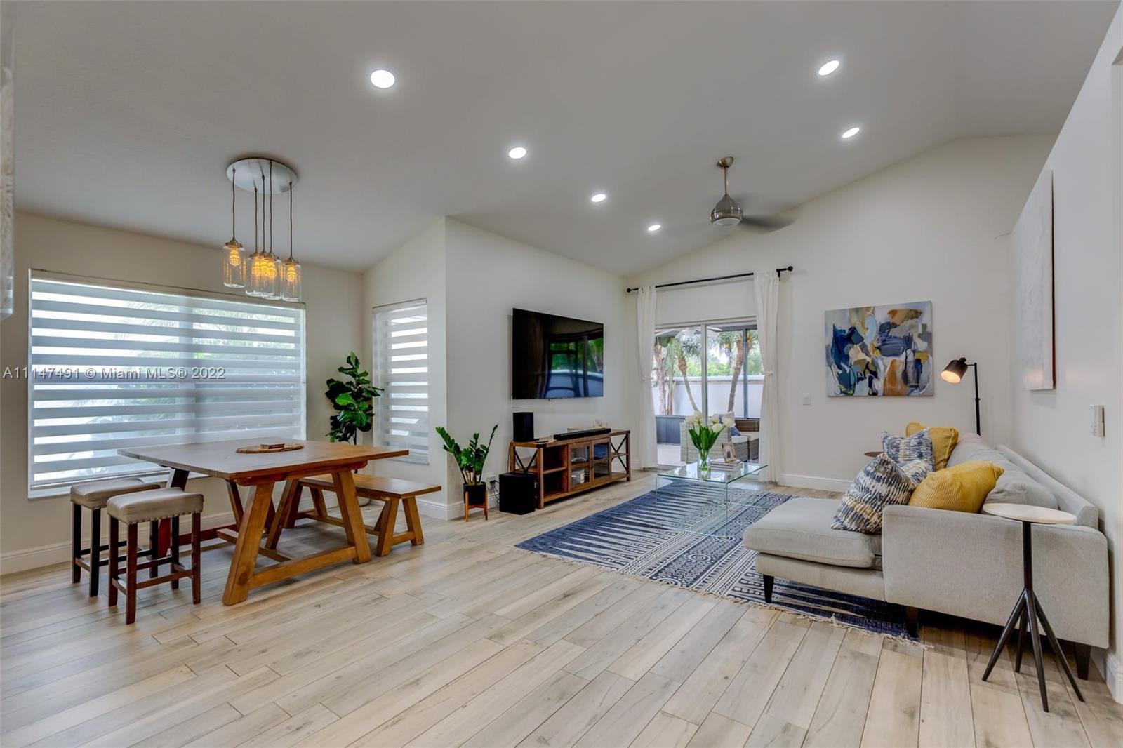 Beautiful turn-key single-family home located in the sought-after Forest Ridge Davie community. The home features a stunning renovated open-concept kitchen with white shaker cabinets, marble backsplash, waterfall countertop and stainless-steel appliances. Updated tile wood plank flooring, vaulted ceilings and recess lighting create a bright and welcoming space. Split bedroom design offers a spacious primary bedroom with walk-in closet, exquisitely finished ensuite bathroom with dual sinks. Energy efficiency has been prioritized with a new washer, dryer and smart thermostat. Outdoor living is elevated with a large, screened-in patio and private fenced-in yard. Conveniently located minutes away from NSU, shopping, dining and highways. Low HOA, amenities include community pool and many more!
