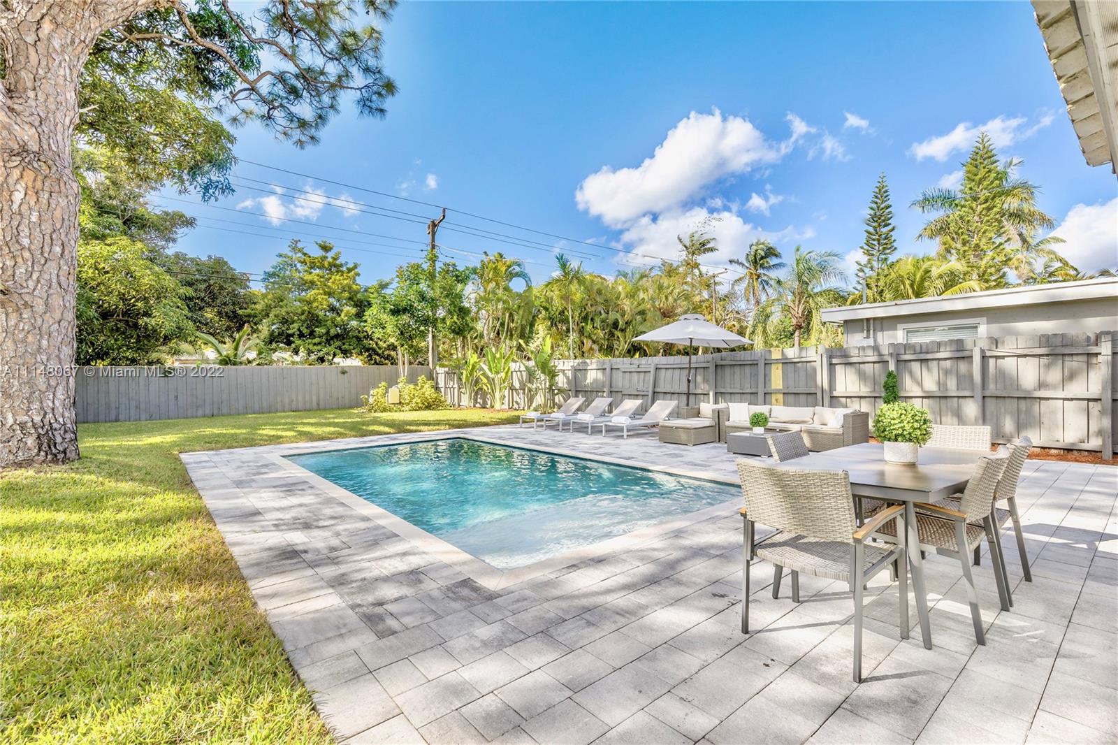 Beautiful 3/2 in charming Poinsettia Heights boasting a modern & open design with porcelain tile, quartz countertops, stainless steel appliances, impact windows & doors throughout, recessed lighting, designer bathrooms, laundry/storage room, newer A/C and more. Spacious backyard includes a new heated pool & salt water system with ample room to relax & entertain surrounded by mature trees. Sold Fully Furnished. Don’t miss this opportunity to make this gorgeous home your own.