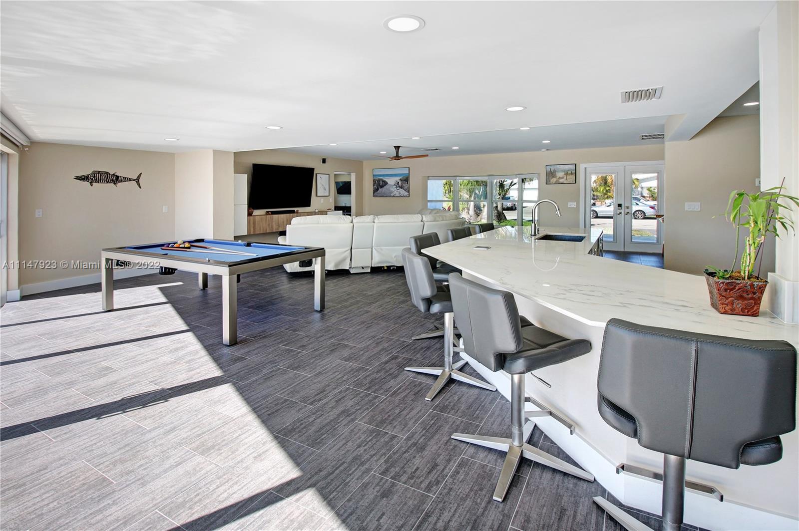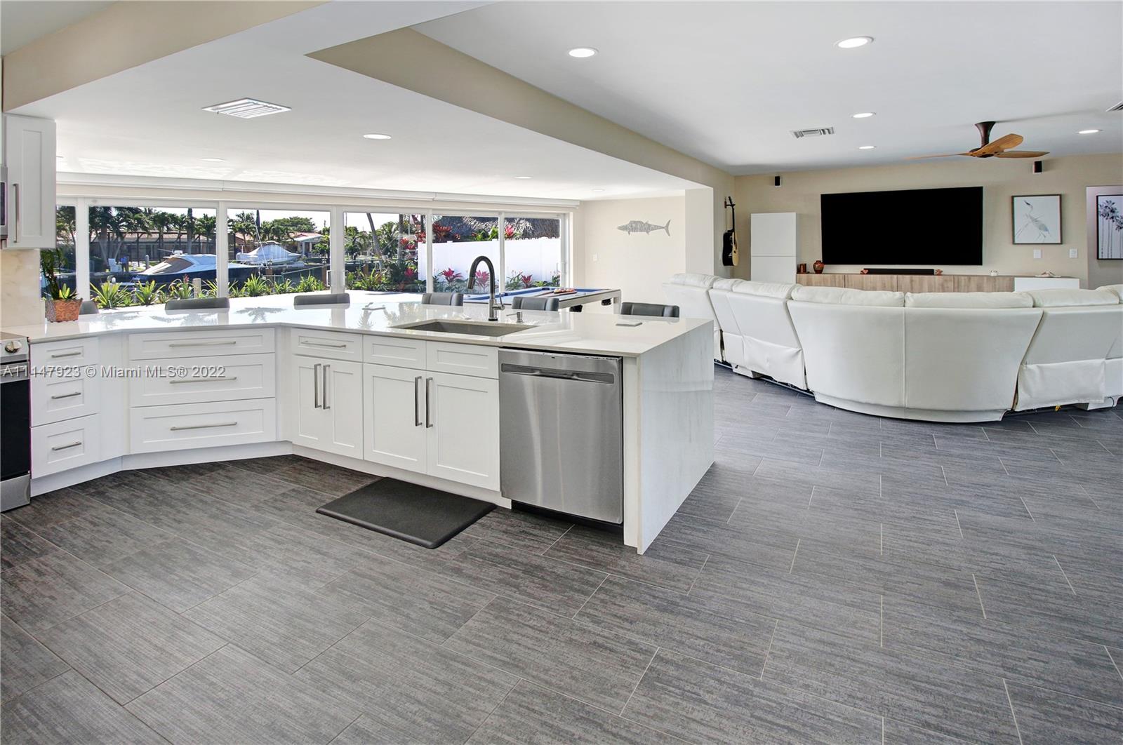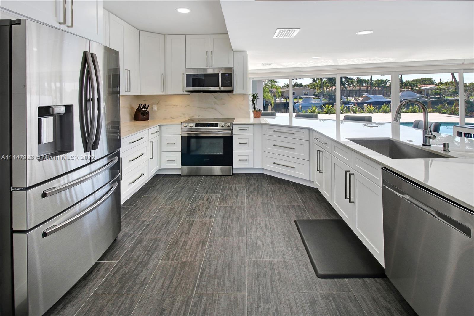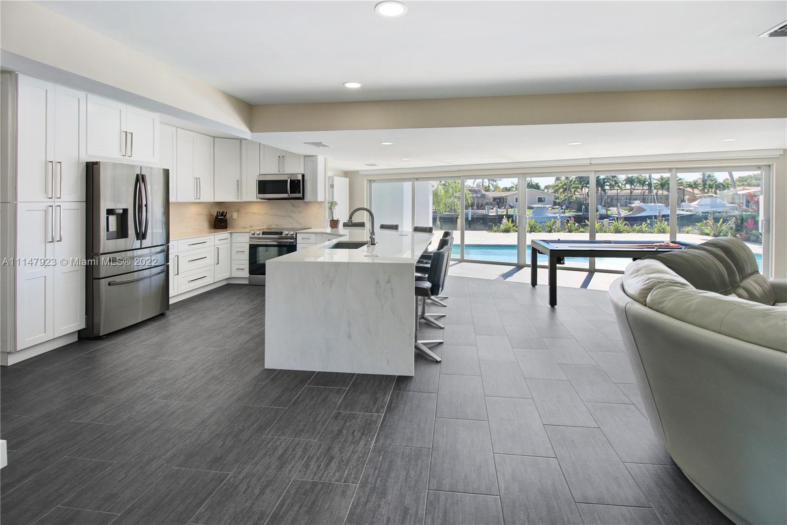 Beautiful 4/3 Waterfront Home 2297sqft (see Office Remarks), which includes an In-Law suite with a private entrance that has all been completely remodeled in 2020/2021. New Aluminum Roof, Plumbing & Fixtures, Electric, Kitchen, Appliances, HVAC, Pavers in Front & Backyard, Pool, Dock, Wooden Shaker Cabinets & Quartzite Countertops in Kitchen and Bathrooms, Flooring, Motorized Blinds, Impact Windows & Doors, Irrigation, Landscaping, Garage Cabinetry & Flooring, Dock & (10) Camera Security System. List price includes furniture as seen in the pictures. The In-Law suite is on a split HVAC system with separate thermostat, kitchen & a modern Murphy Bed that converts into a couch when not in use as a bed, currently tenant occupied $1200/month, lease expires 02/28/22.