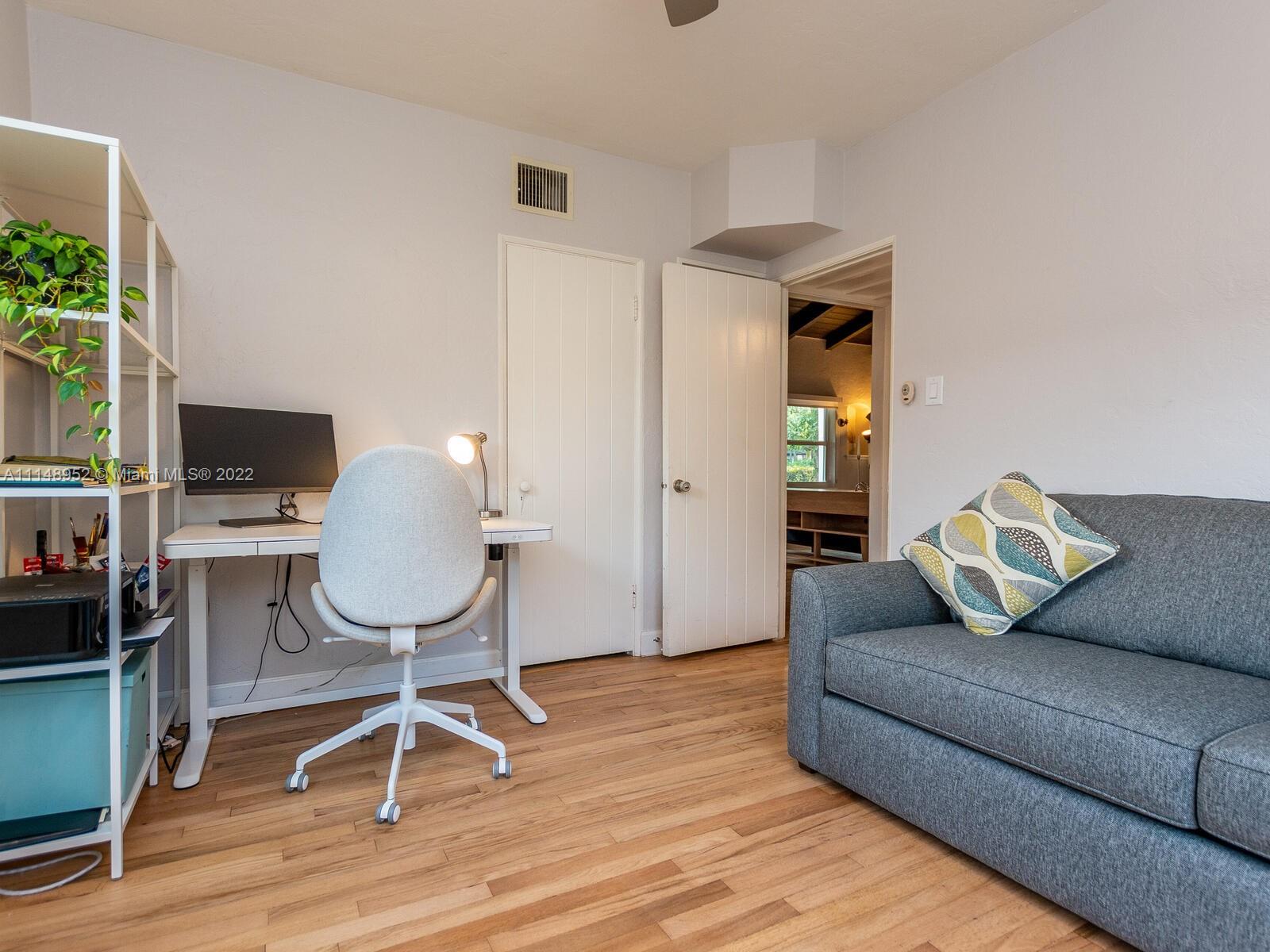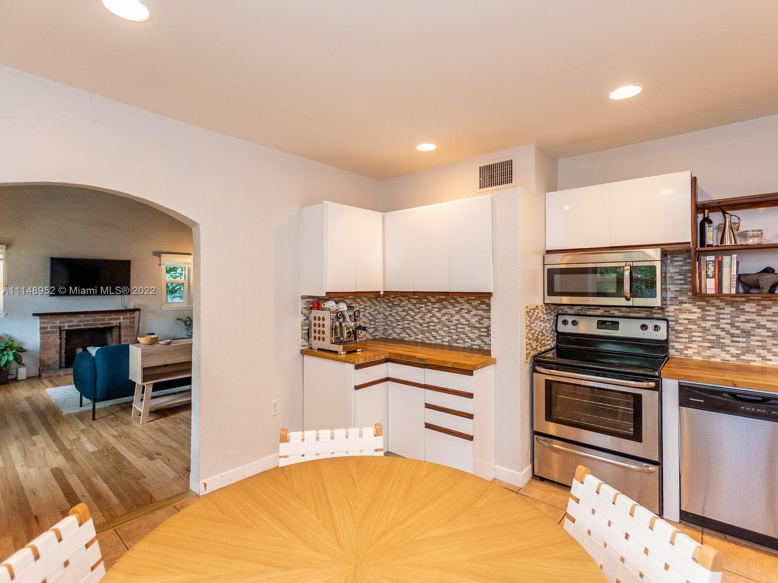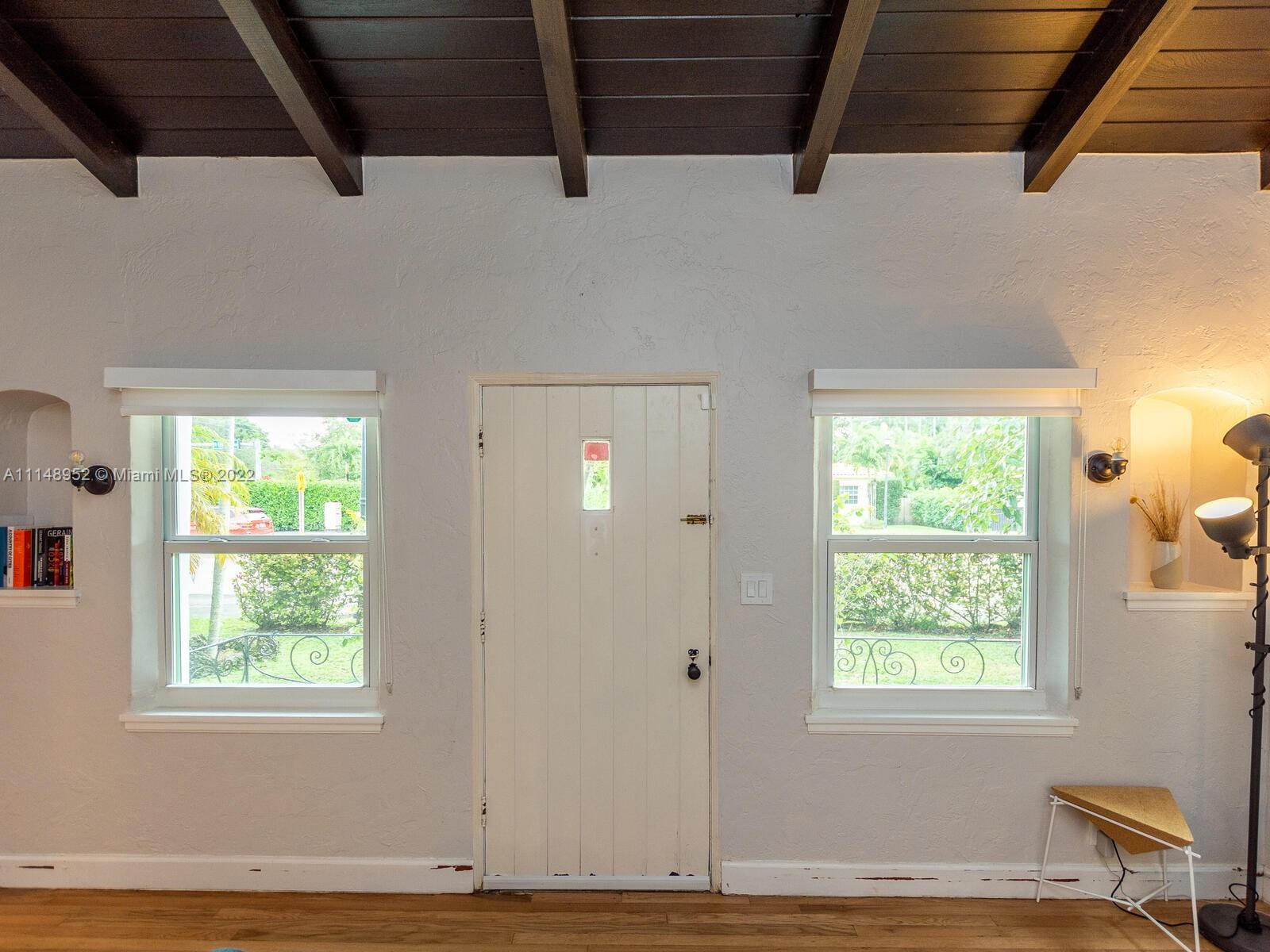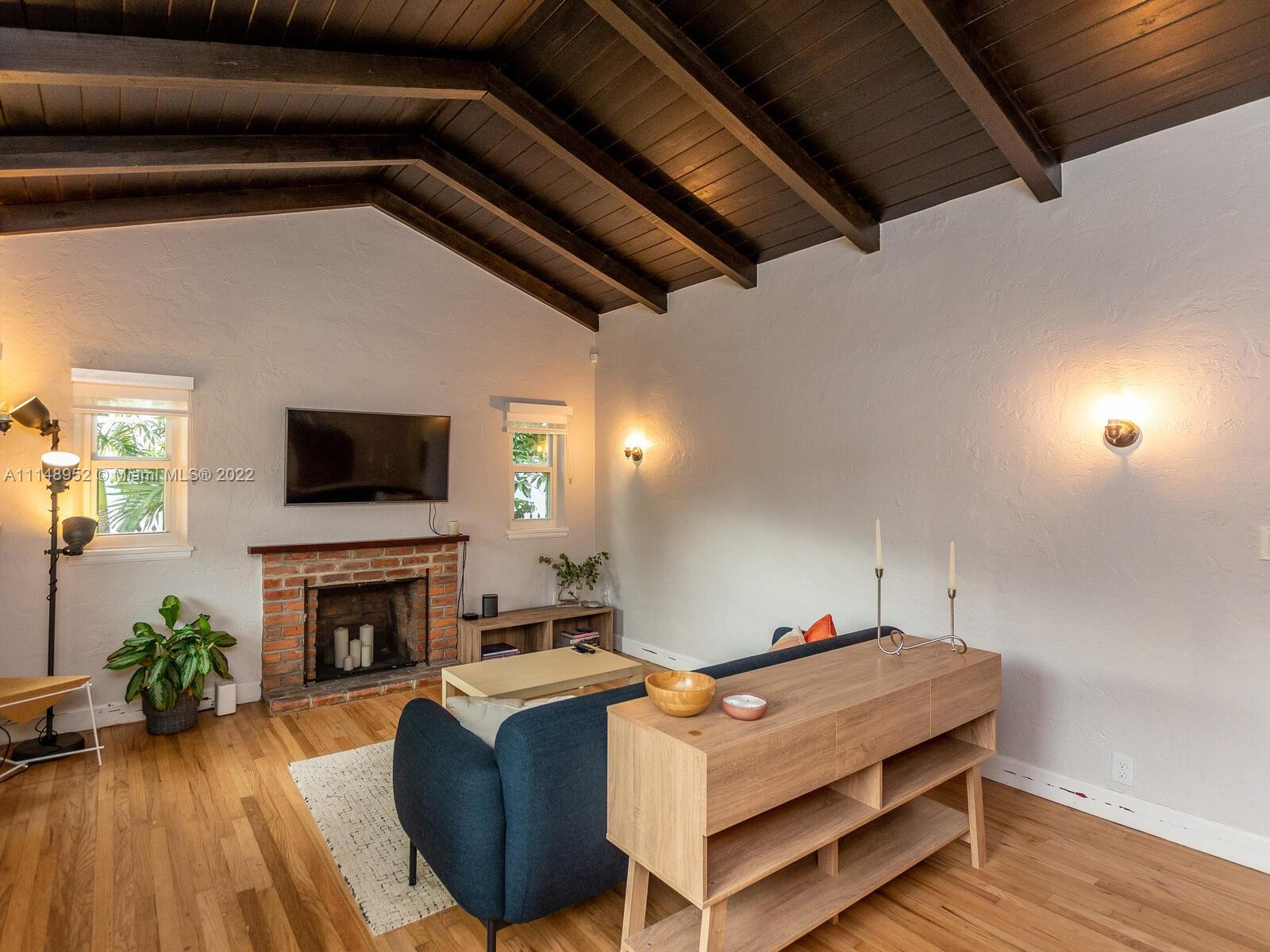 Welcome to Miami Shores! Welcome to this adorable 2bed/1bath jewel-box bungalow located just 2 blocks from downtown Miami Shores. This home is full of charming specific period details such as vaulted wood beam ceilings, fireplace, decorative wall niches, pristine original polished wood floors and a fully remodeled bathroom. Step out back to a sprawling yard with plenty of room for entertaining and expansion in addition to fruit tress. Additional features: bright eat-in kitchen, impact windows, new roof (2019), newer A/C, newer tankless water heater, updated electric, new gutters, and more! Detached 1 car garage with automatic door. Hurry up! This is your chance to be in the Shores under $600k! PROFESSIONAL PICTURES COMING SOON! OPEN HOUSE SATURDAY JANUARY 29TH FROM 11:00 AM TO 2:00 PM