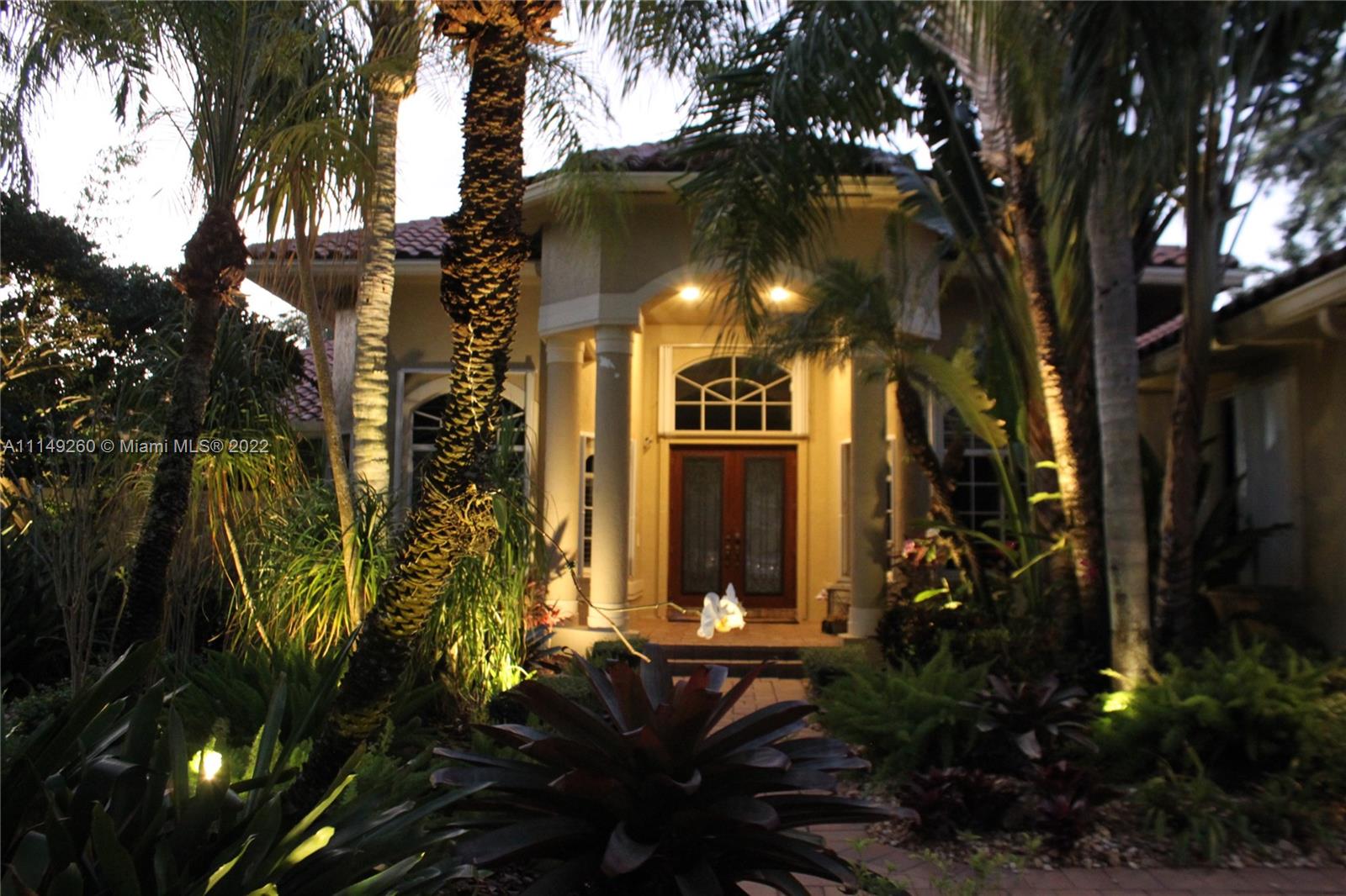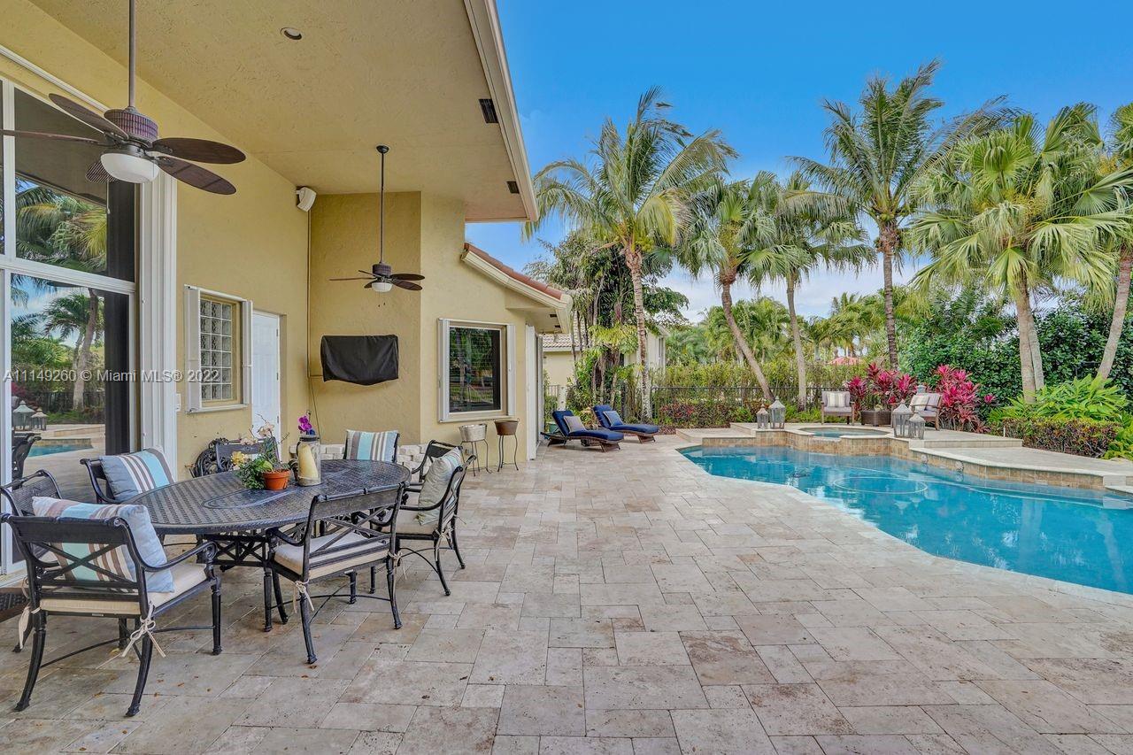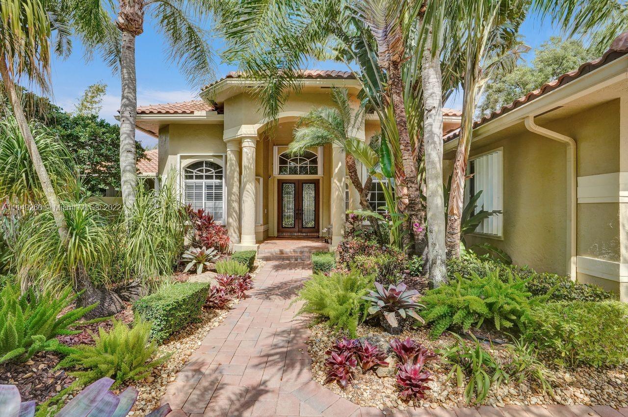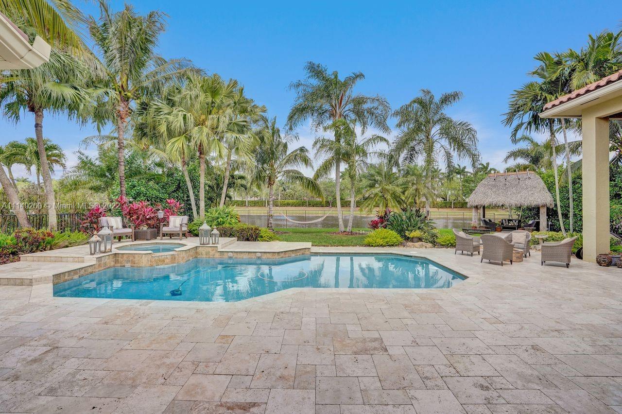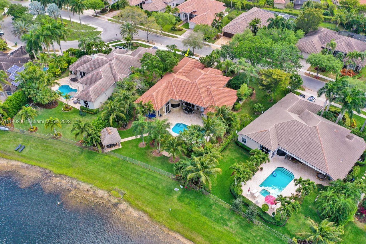 Fabulous 5 bedroom/5 baths home on a 1/2 acre estate in Pelican Landing that shows like a true model home. Grand entry with beautiful lush landscaping. Look no further this home is in impeccable condition with newer roof, updated bathrooms, remodeled gourmet kitchen w/ newer appliances, wood flooring in bedrooms, newer AC, finished garage by Garage Wall with impact door, accordion shutters, plantation shutters and more. Large master suite with his & hers master baths. Majestic raised foyer with views to pool and lake. Huge backyard is a dream come true with newer salt chlorinated pool and spa. Tiki hut overlooking tranquil lake views with sunsets. Premier community in Weston. Will not last! some furniture stay and No appraisal contingemcy.Kichen remodeled 2017. New roof 2017.