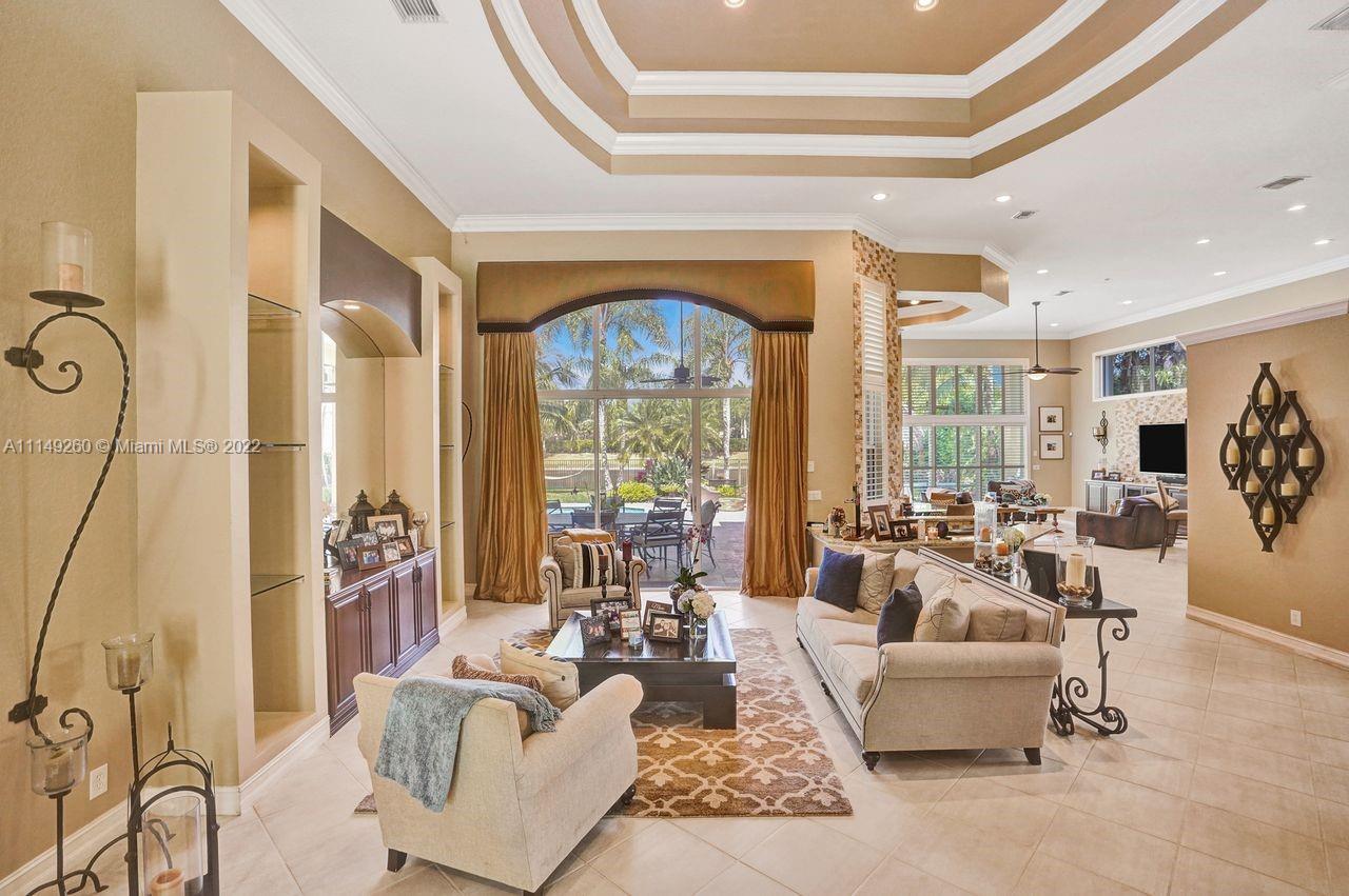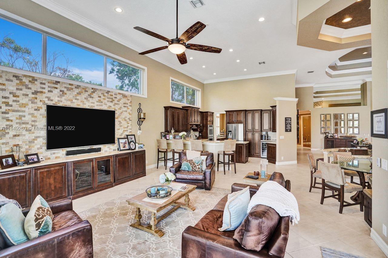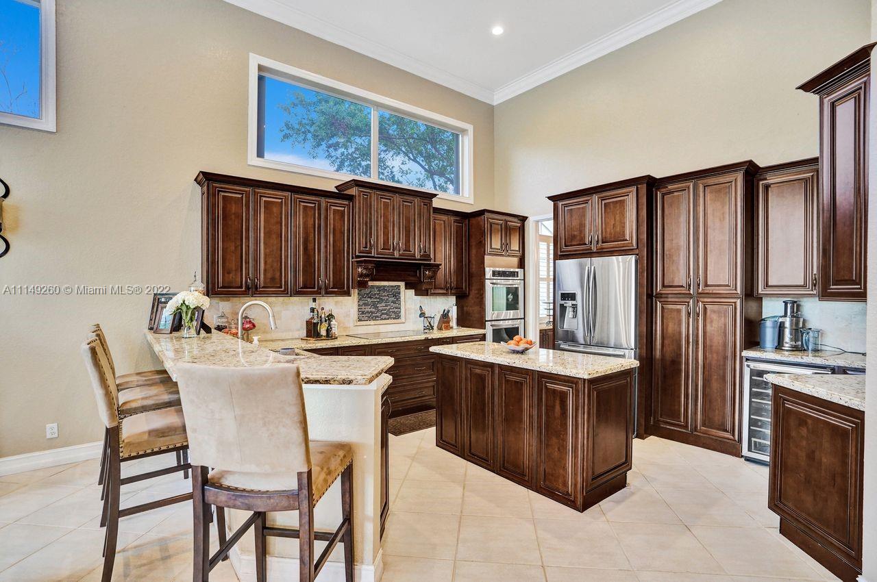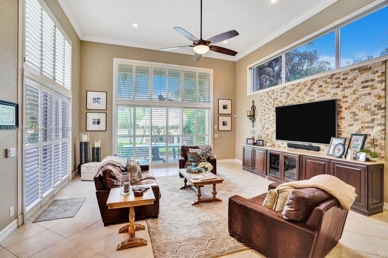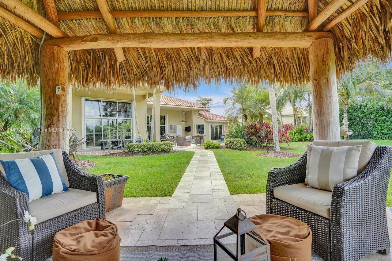 Fabulous 5 bedroom/5 baths home on a 1/2 acre estate in Pelican Landing that shows like a true model home. Grand entry with beautiful lush landscaping. Look no further this home is in impeccable condition with newer roof, updated bathrooms, remodeled gourmet kitchen w/ newer appliances, wood flooring in bedrooms, newer AC, finished garage by Garage Wall with impact door, accordion shutters, plantation shutters and more. Large master suite with his & hers master baths. Majestic raised foyer with views to pool and lake. Huge backyard is a dream come true with newer salt chlorinated pool and spa. Tiki hut overlooking tranquil lake views with sunsets. Premier community in Weston. Will not last! some furniture stay and No appraisal contingemcy.Kichen remodeled 2017. New roof 2017.