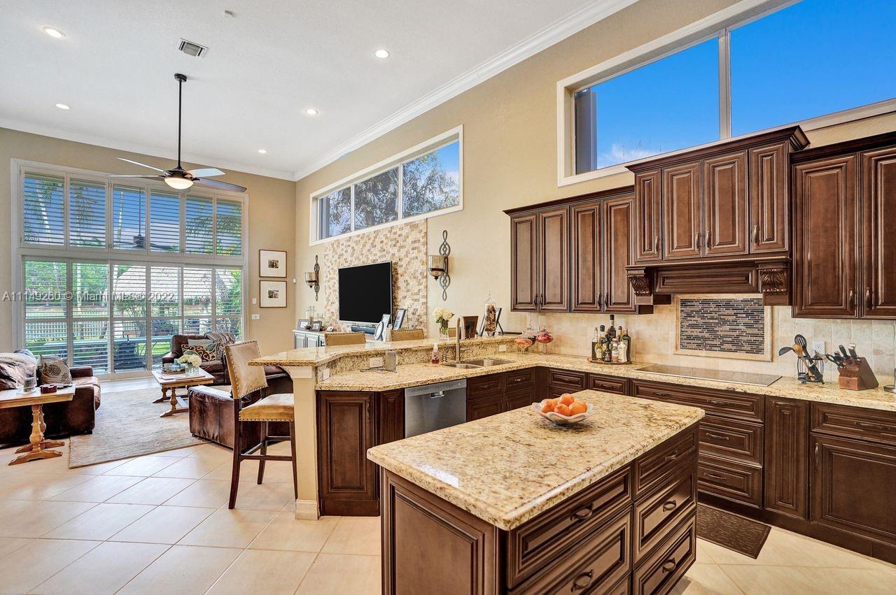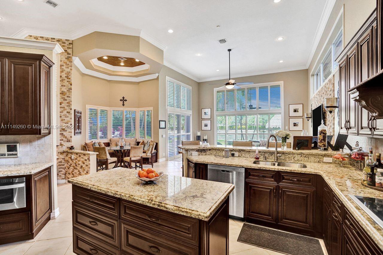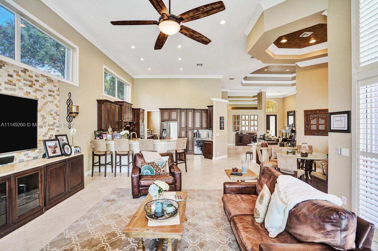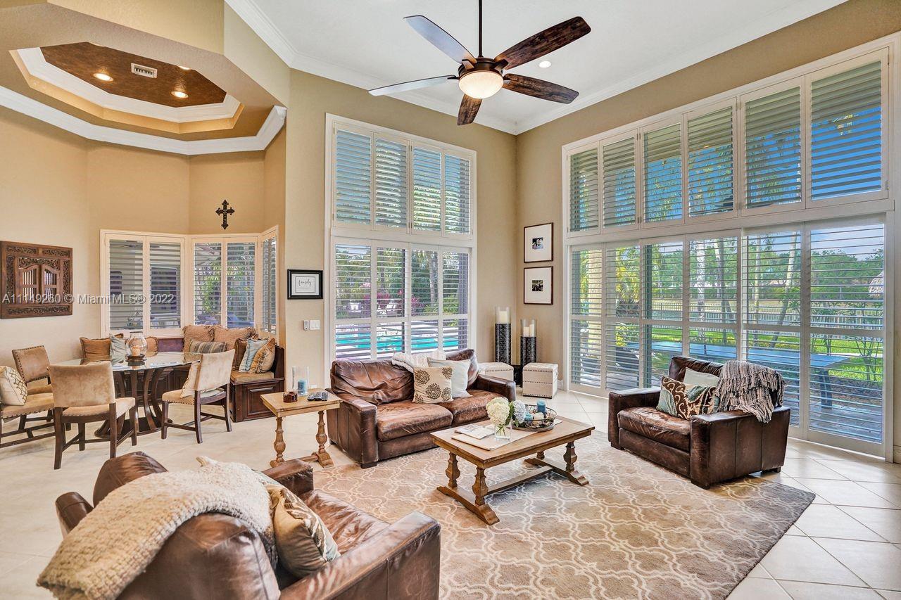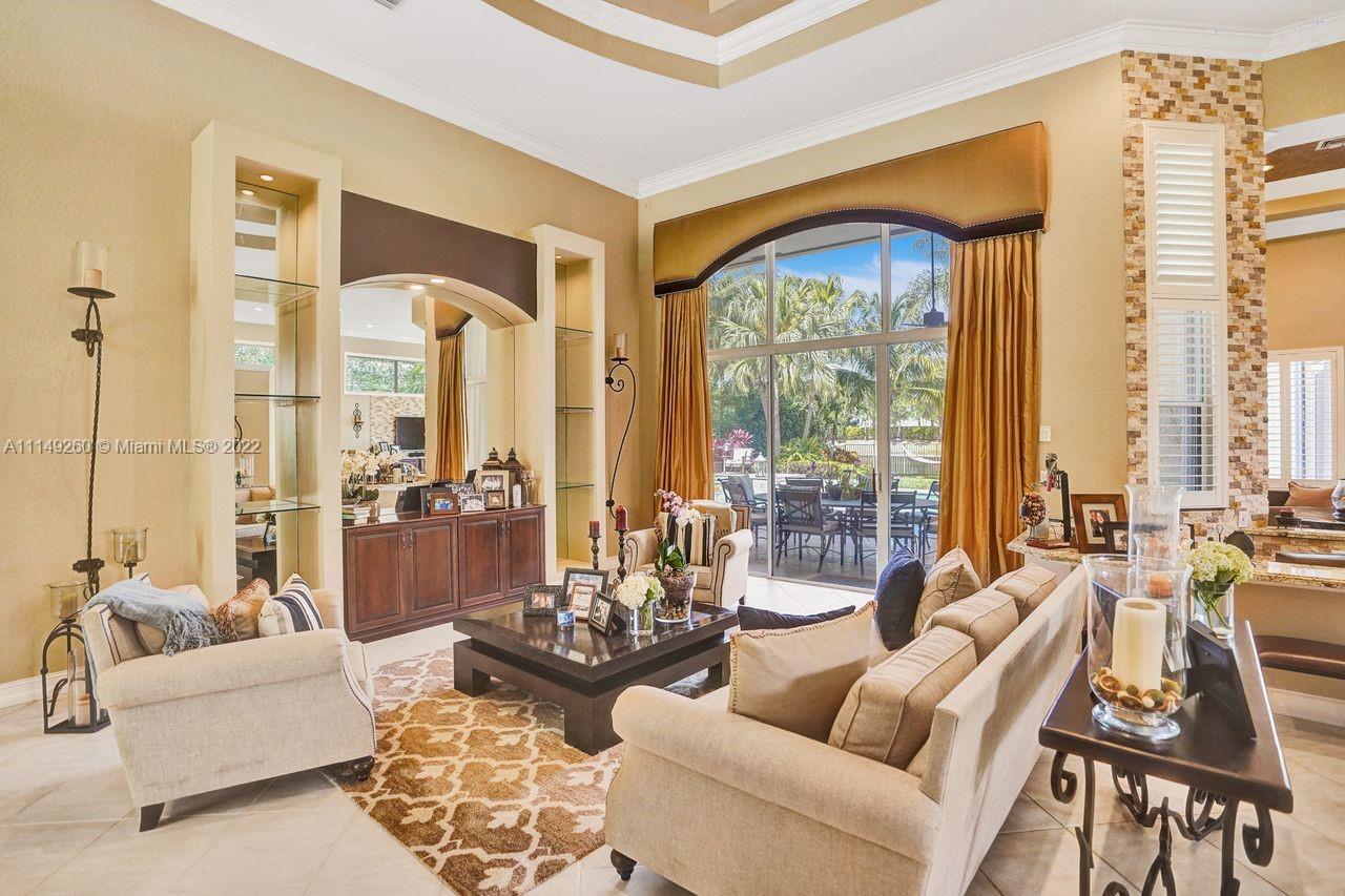 Fabulous 5 bedroom/5 baths home on a 1/2 acre estate in Pelican Landing that shows like a true model home. Grand entry with beautiful lush landscaping. Look no further this home is in impeccable condition with newer roof, updated bathrooms, remodeled gourmet kitchen w/ newer appliances, wood flooring in bedrooms, newer AC, finished garage by Garage Wall with impact door, accordion shutters, plantation shutters and more. Large master suite with his & hers master baths. Majestic raised foyer with views to pool and lake. Huge backyard is a dream come true with newer salt chlorinated pool and spa. Tiki hut overlooking tranquil lake views with sunsets. Premier community in Weston. Will not last! some furniture stay and No appraisal contingemcy.Kichen remodeled 2017. New roof 2017.