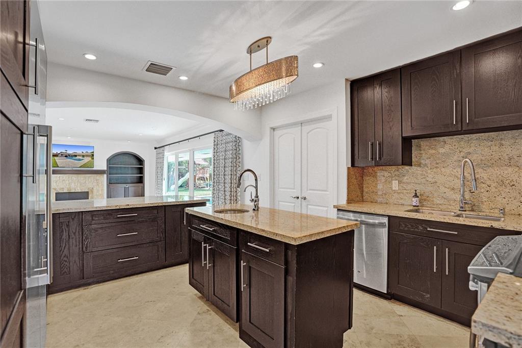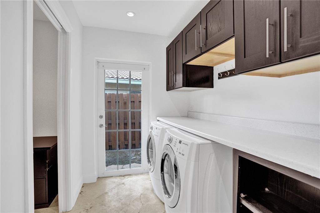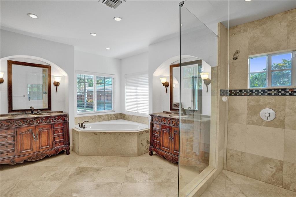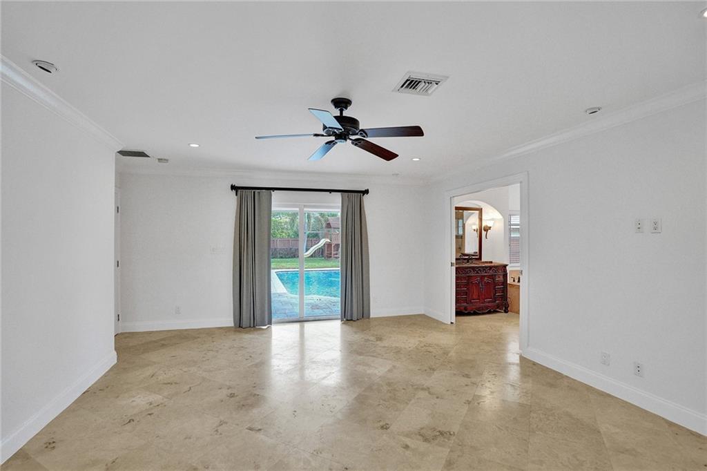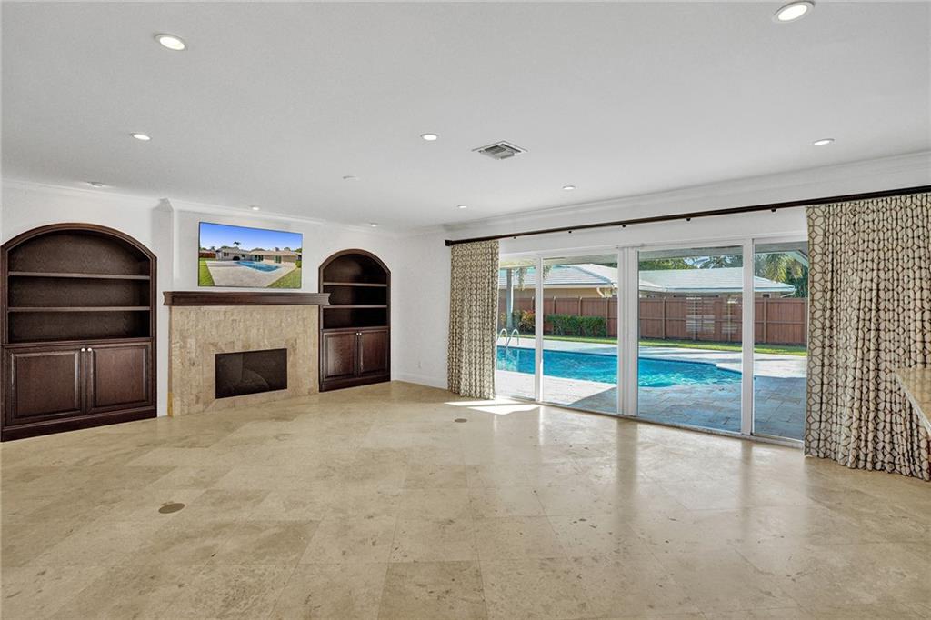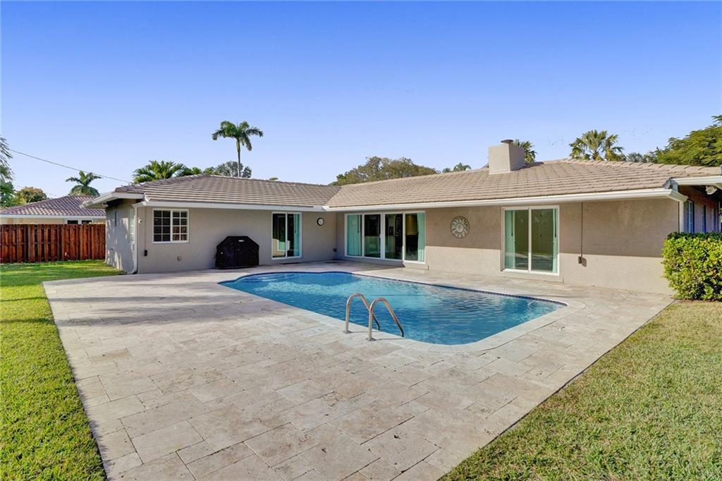 Beautiful Coral Ridge Country Club turn key home. This 3 bedroom 2 bath home is situated on an oversized 12,032 square foot corner lot. Features include impact windows and doors, travertine flooring throughout, built-in cabinetry, ample storage, whole house air purification system, interior laundry room with NEW washer and dryer, central vac, 2 car garage and more. Gourmet kitchen boasts stainless steel appliances, granite countertops and backsplash, touch free faucets and center island. Spacious bedrooms. Home office with window and privacy door. Expansive fenced in backyard with pool and tons of grass area. Quick walk to Bayview Park and Coral Ridge Country Club.