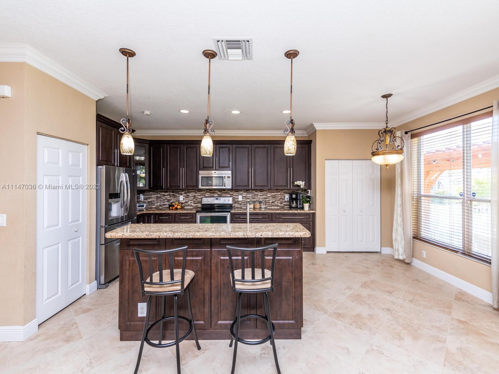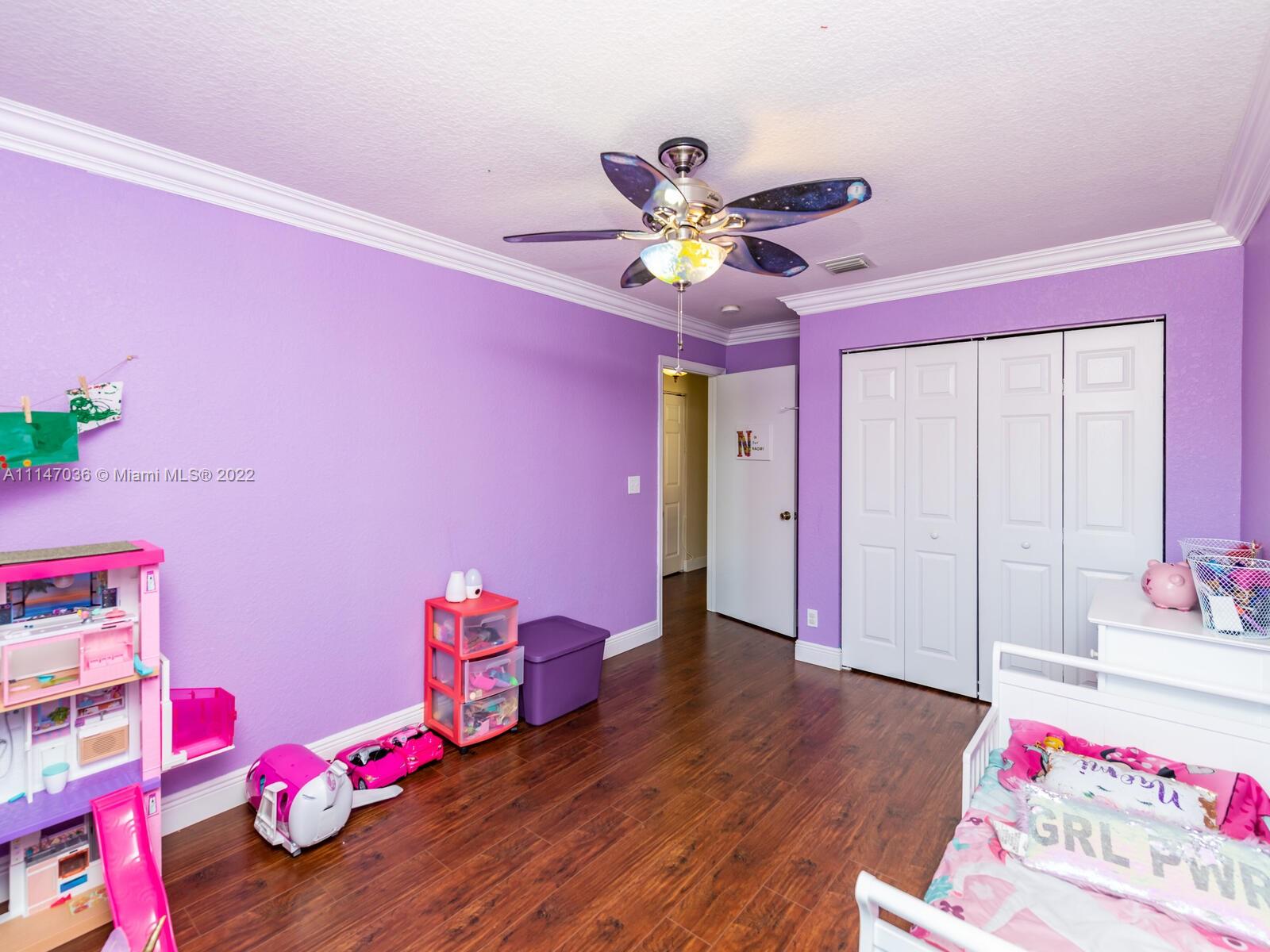 Come see this gorgeous home in West Miramar in the Silver Shores Gated community. Home features 4 Bedrooms, 2.5 Bathrooms with spacious backyard overlooking the lake. Backyard is fenced and has artificial turf for kids to play. Upstairs is updated with beautiful laminate floors in all 4 Bedrooms and bathrooms are nicely renovated with glass sinks. There are two walk-in closets for the Master bedroom. First floor has ceramic floors, updated 1/2 Bathroom and renovated Kitchen with 2 Walk in pantries. Accordion Shutters on all the upstairs windows. A/C 2015 with new motor and UV Light to prevent mold. Water Heater 2012. Community has Club House, Pool and playground. Property is just minutes away from Stores, Parks, schools and Shopping Center. Showings start 1/22/22 at Open House.