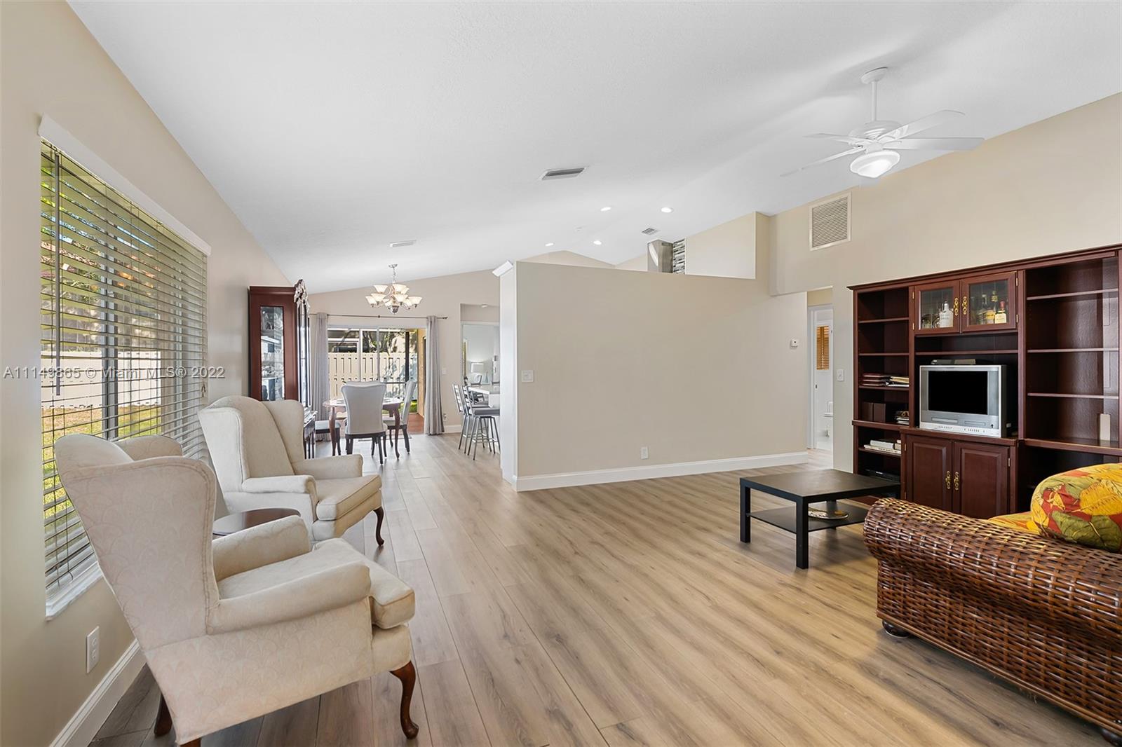 Welcome to this beautifully maintained 3 bedroom 2 bathroom home sitting on a OVER SIZED pie shape lot with plenty of room for a pool. New flooring throughout, with new Kitchen including quarts counter tops and stainless steal appliances. This move-in ready home offers a two car garage, as well as a screened-in back porch. Located within a gated community a short distance to A++ schools, restaurants and shopping, the community offers a kids playground, basketball court and a great swimming pool. Perfect starter home!!