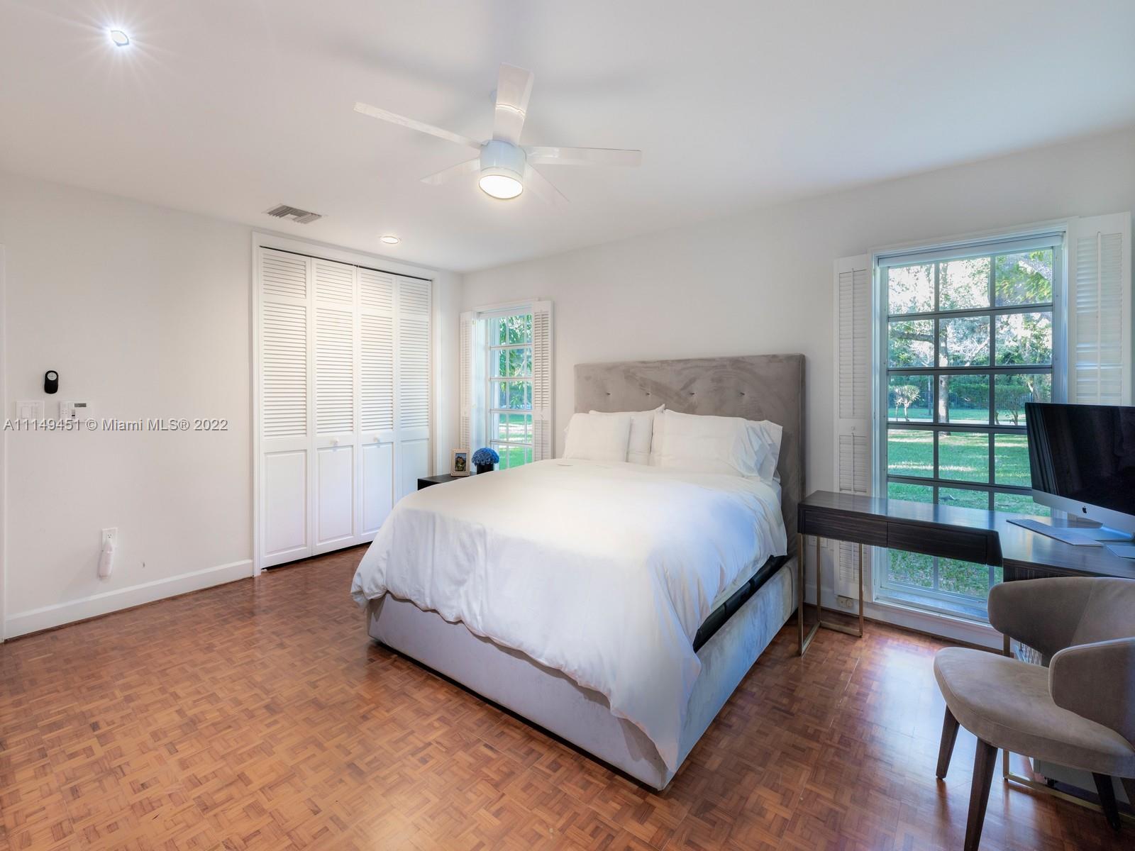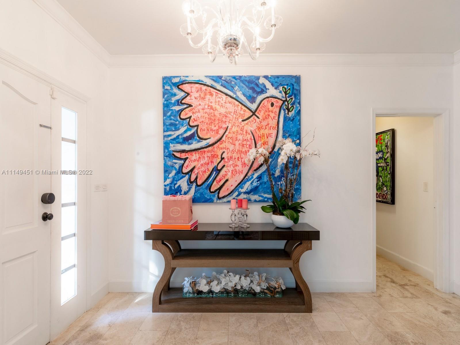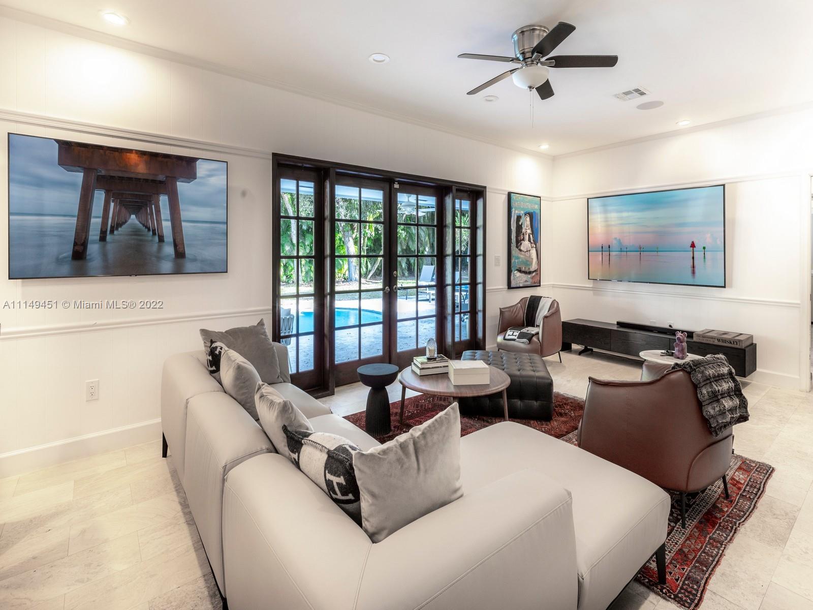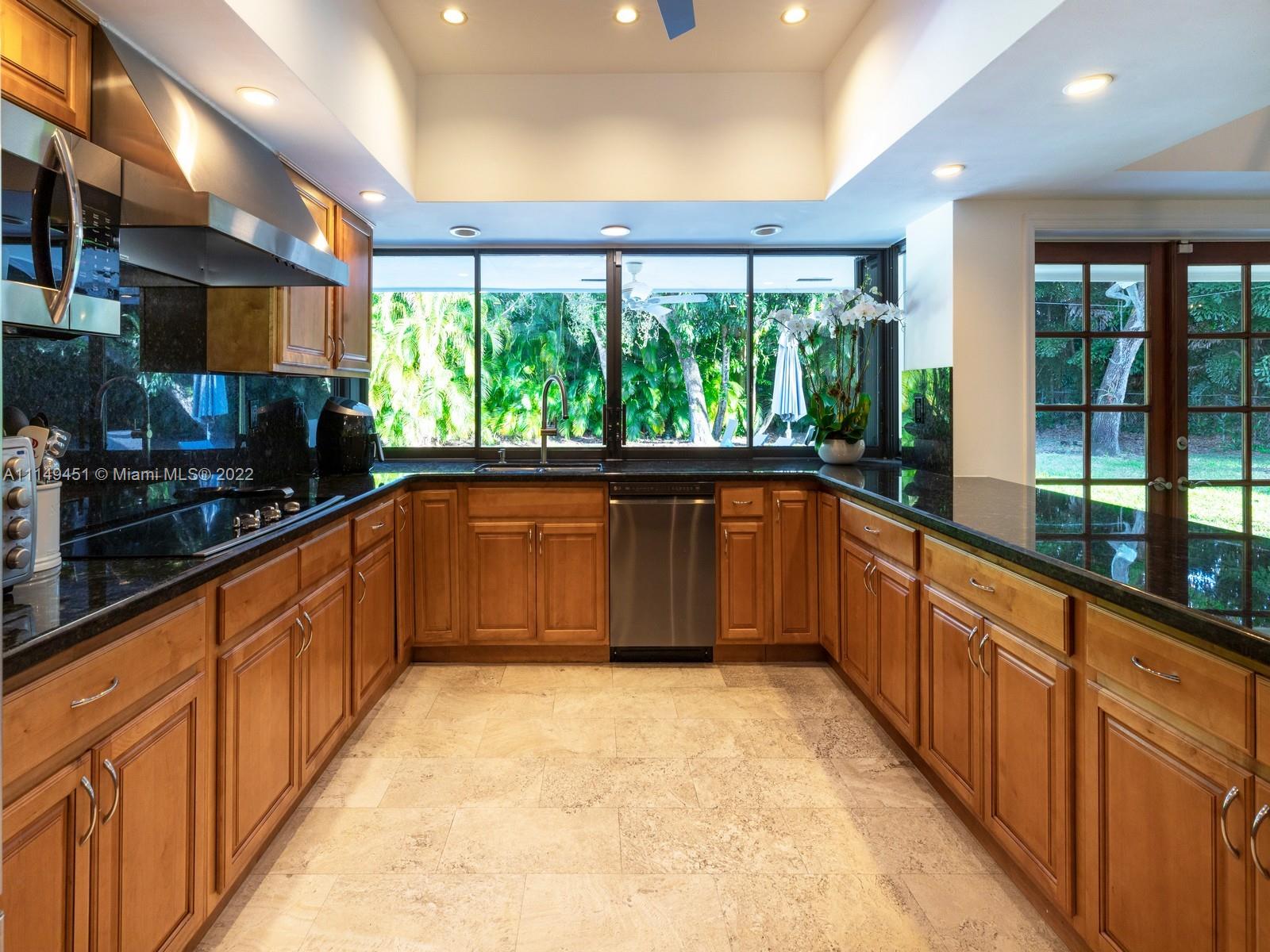 This beautiful single-story renovated home on historic Old Cutler Road in South Gables is within minutes to top-rated schools, Matheson Hammock Park & Marina, and Fairchild Tropical Botanic Garden. It has eye-catching curb appeal with lush tropical landscaping including multiple fruit trees and mature oaks, and is ideally situated on a large corner lot on a cul-de-sac side street. In addition to its sought-after location, this lovely home has 5 bedrooms with 4 bathrooms including a cabana bath, grand foyer entrance, double-sided fireplace shared by the formal living and family room, formal dining room with architectural details, family room with built-ins and wet bar with seating, spacious kitchen with ample storage and counter space, island seating, and breakfast area.