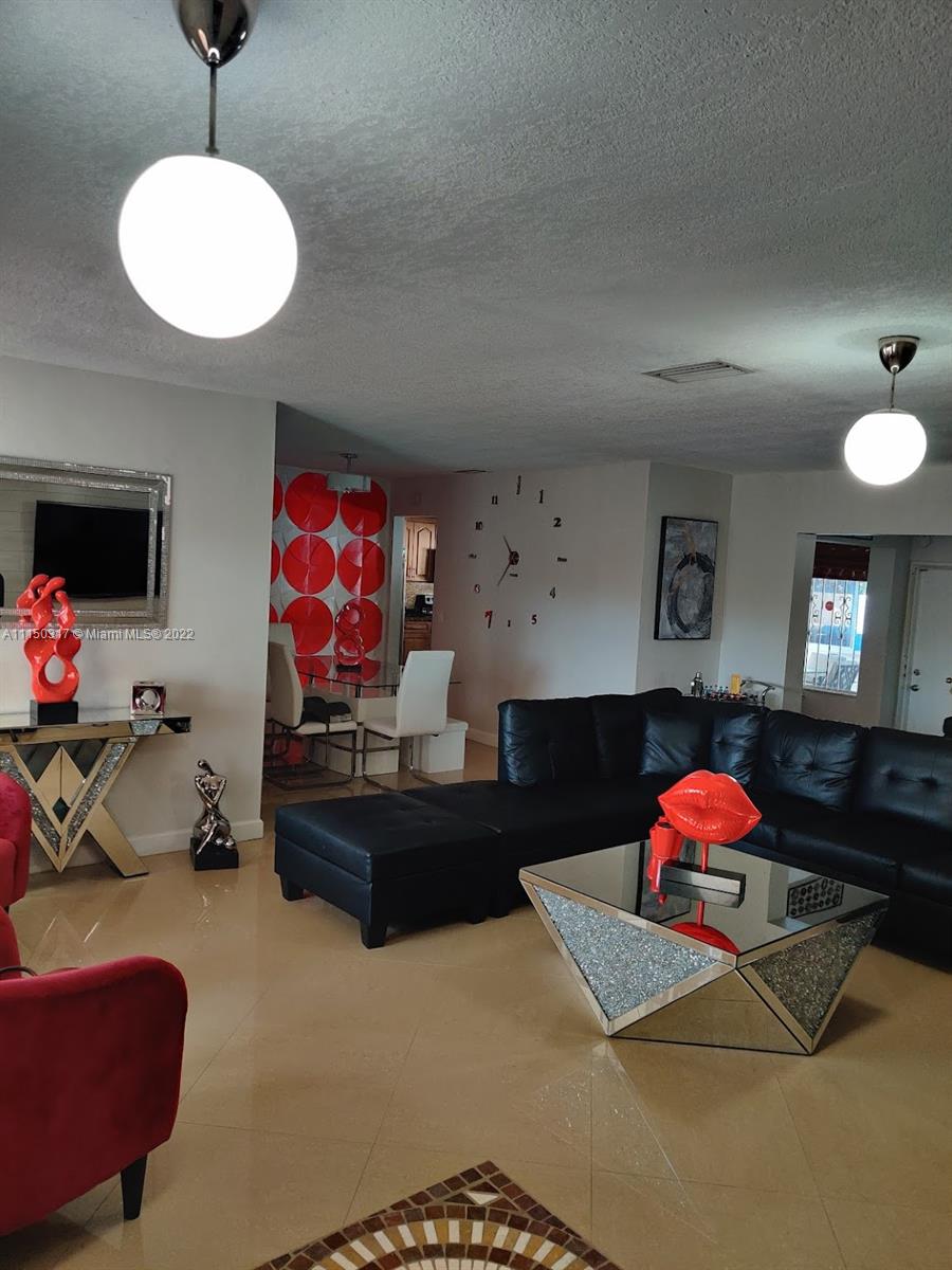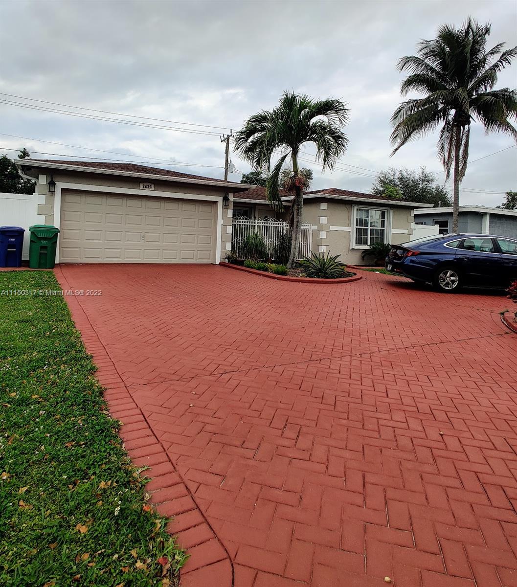 Spacious 3/2 updated home in Miramar. This home has an open floor, eat-in kitchen that has granite countertops, separate living and dining room, updated bathrooms, porcelain tile throughout, and vinyl/laminate floors in the bedrooms. The master bedroom/bathroom has been completely remodeled. The whole house has been freshly painted. Two car garage, circular driveway with space for 5 cars, accordion hurricane shutters all around, Fenced paved. Centrally located to the Turnpike, Hard Rock Stadium, Calder Racetrack and Casino, shopping centers and more. No HOA!!!, Actual Living area as by sketch's Broward County is 2103 SQFT. Offer not subject to appraisal, POF required with contract.