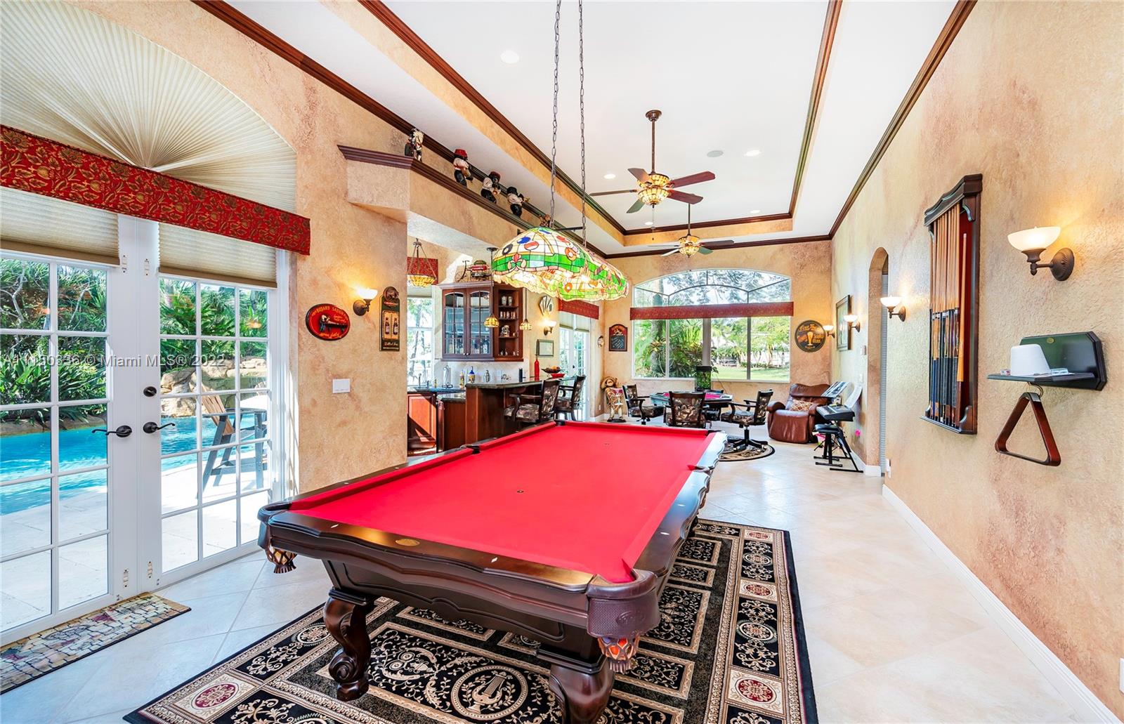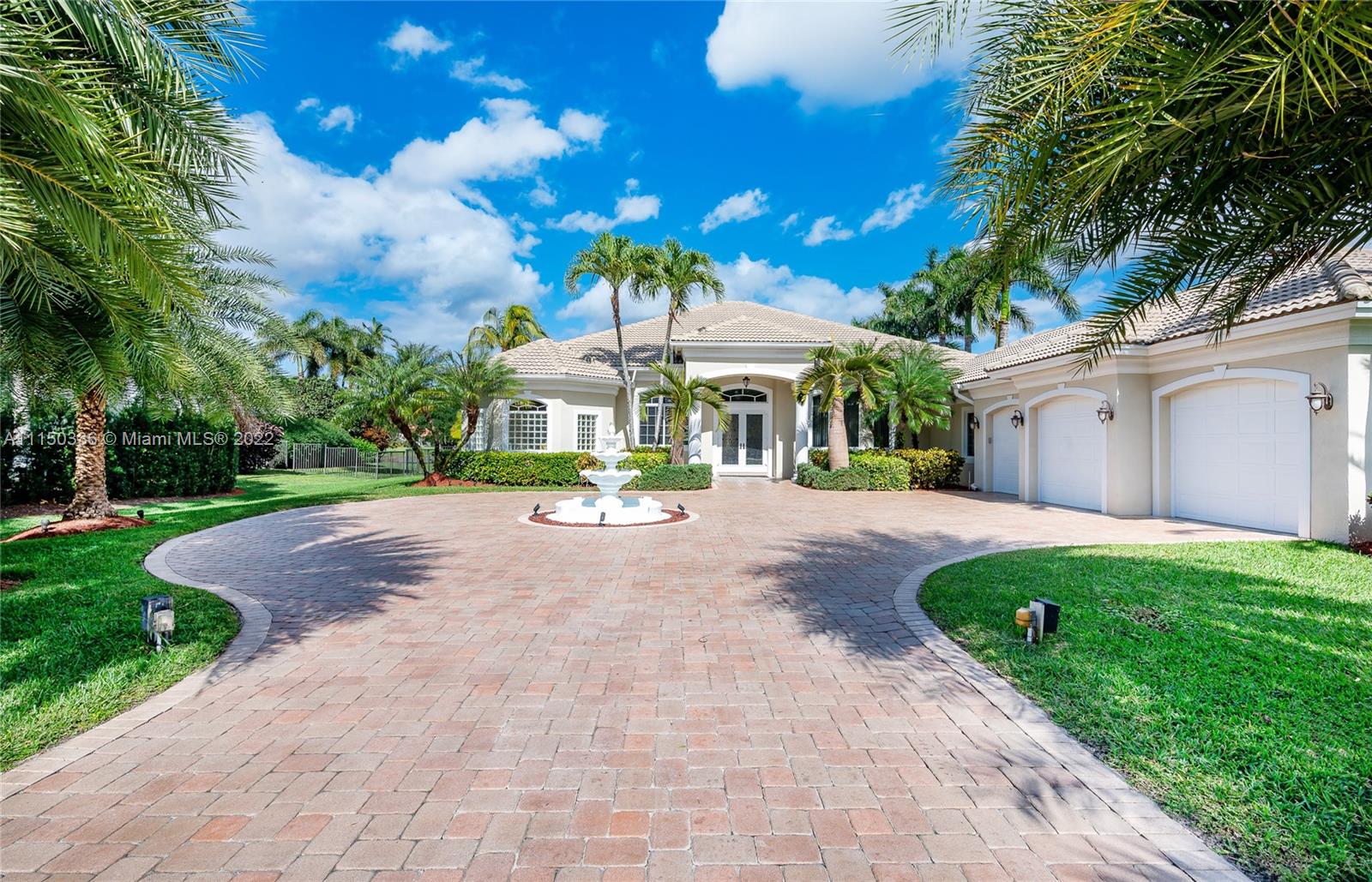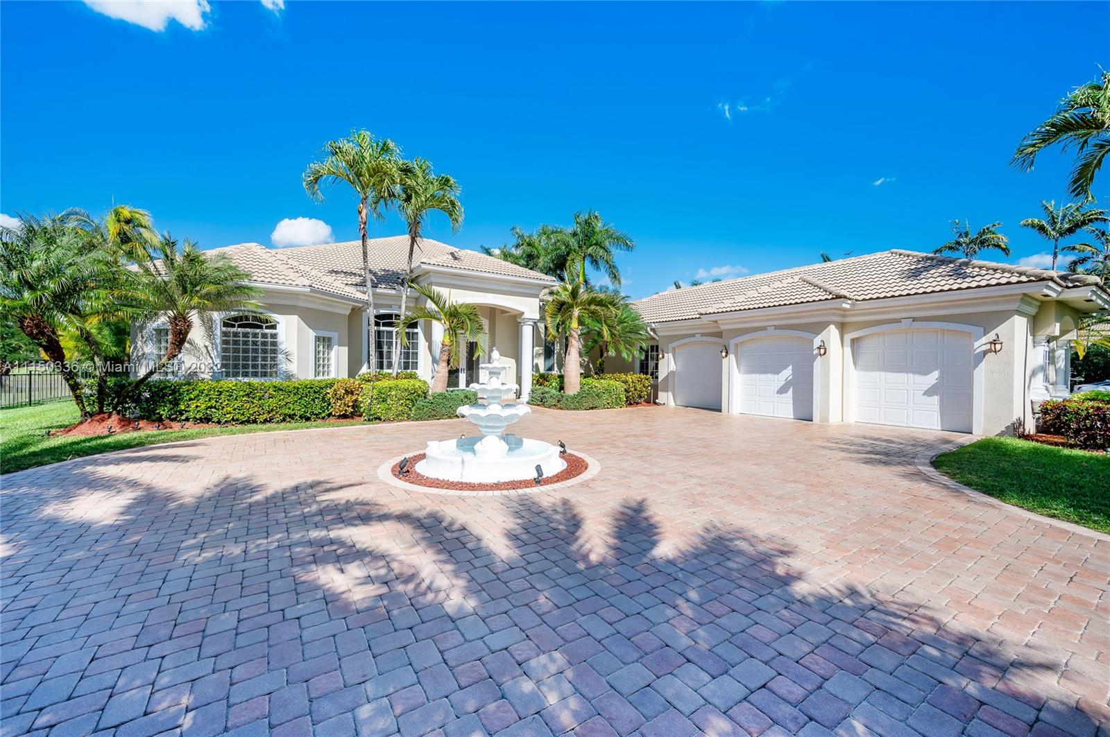 Magnificent Mediterranean style custom home built on a builders acre fenced in corner lot on a lake. Large gym area fully equipped with Nautilus equipment. This area can also easily be converted to two bedrooms with a Jack-and-Jill bathroom. Amazing views from every window. Located in an exclusive gated community of only 27 homes in Davie called Crystal Groves Estates. Spectacular Polynesian Resort backyard with salt water grotto pool, waterfall features, raised spa, pass thru poolside bar, and covered patio with European Tumbled Marble. Lush landscaping and built in fire pit. Impact windows, electric Rolladen aluminum shutters and accordion shutters. Full Genarac 22k air cooled stand by home generator with WiFi connectivity.