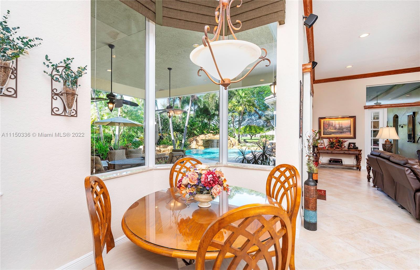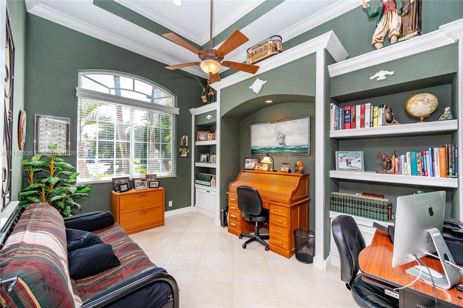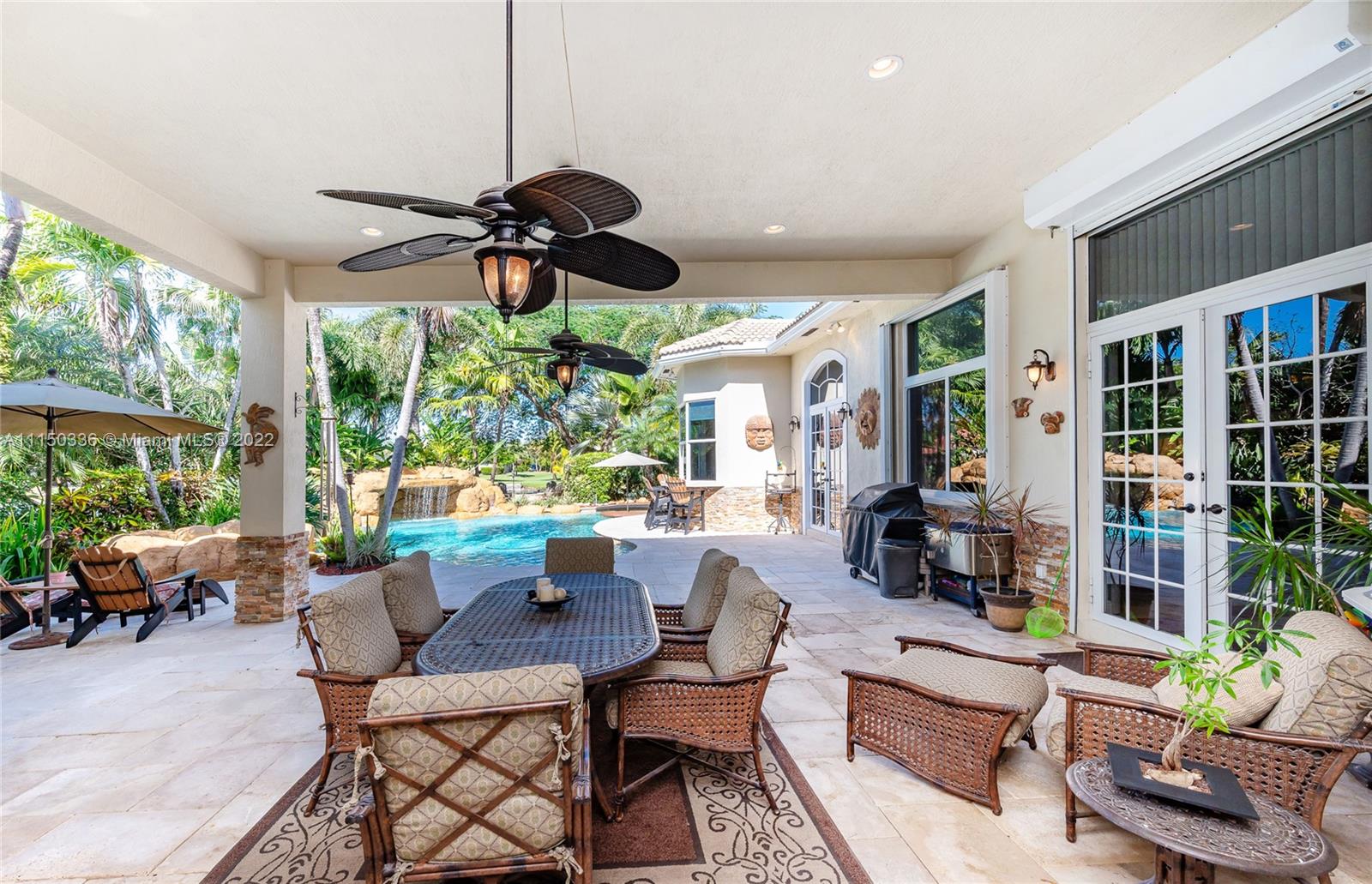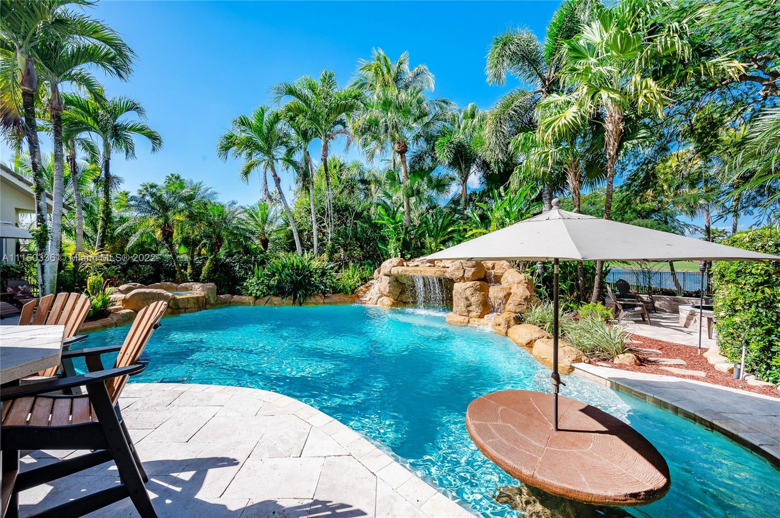 Magnificent Mediterranean style custom home built on a builders acre fenced in corner lot on a lake. Large gym area fully equipped with Nautilus equipment. This area can also easily be converted to two bedrooms with a Jack-and-Jill bathroom. Amazing views from every window. Located in an exclusive gated community of only 27 homes in Davie called Crystal Groves Estates. Spectacular Polynesian Resort backyard with salt water grotto pool, waterfall features, raised spa, pass thru poolside bar, and covered patio with European Tumbled Marble. Lush landscaping and built in fire pit. Impact windows, electric Rolladen aluminum shutters and accordion shutters. Full Genarac 22k air cooled stand by home generator with WiFi connectivity.