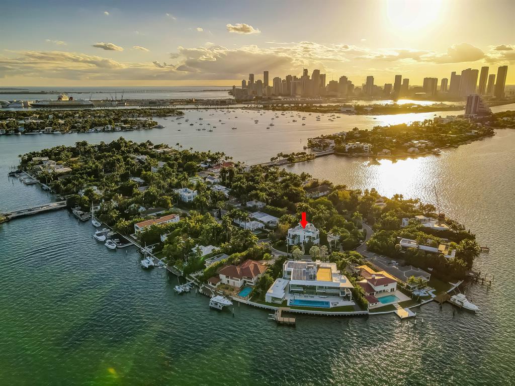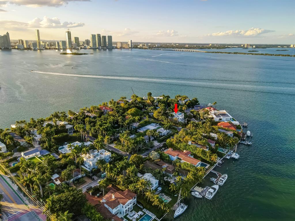 Contemporary luxury at it's finest! This unique home boasts 360 degree panoramic views of Biscayne Bay from the enormous 1900 square foot roof top terrace and negative edge pool. Sitting at the northern point of the island on a 7406 sq ft lot provides you with the privacy you desire. 10 Plus Foot ceilings throughout with a double height entryway and elevator, the home greets you like a luxury hotel. Brand new furniture, design, and window treatments by Colvin Design. Brand new Savant smart home system controls security cameras, alarm system, lighting, music, thermostats, and entry. 3 Brand New A/C Units, brand new tankless gas hot water system, brand new natural gas cooktop. Freshly painted inside and out. Floors have been refinished and sealed. Furniture/Decor are negotiable.