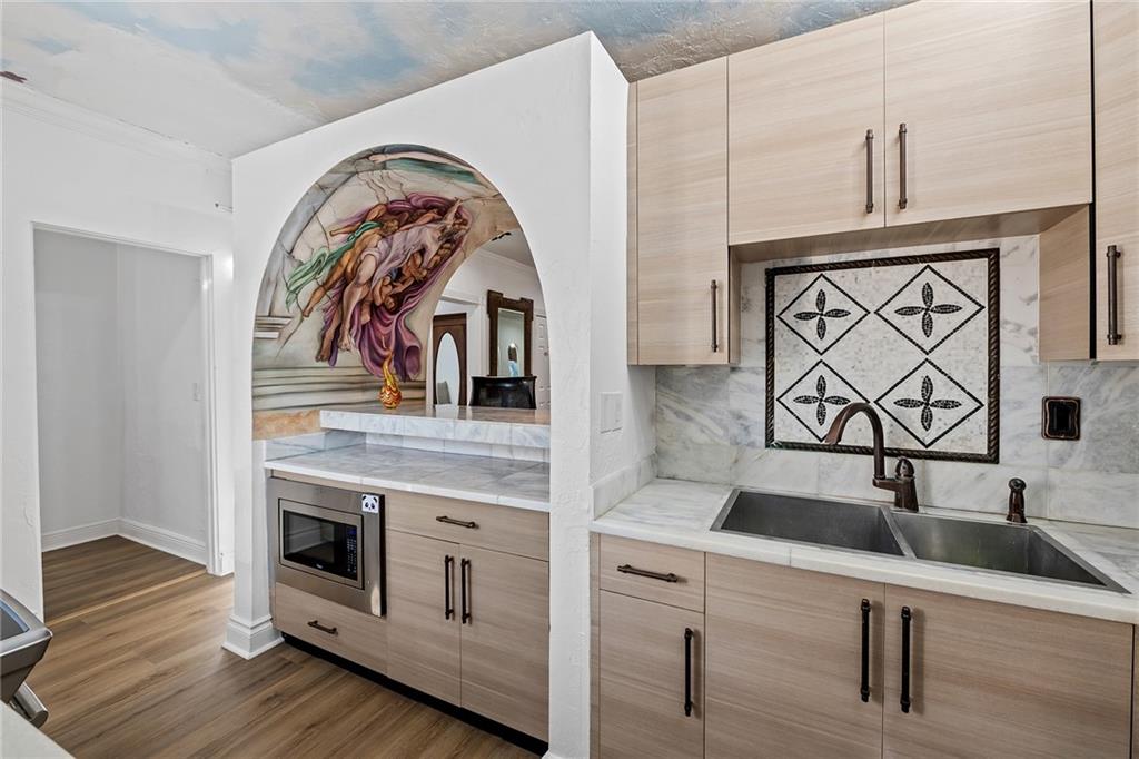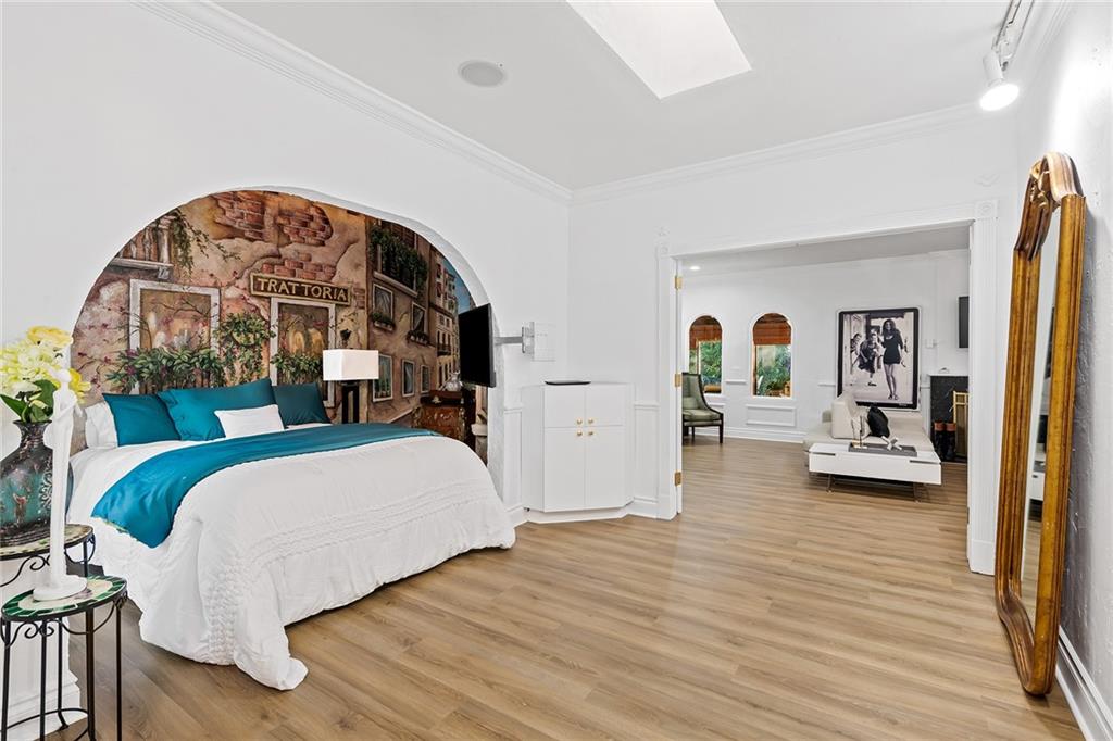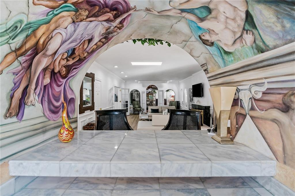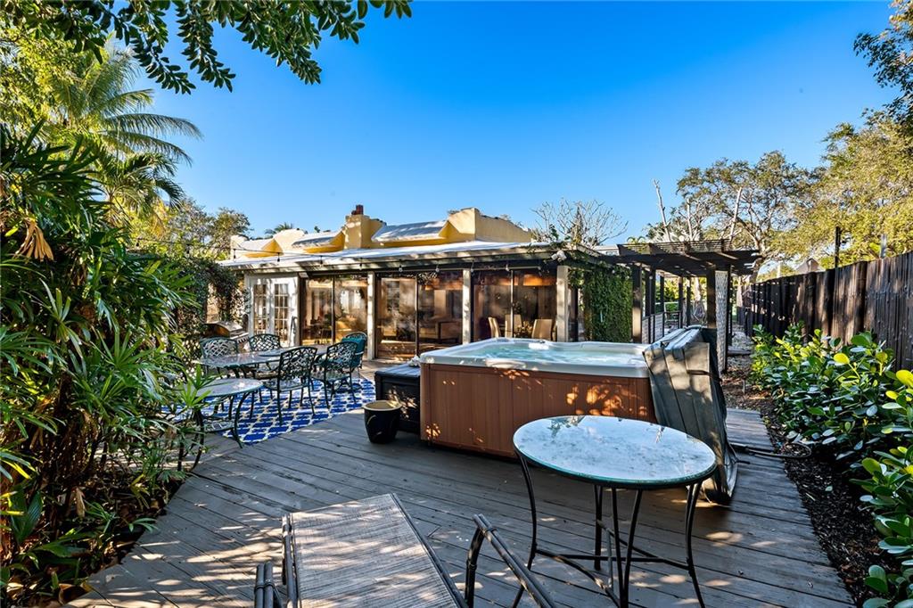 Italian-infused architectural bliss awaits 1 block off Las Olas Blvd in Beverly Heights! Corner lot, waterfront + 7 parking spaces – yes, this is real in today’s hot market! Florida charm meets modern zen w/ Italian murals, arches, soaring ceilings, fresh paint, + select skylights throughout. Cedar-lined enclosed patio w/ 8 sliding glass doors + gleaming Saltillo tile. Marble, tall cabinets + stainless-steel appliances in kitchen. Primary suite w/ 2 original murals, French door exit + ensuite bath clad in classic green tile. Huge walk-in laundry room. A former photography studio, ready for entertaining or an Airbnb! Fully fenced yard w/ extensive wooden decking, hot tub + pops of green. Zoned for a single-family home or two townhomes. Experience it while you can!