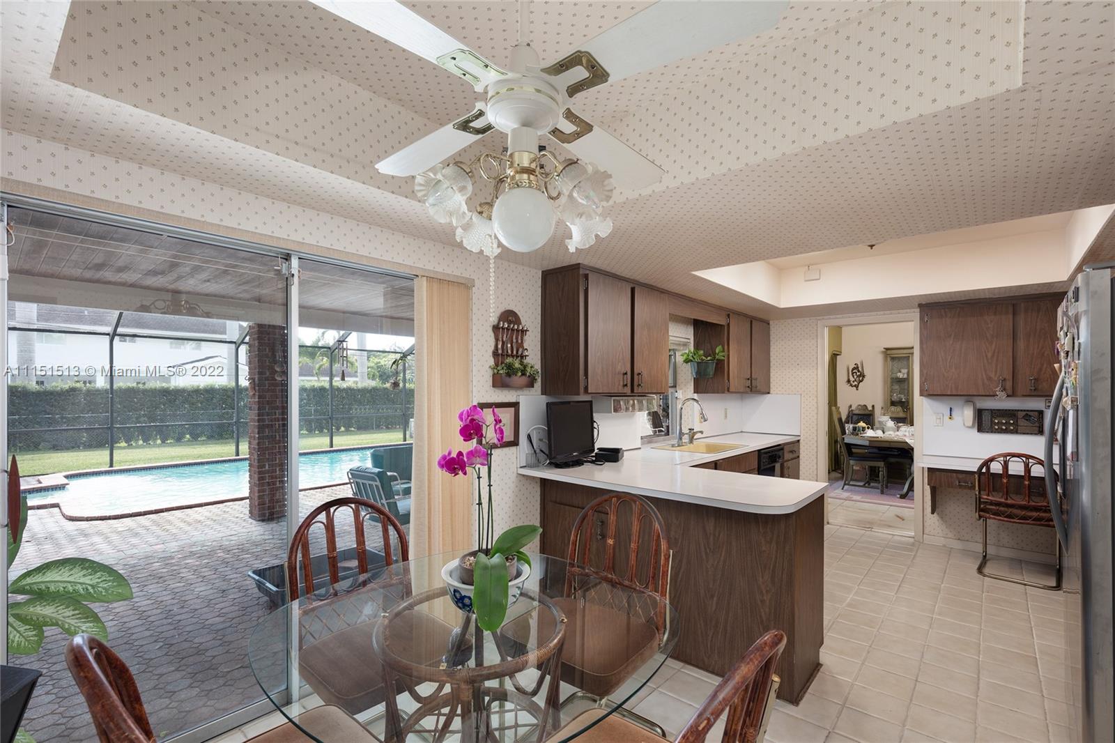 Don’t miss an opportunity to live within desirable Pinecrest on an over half-acre, corner lot. This single-owner property has been well-maintained and lovingly preserved. Put your modern stamp on the original 1960’s design or completely reimagine to your taste. This functional and spacious floor plan is the perfect canvas. Double doors lead into a large foyer, formal living room, dining room, kitchen with breakfast area, family room with wood-burning fireplace, and powder room. Each living space opens out to your covered terrace, pool, and backyard. The stacked bedrooms are generously sized with a cabana bath and oversized primary suite. Two car garage, two driveways, and ample storage to accommodate everyone. New roof to be completed prior to Closing. Great public and private schools.