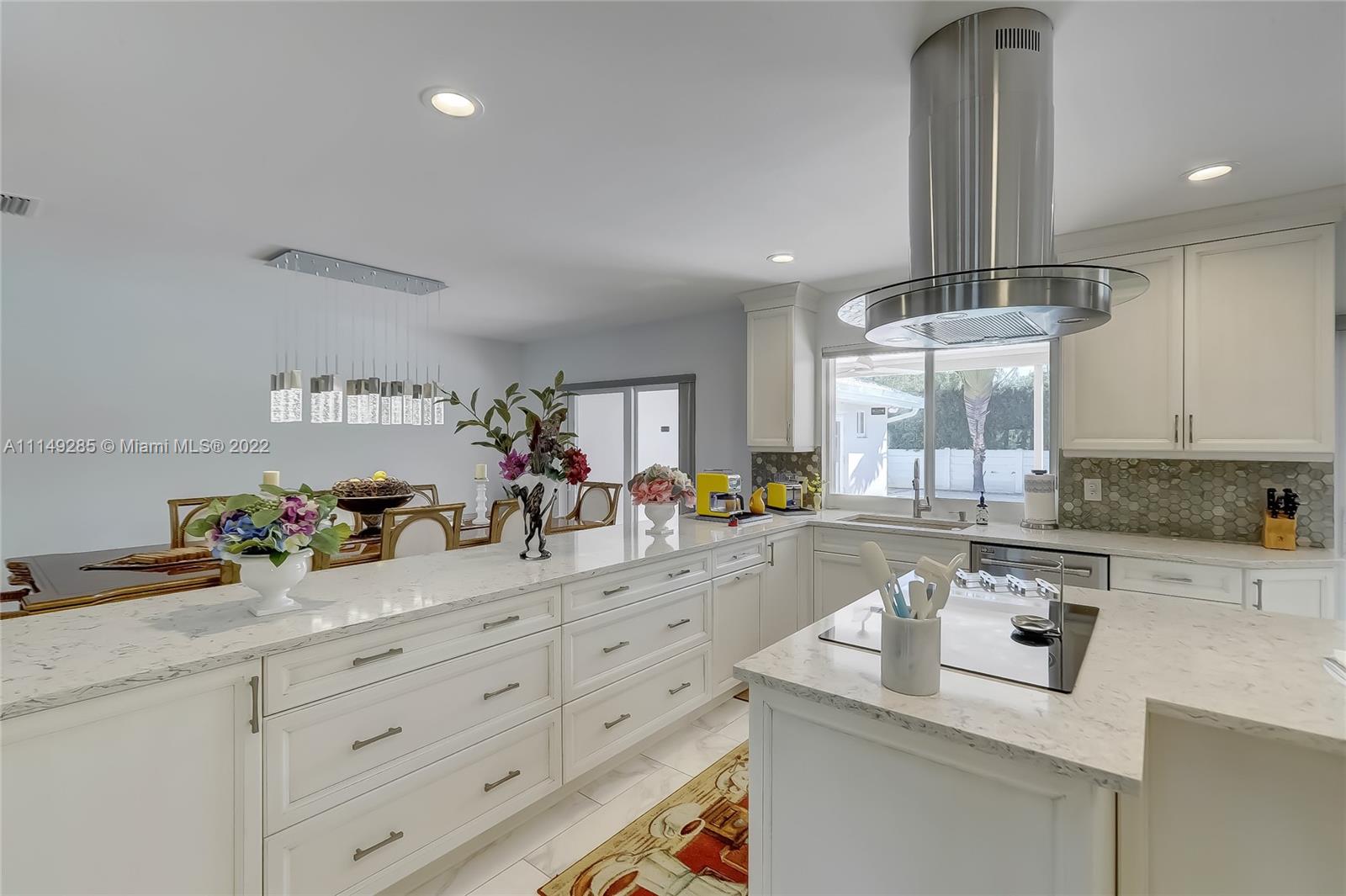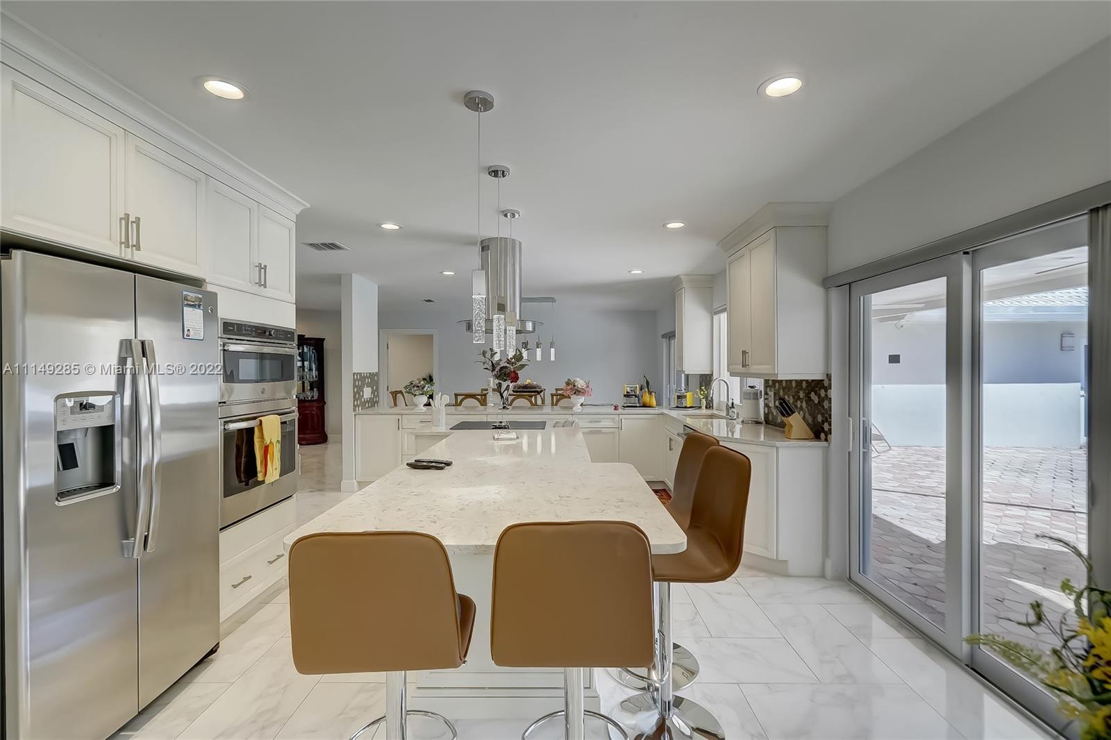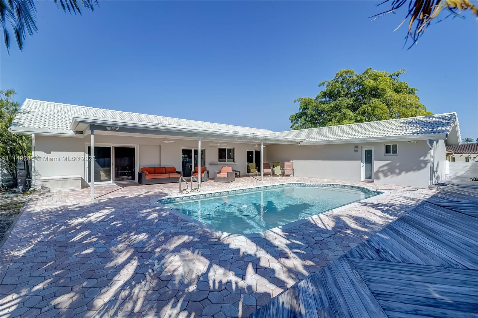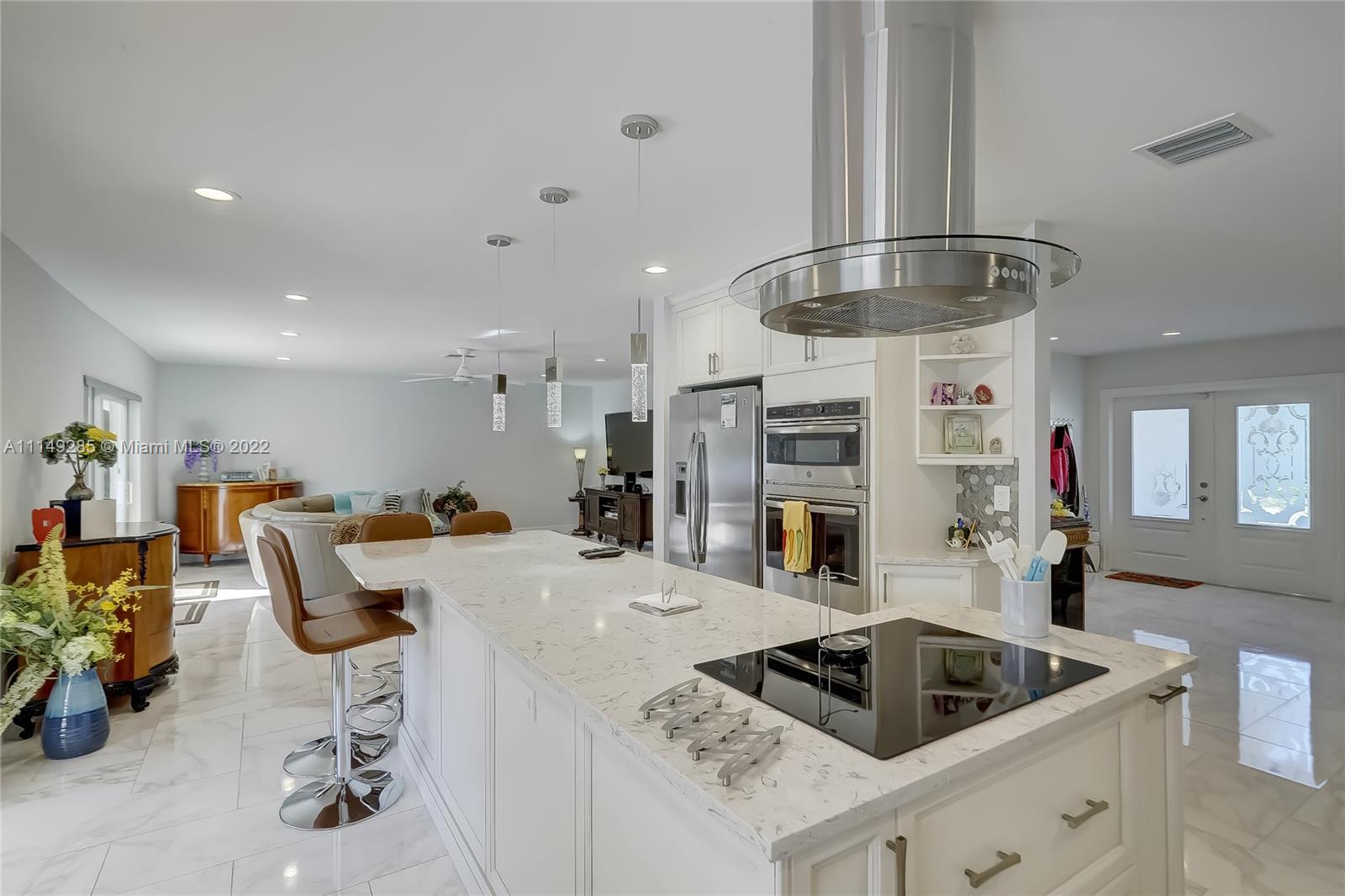 **Renovated Home in 2018 in Emerald Hills**. All Porcelain flooring throughout, All impact windows & doors, Open Quartz Kitchen w/ breakfast island, Lots of light, Gorgeous Bathrooms. Large Family Room. As soon as you open the door, you see an open floor plan. Expanded hallway. 4 full bedrooms (4th bed was opened to primary suite, can be easily converted to full bedroom). Garage was converted long time ago to a larger room w/ ensuite full 3rd bathroom w/ separate entrance (perfect for in law quarters or 5th bedroom). Corner lot, Circular driveway, large covered terrace for entertaining, pool deck, Fenced yard, 2 tankless water heaters 2018, Ac units 2017/2018. **multiple cash offers**. owner will review offers March 3.