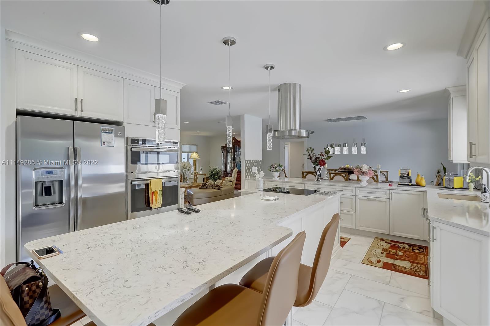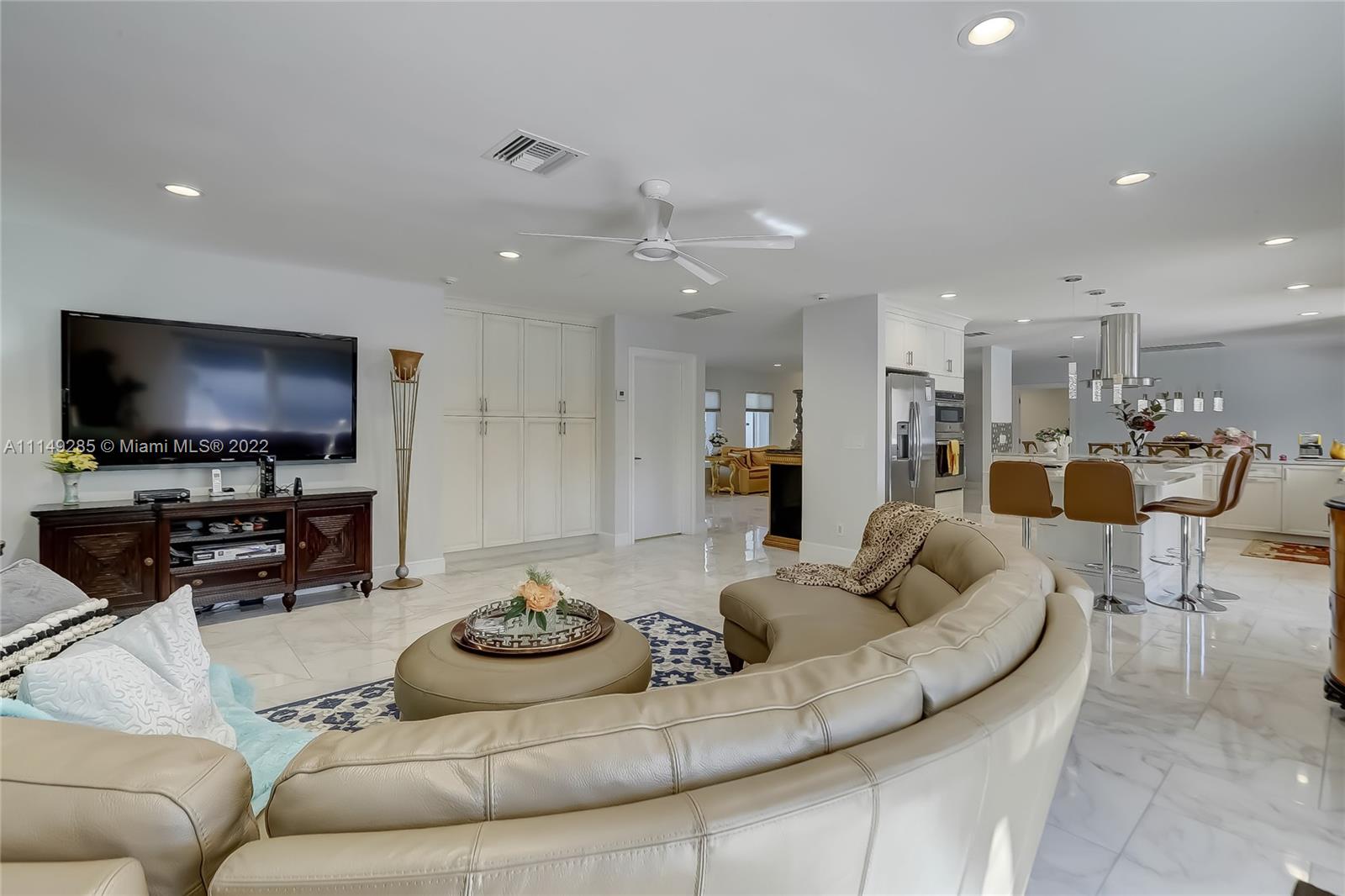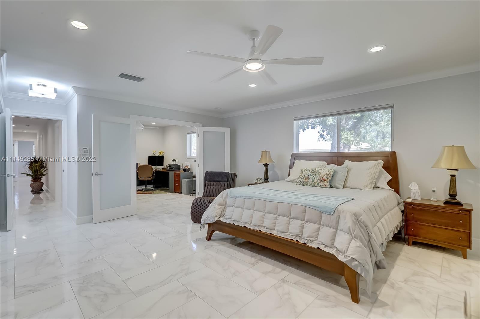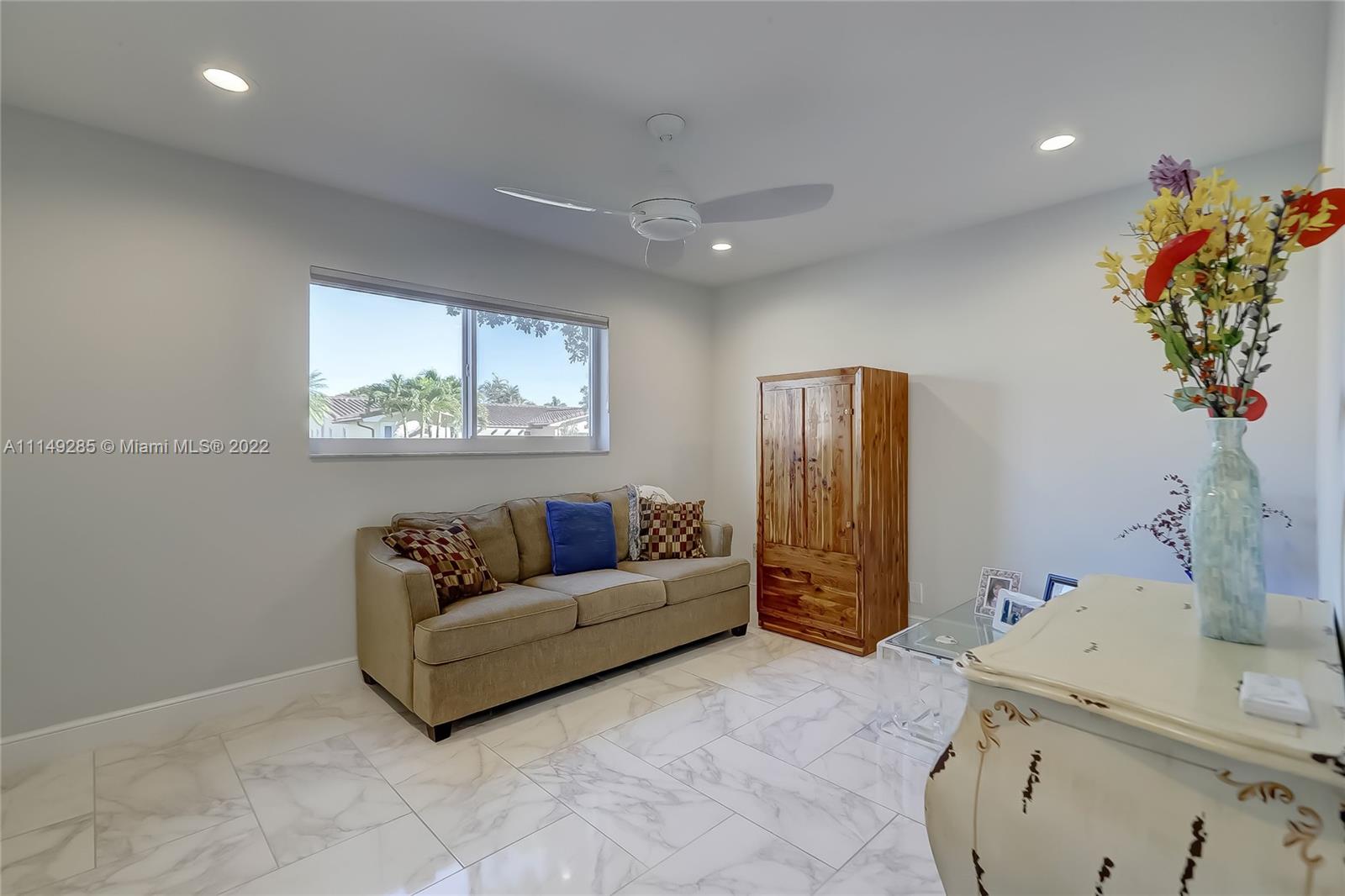 **Renovated Home in 2018 in Emerald Hills**. All Porcelain flooring throughout, All impact windows & doors, Open Quartz Kitchen w/ breakfast island, Lots of light, Gorgeous Bathrooms. Large Family Room. As soon as you open the door, you see an open floor plan. Expanded hallway. 4 full bedrooms (4th bed was opened to primary suite, can be easily converted to full bedroom). Garage was converted long time ago to a larger room w/ ensuite full 3rd bathroom w/ separate entrance (perfect for in law quarters or 5th bedroom). Corner lot, Circular driveway, large covered terrace for entertaining, pool deck, Fenced yard, 2 tankless water heaters 2018, Ac units 2017/2018. **multiple cash offers**. owner will review offers March 3.