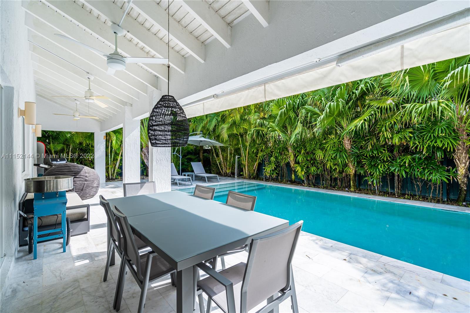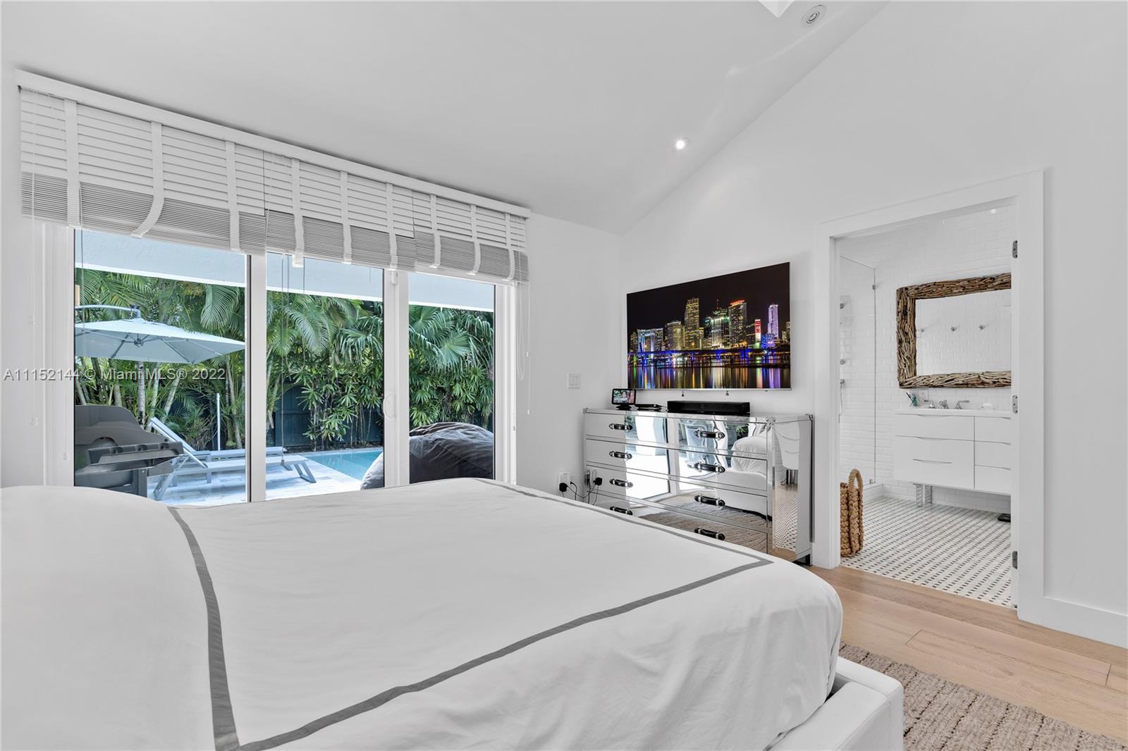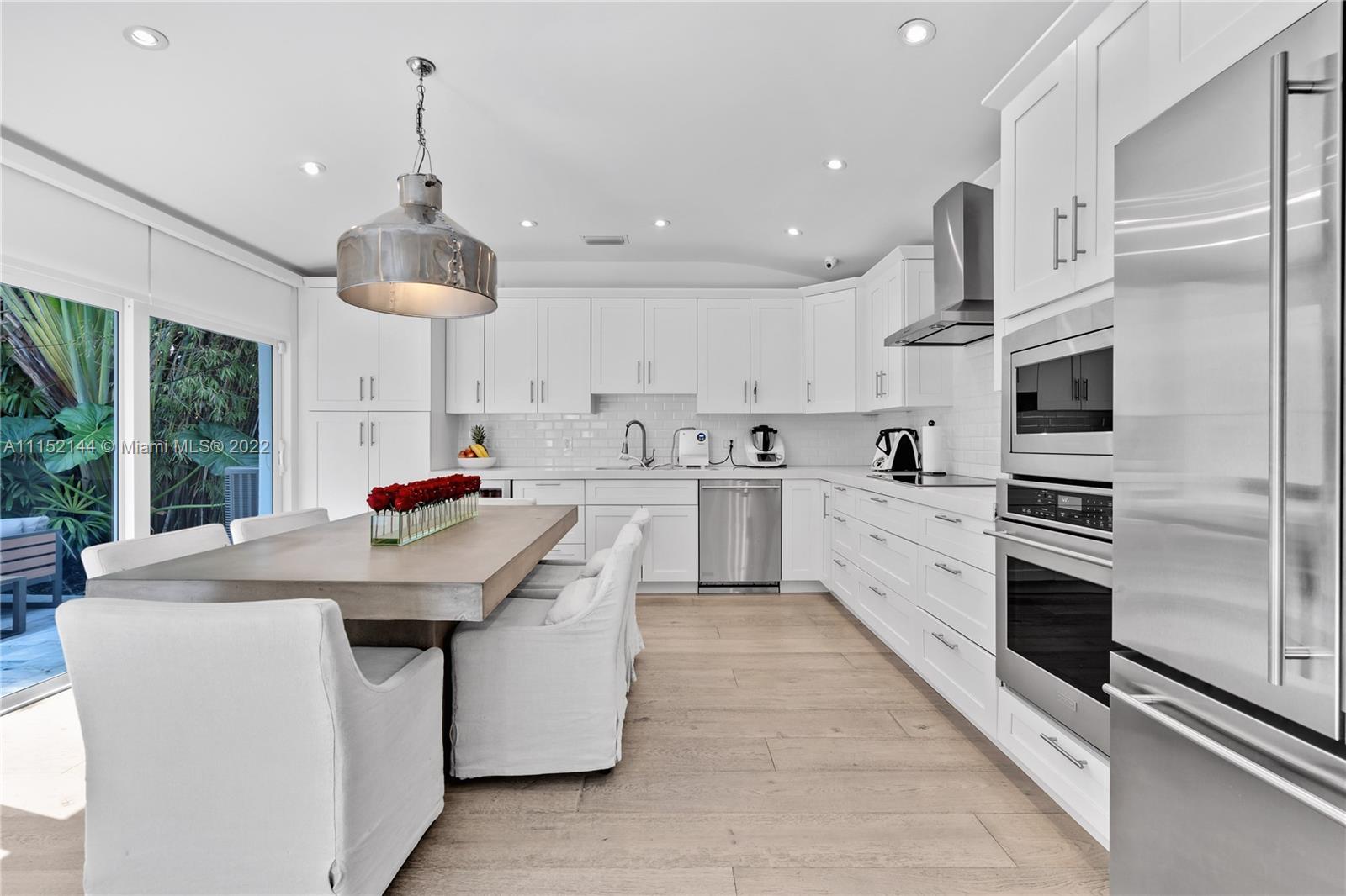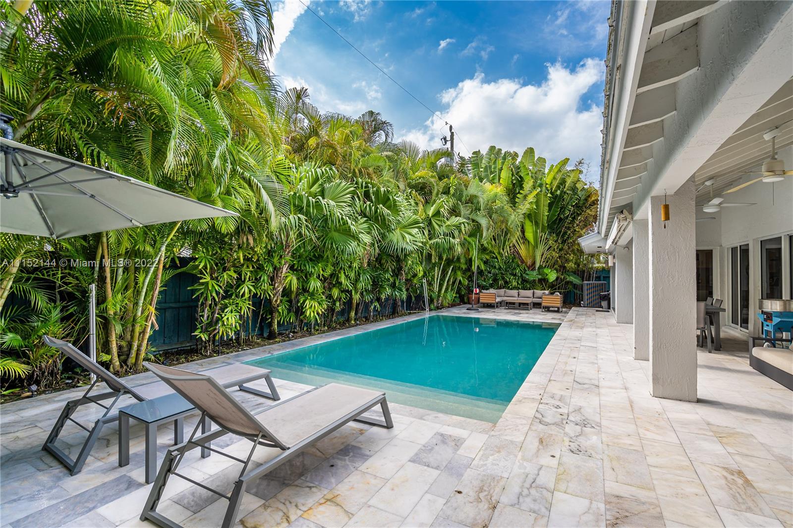 Fall in love with this impeccable and gorgeously remodeled ELEVATED home built in 1989 located in a quiet and elevated street. Beautiful vaulted ceilings with several skylights that fill the house with natural light, combined with wood floor for a complete cozy feeling, 5 bedrooms, 4 full baths, living room, family room and a very spacious kitchen with dining area that opens completely to the pool area. Covered terrace ideal for those who like to entertain next to a heated swimming pool.Custom closets, electric shades in several areas, attic with A/C. Complete impact windows & exquisite landscape that provides full privacy.Won’t last!