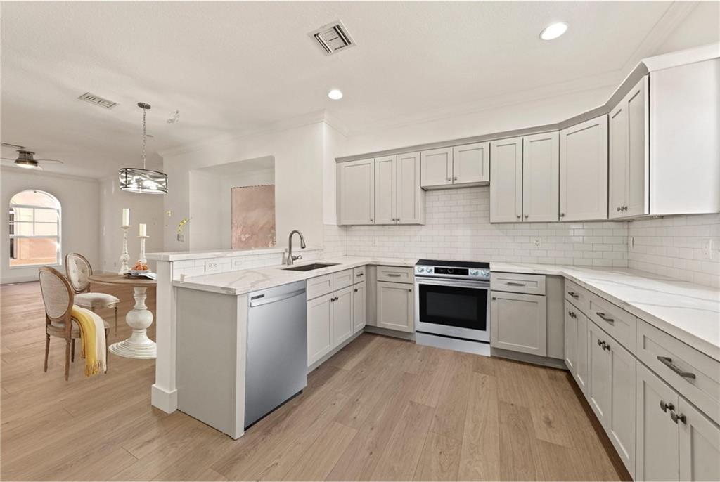 Completely remodeled 3 bedroom townhouse with en suite bathroom for each room plus a powder room is modern and updated.Some photos have been virtually staged.Located in east Fort Lauderdale you can walk and bike to stores, restaurants or the beach 1.5 miles away. New wood look luxury vinyl flooring is waterproof and durable.Designer kitchen features grey,shaker style cabinets,large stainless sink,brand new insinkerator and calacatta quartz countertops with a white subway tile backsplash.Dining options include counter seating plus dining area.Large laundry room off kitchen has a pantry.All bathrooms feature custom tile inlays,new toilets,new faucets and light fixtures.Impact windows.Fully gated complex has security.Community pool.Appliance order could not be fulfilled due to Covid. AC 2018