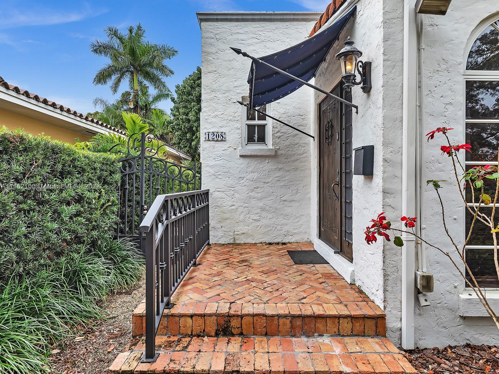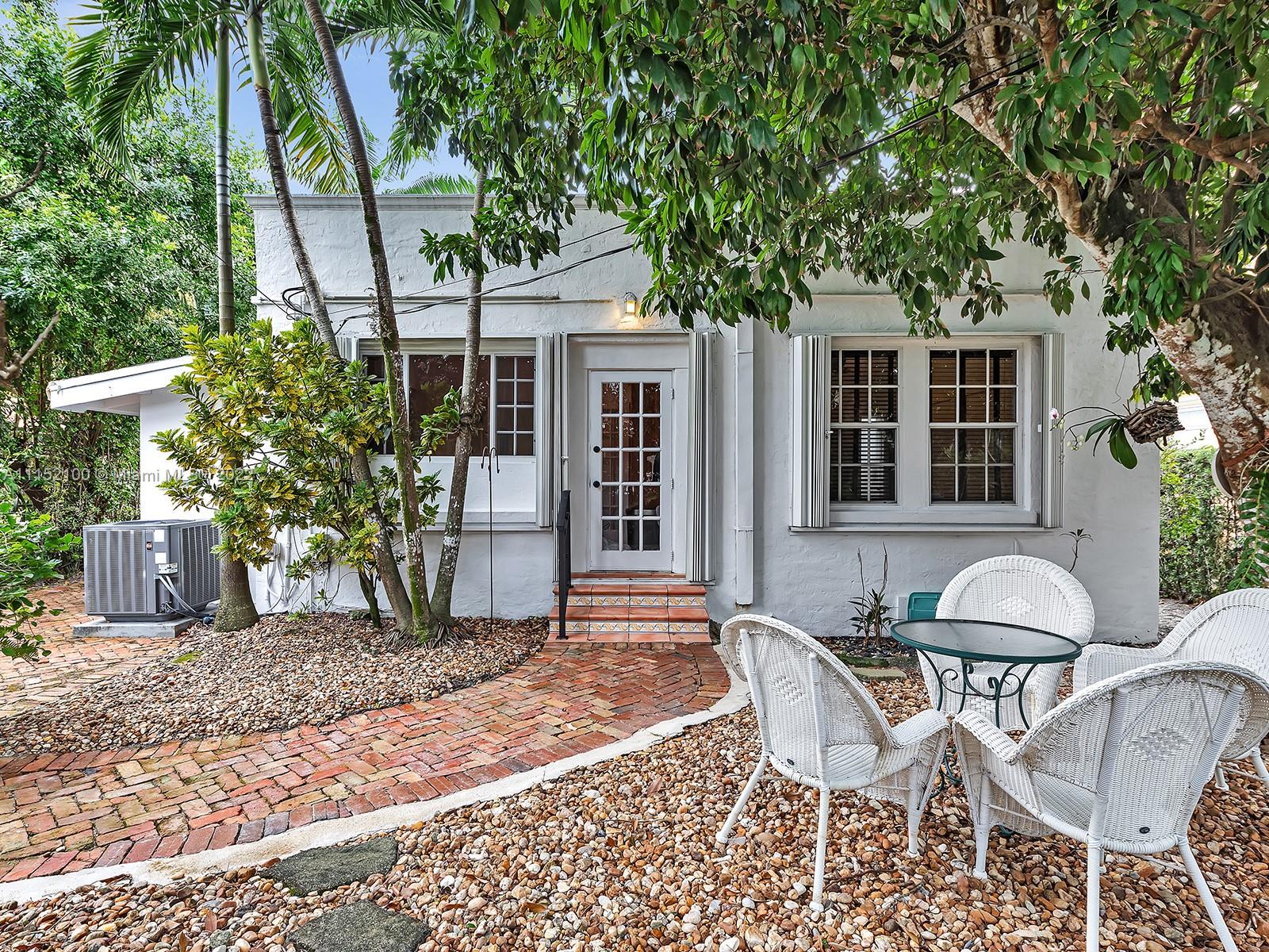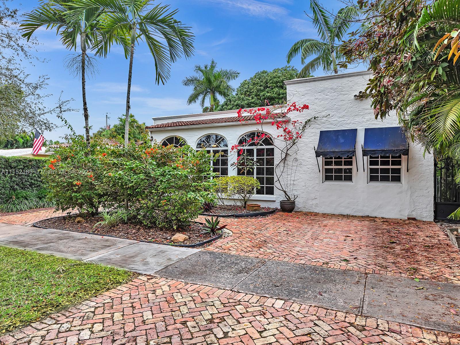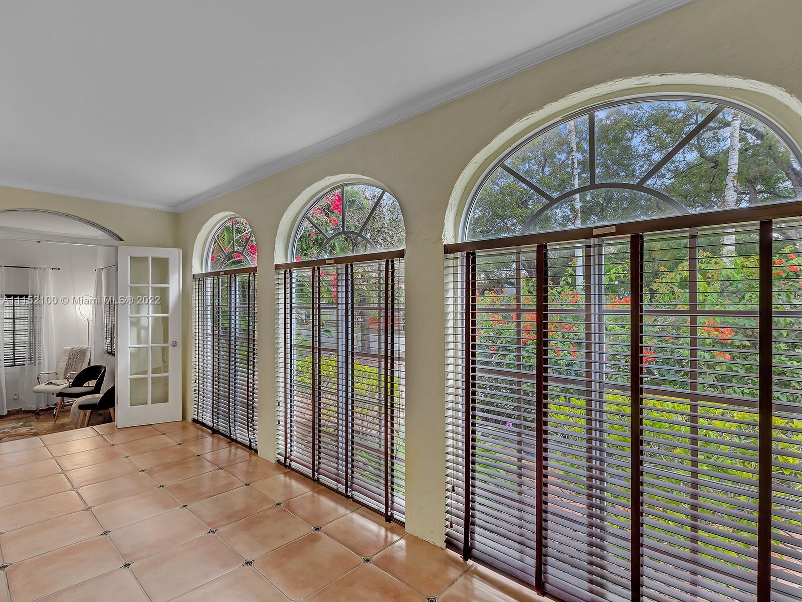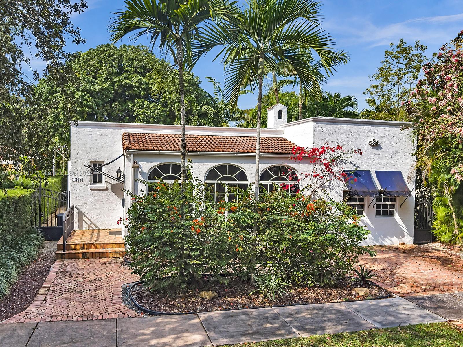 Enjoy this perfectly maintained Old Spanish in North Gables , exuding grace & comfort. Upon entering , walk into a sunroom, with walls of windows . This large lite & brite home has two bedrooms / One Bath home with a separate den/office and features a wood burning fireplace, hardwood floors, high ceilings, tankless water heater, closet built ins & a charming brick garden with a generous back yard . All windows are either impact or have shutters. Short drive to Downtown Coral Gables, Venetian Pool , Biltmore Hotel , Restaurants and shopping as well as the airport .