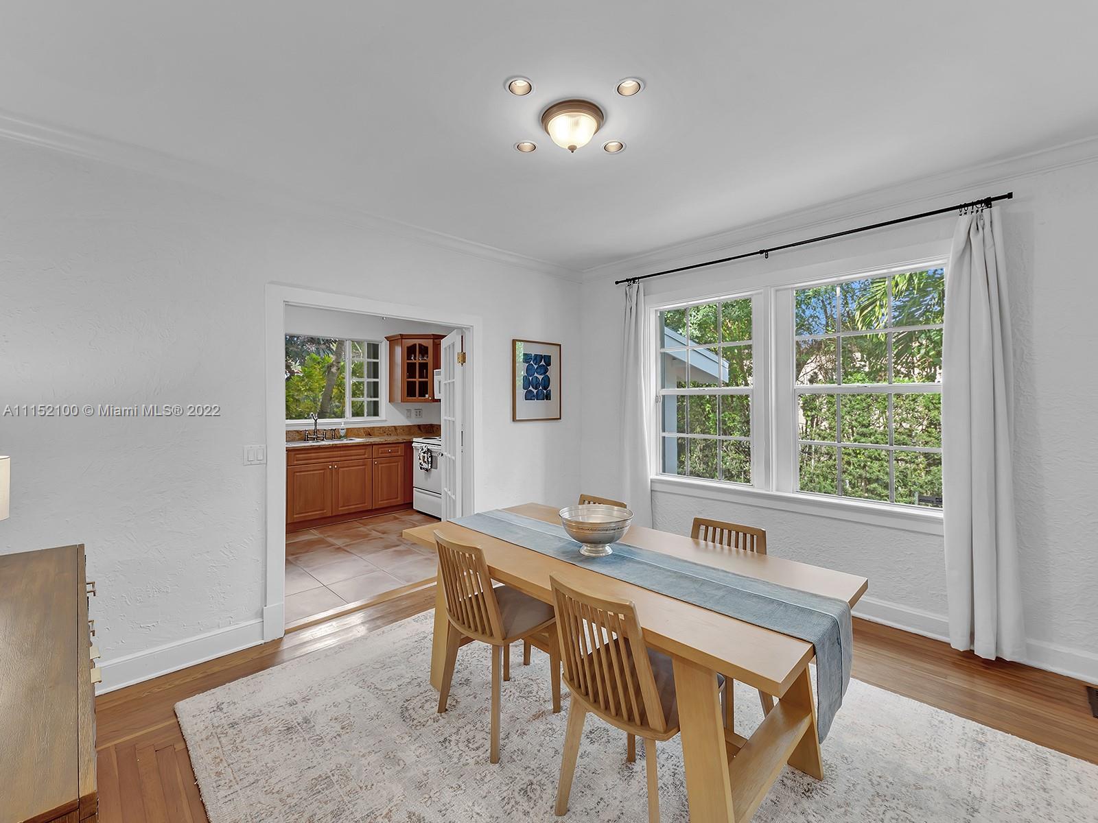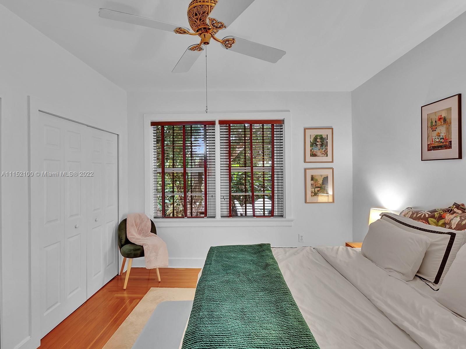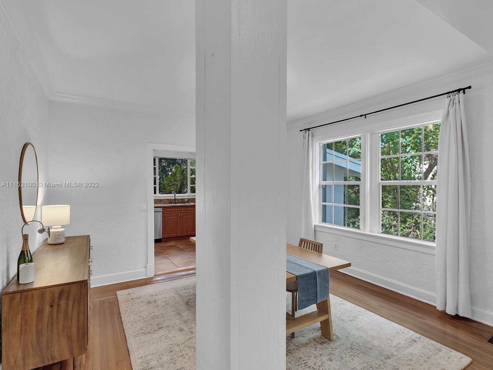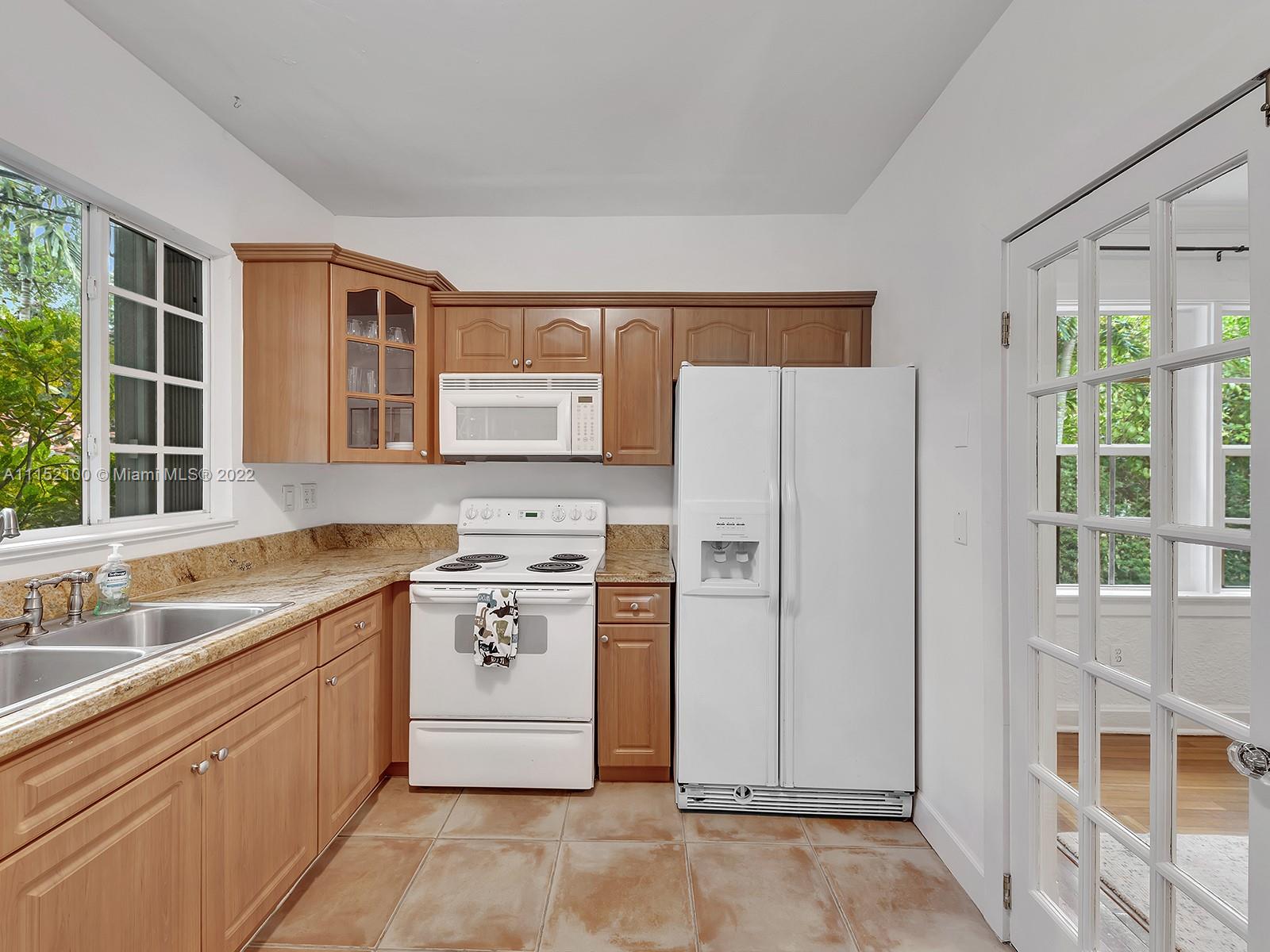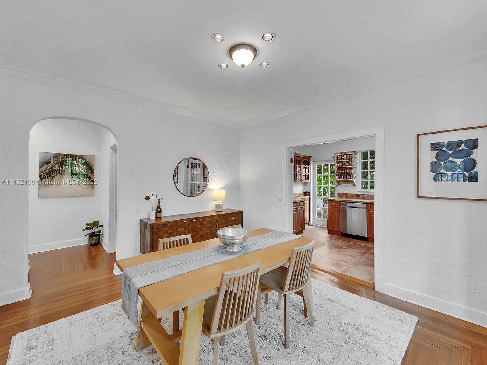 Enjoy this perfectly maintained Old Spanish in North Gables , exuding grace & comfort. Upon entering , walk into a sunroom, with walls of windows . This large lite & brite home has two bedrooms / One Bath home with a separate den/office and features a wood burning fireplace, hardwood floors, high ceilings, tankless water heater, closet built ins & a charming brick garden with a generous back yard . All windows are either impact or have shutters. Short drive to Downtown Coral Gables, Venetian Pool , Biltmore Hotel , Restaurants and shopping as well as the airport .