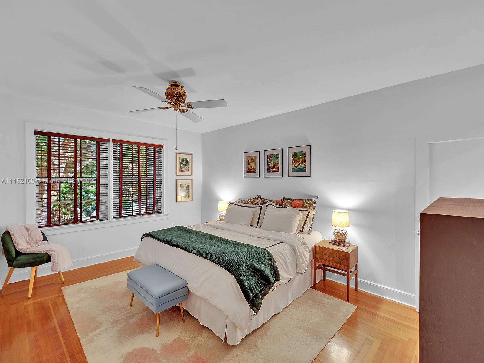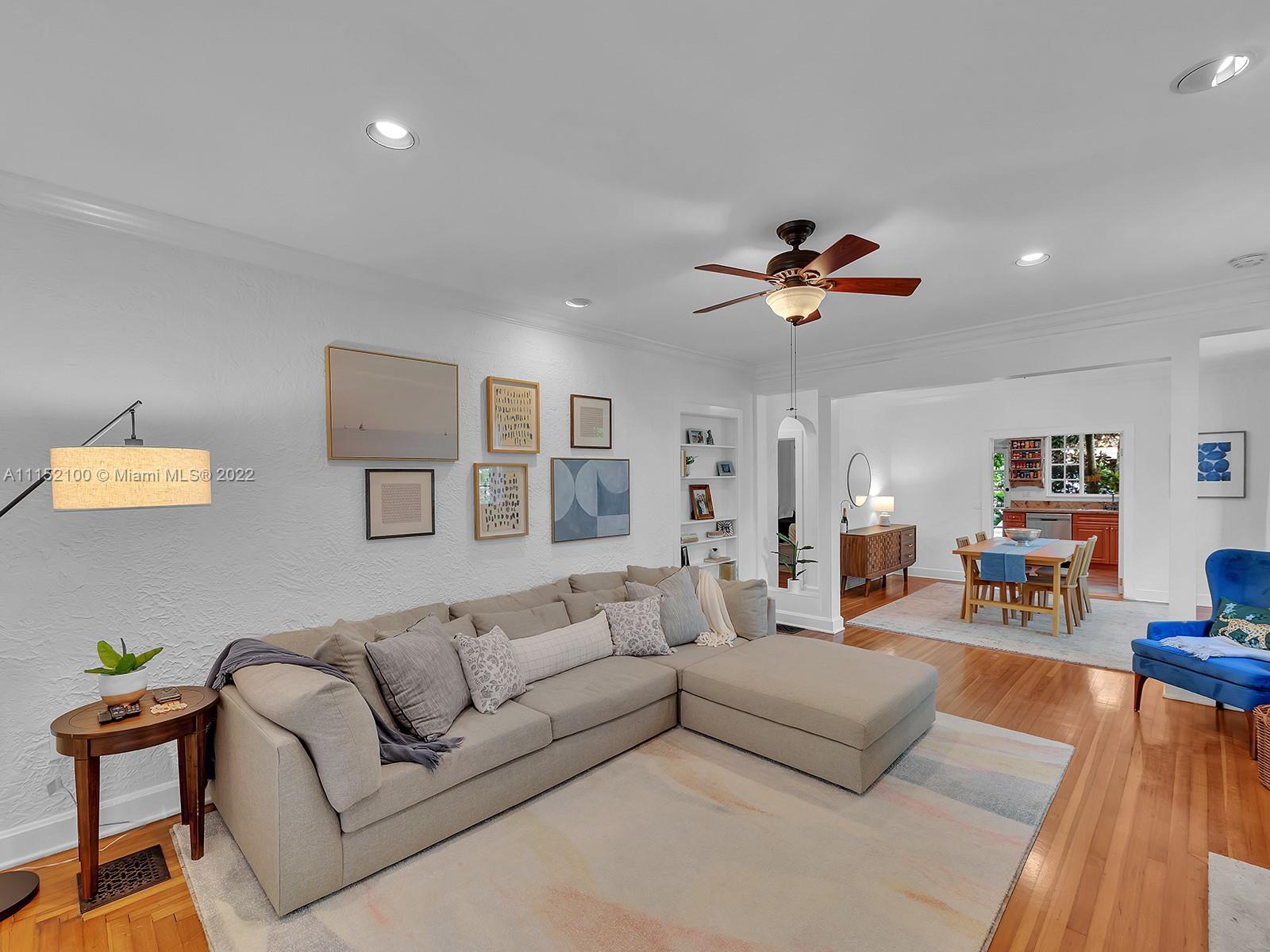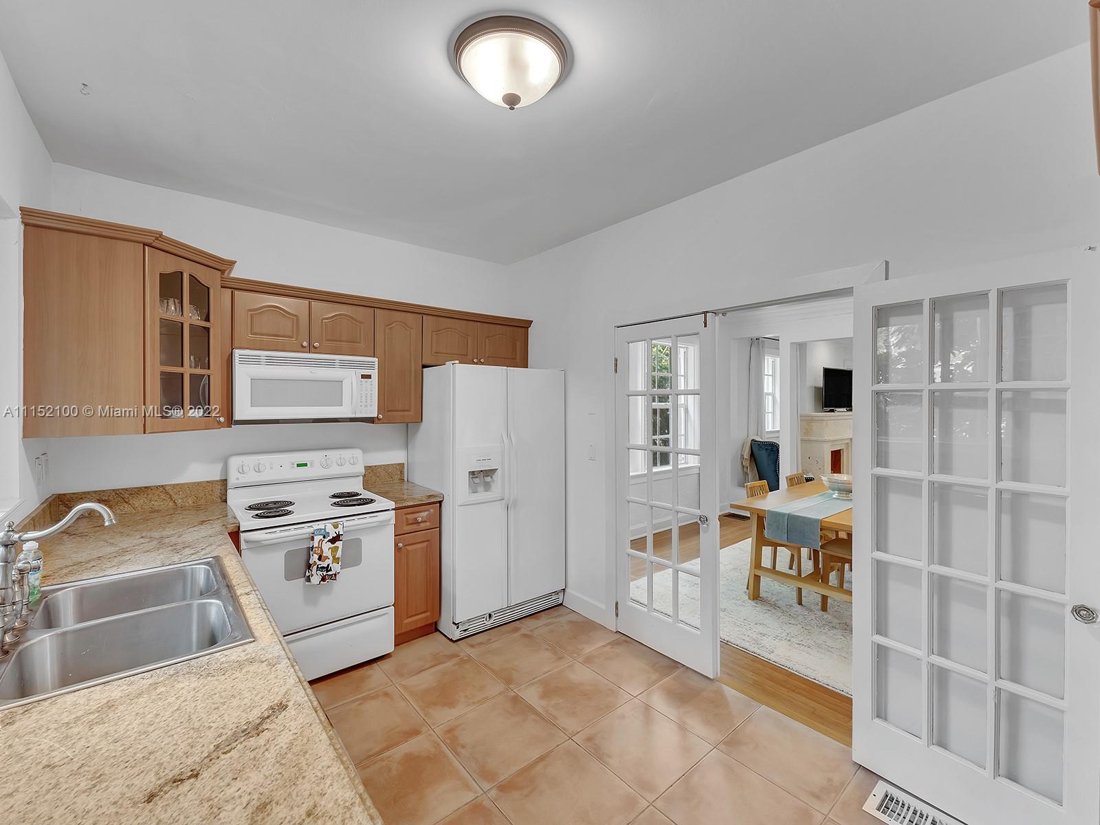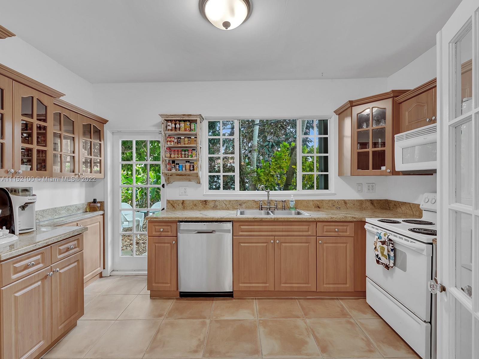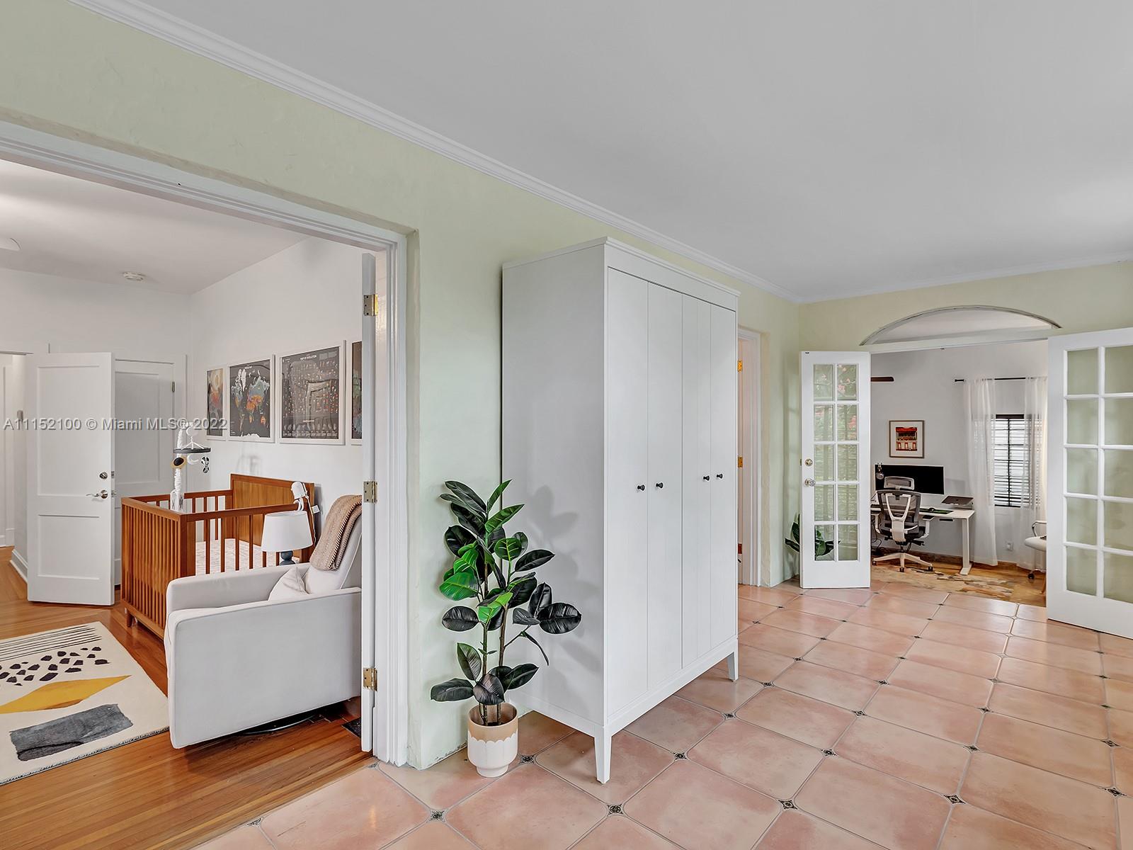 Enjoy this perfectly maintained Old Spanish in North Gables , exuding grace & comfort. Upon entering , walk into a sunroom, with walls of windows . This large lite & brite home has two bedrooms / One Bath home with a separate den/office and features a wood burning fireplace, hardwood floors, high ceilings, tankless water heater, closet built ins & a charming brick garden with a generous back yard . All windows are either impact or have shutters. Short drive to Downtown Coral Gables, Venetian Pool , Biltmore Hotel , Restaurants and shopping as well as the airport .