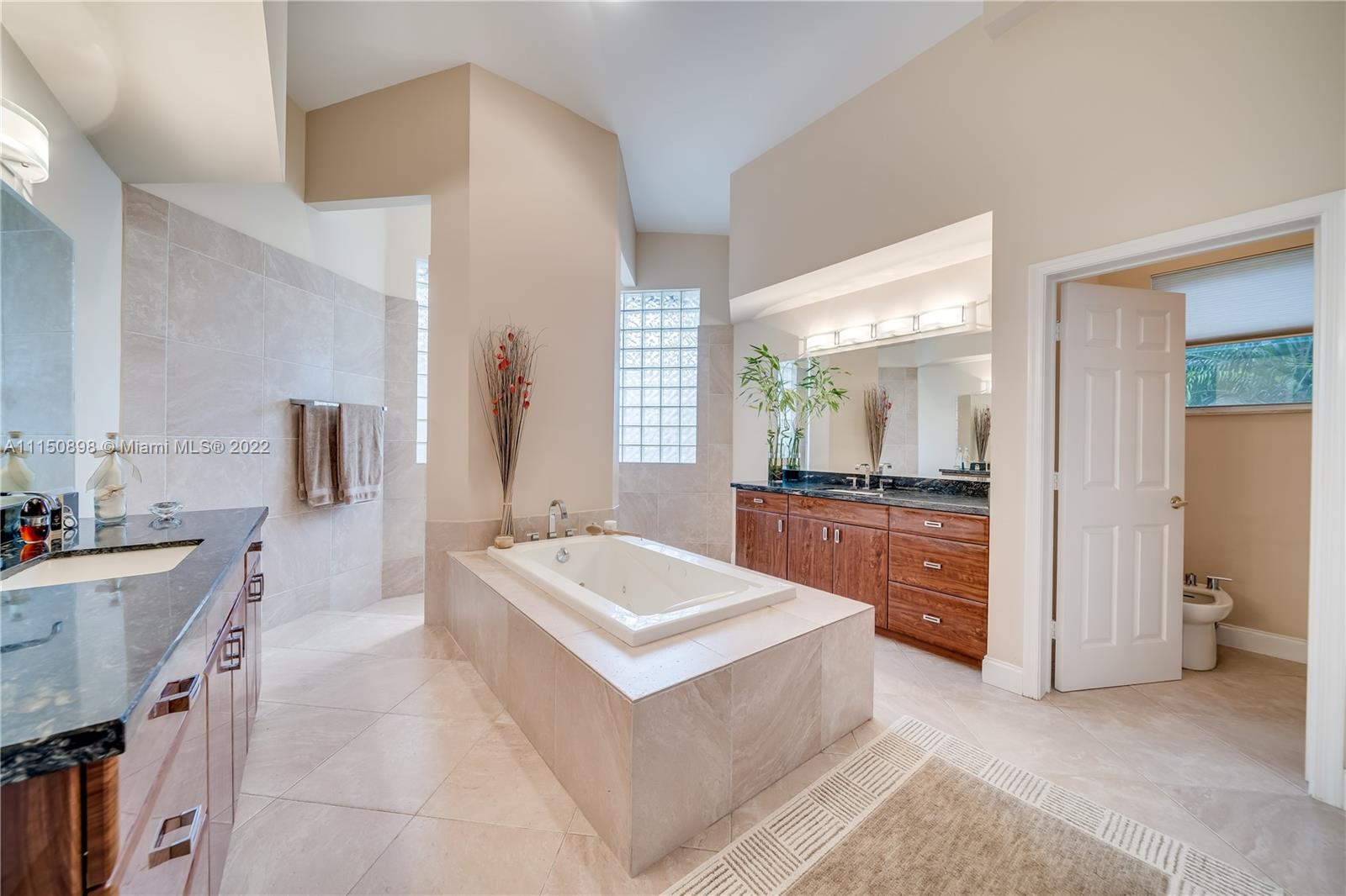 THE LARGEST HOME in one of Weston’s most desirable neighborhoods – THE LANDINGS. This luxurious lakefront estate with a pool is a dream home for a family. 7 Bedrooms (one converted to an office & one other bedroom converted into a playroom), 7 full baths and 1 half bath, on a 20,800 SF lot. This one story home offers a large patio surrounding the pool perfect for entertaining. The open concept design let you enjoy pool and lake views from the Master Bedroom, Living Room, Kitchen and Family Room. Other futures included are; steam room, cabana bath with frameless glass, outdoor shower, built in Murphy Bed in one of the bedrooms, high ceilings and marble floors throughout. Great location Access to excellent A-rated public schools, near to major highways, dining and shopping.