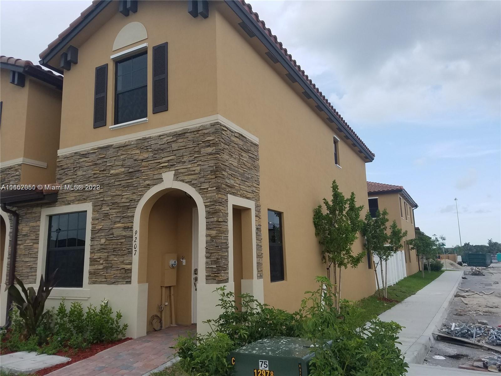 Mediterranean-inspired Villa 3be/2.5ba with private fence yard, NEW Community BONTERRA!! One of the most desired location in Miami, This CORNER unit brings Stainless Steel GE Appliances, Dark wood cabinets 36”, tile main floor and luxurious carpet upstairs, washer & dryer in 2nd floor, dramatic 9’1” ceiling, High speed structured wiring throughout, construction with energy saving features that will lower your bills, Very bright and spacious corner unit with 4 extra windows and backyard access, 2 assigned parking plus 4 extra around the property, private patio to entertain family and friends, offering easy commuting access to nearby restaurants, shopping and schools, enjoy the clubhouse and amenities, resort-style swimming pool, live in this family-oriented new gated community