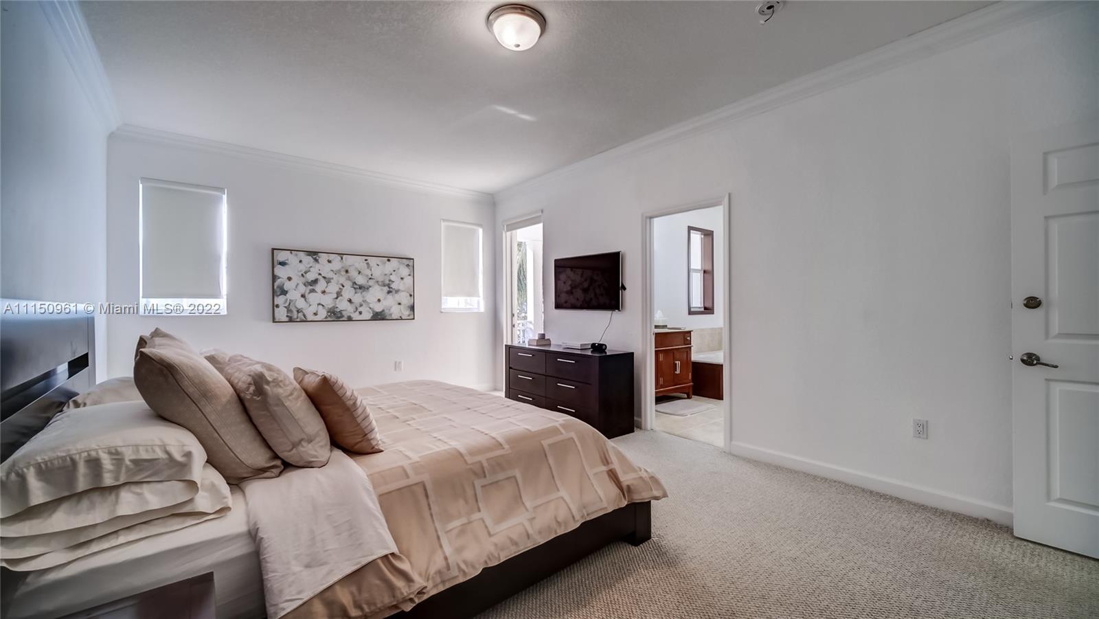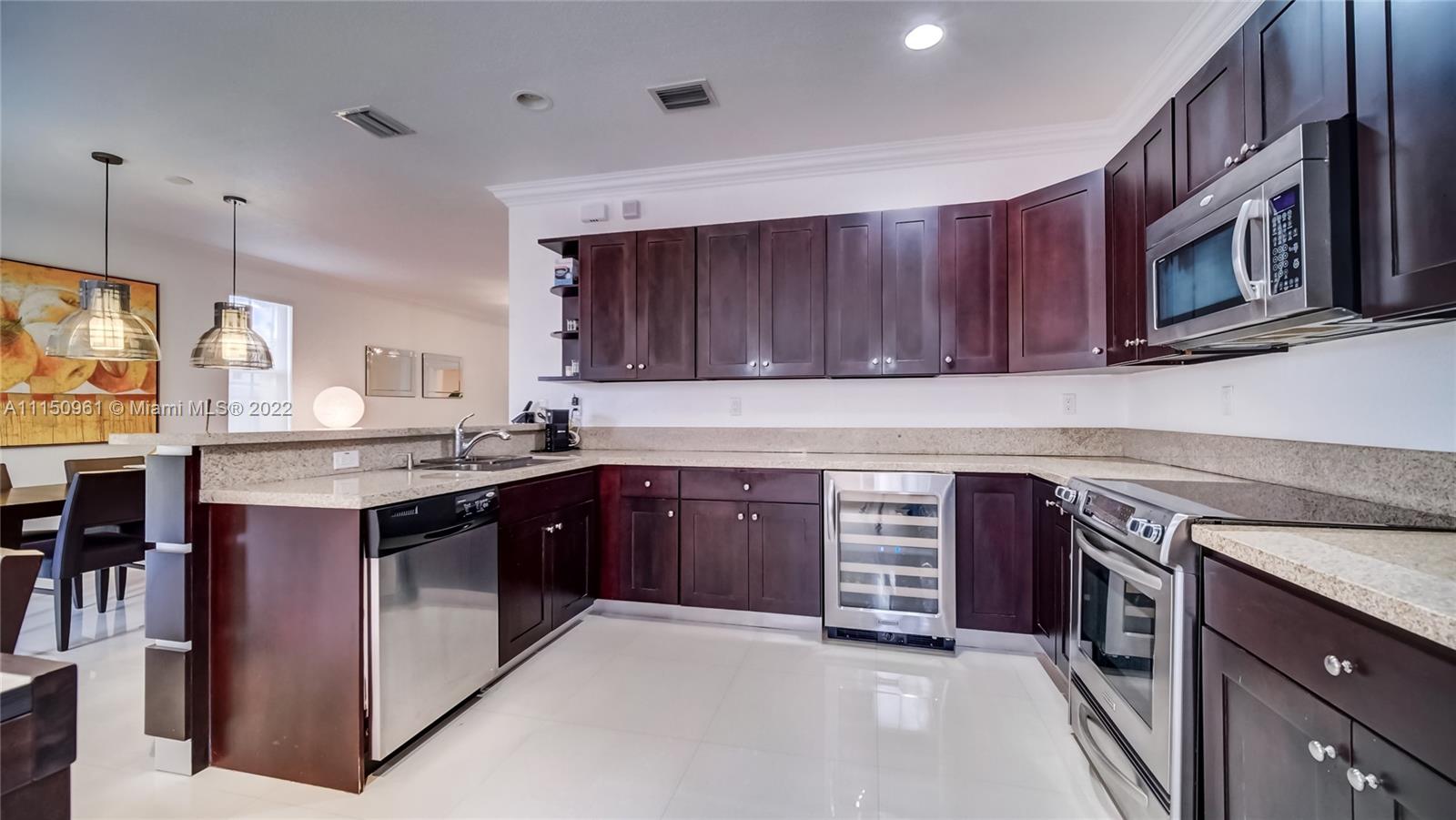 Whether you need a vacation home or a primary home in South Florida, this is the place for you. This 2 story, 4 bedroom, 3 and a half bathroom has 2 additional parking spots, and it's located right around the corner from the community pool and gym. Featuring a kitchen with stainless steel appliances and a wine fridge, 3 full bathrooms for the upstairs bedrooms, and a half bath to accompany the bedroom/den downstairs, balconies coming off of the master suite and one of the guest bedrooms and high quality furniture that is negotiable as a part of the sale. The unit has been maintained and reflects the cleanliness of a new home. This end unit is located in the quiet city of Doral, just minutes from the turnpike making a commute seamless. Come check out this home away from home!