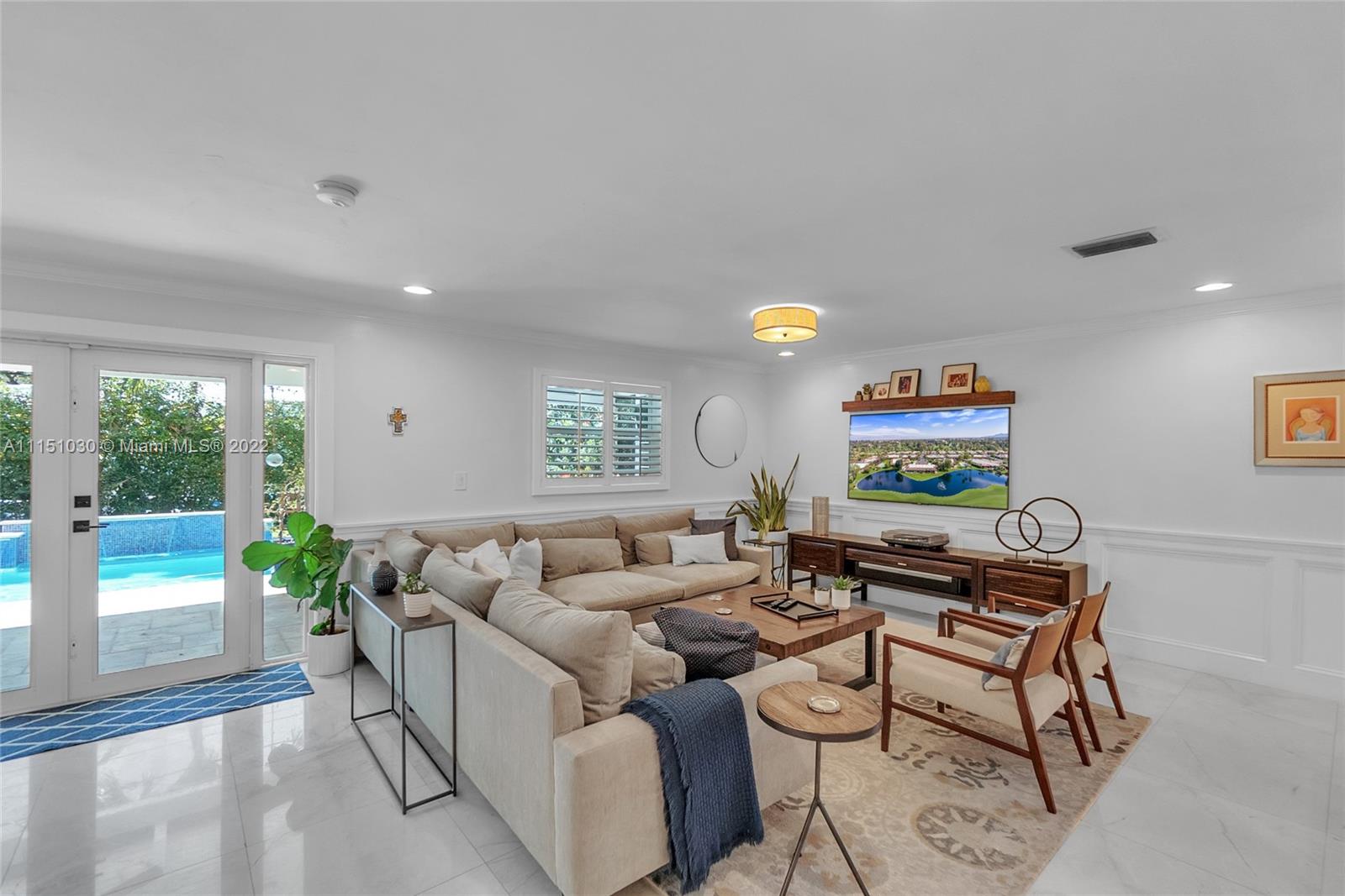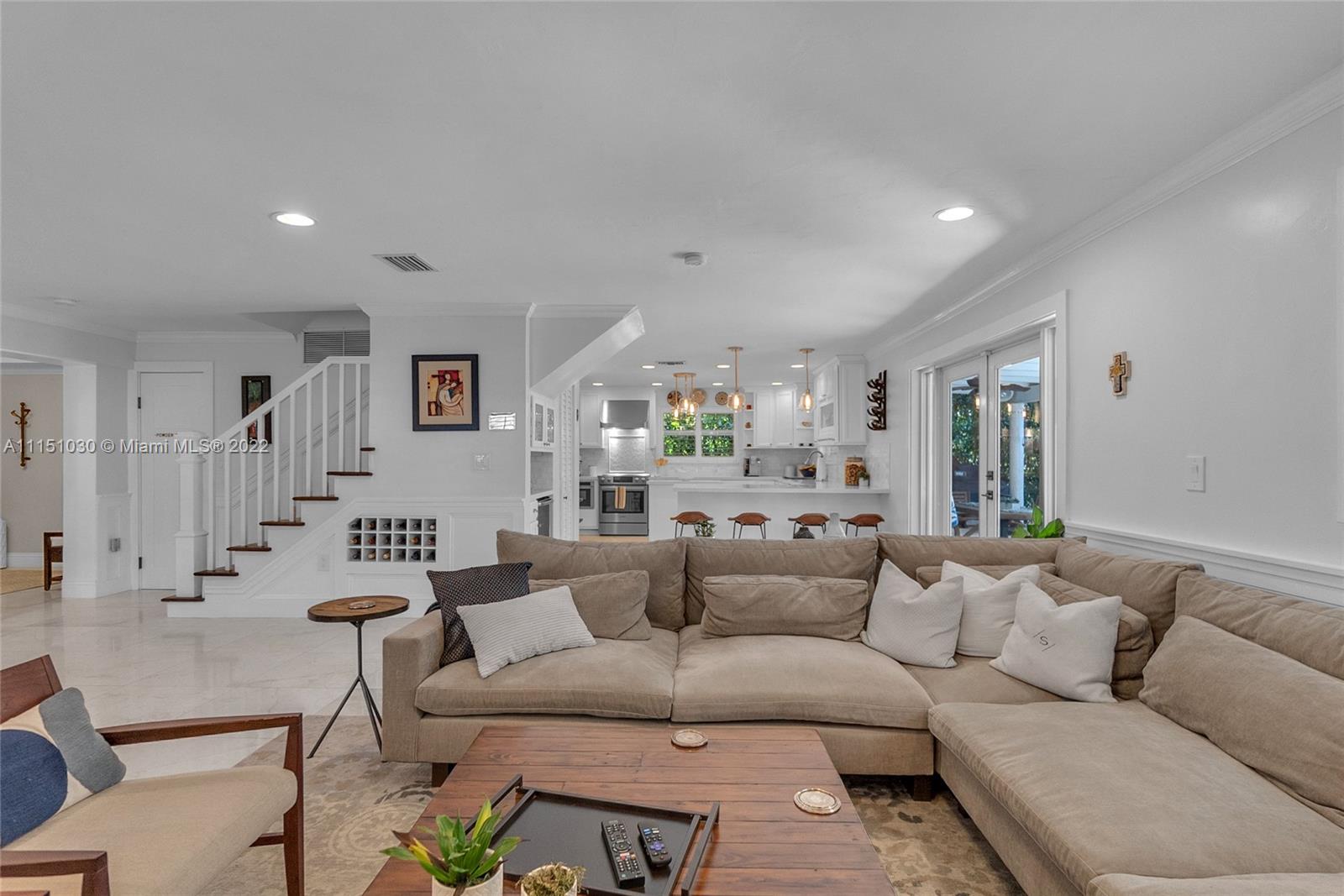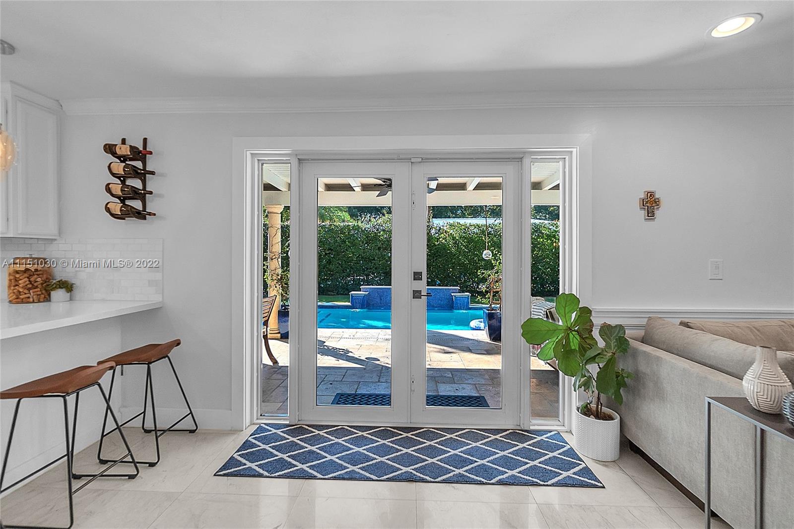 Perfect family home in prime SGables, quiet tree-lined street location! Impeccable turnkey 4bd/2.5 bath, 2 Story home is truly a gem. Boasting an open floor plan w/2,352 sqft under AC & 2,700 sqft total (per owner). Ground floor has a fantastic layout, featuring wainscoting in dining, living and parlor/office w/built-ins. Kitchen features quartz countertops, SS appliances, & prep island. Wine cooler/bar area complete this great space for entertaining. Garage has been converted to a playroom & gym. Covered patio & pool. Upstairs you will find 4 bd, 2 full baths, & laundry. Marble floors on the 1st floor, wood upstairs. Impact windows & doors, partial accordion shutters, 2 ACs, & on demand water heater. Security gate, lighting, & brick driveway. Located in SunsetElemDistrict. OPEN 1/30 1-330