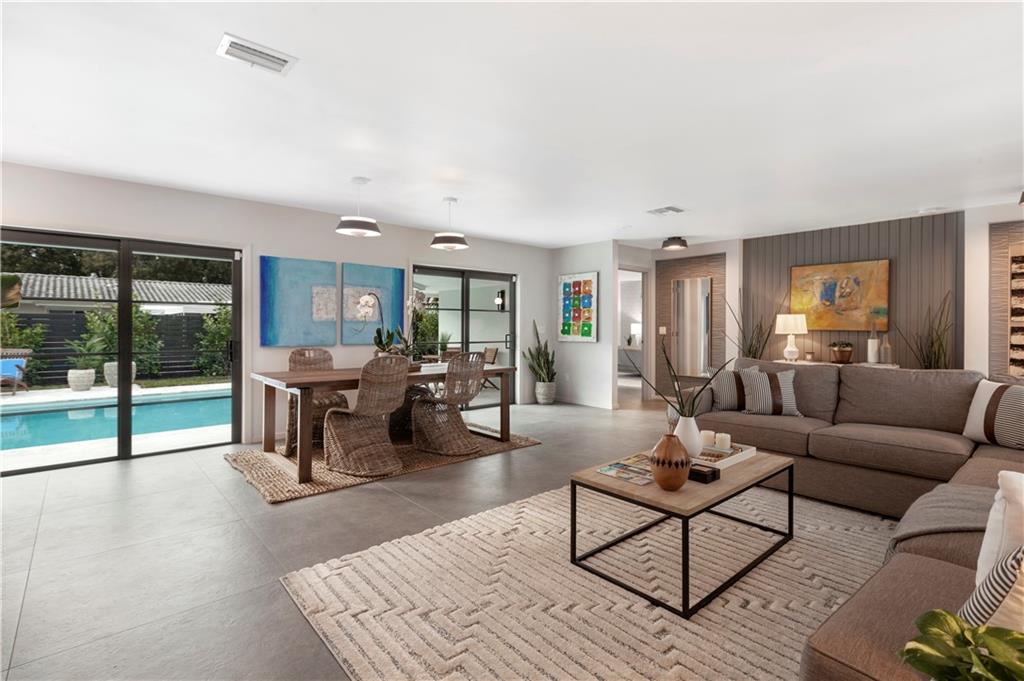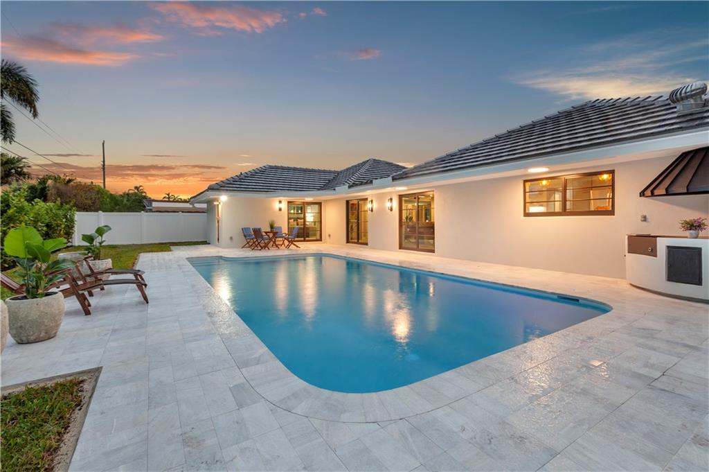 Imagine living in this newly rebuilt and entirely redesigned Midcentury Contemporary masterpiece, nestled in East Fort Lauderdale, just minutes to the ocean. This single-family residence combines the indoors and outdoors in perfect harmony. Features include rectified porcelain floors, designer kitchen, eat-in bar, coffee station + floating server, pantry, laundry room, custom fixtures, interior doors/hardware, brand new modern bathrooms, new walls, and electric, new a/c duct system. All bedrooms w/custom closets, a new roof, impact-resistant windows/doors, outdoor kitchen w/ over 300sq.ft. Covered outdoor space, marble pavers, a new fence and landscaping, a new irrigation system, and so much more. Copies of the complete master plan and blueprints are available for the proud new owners.