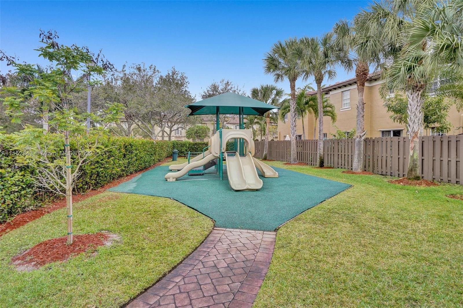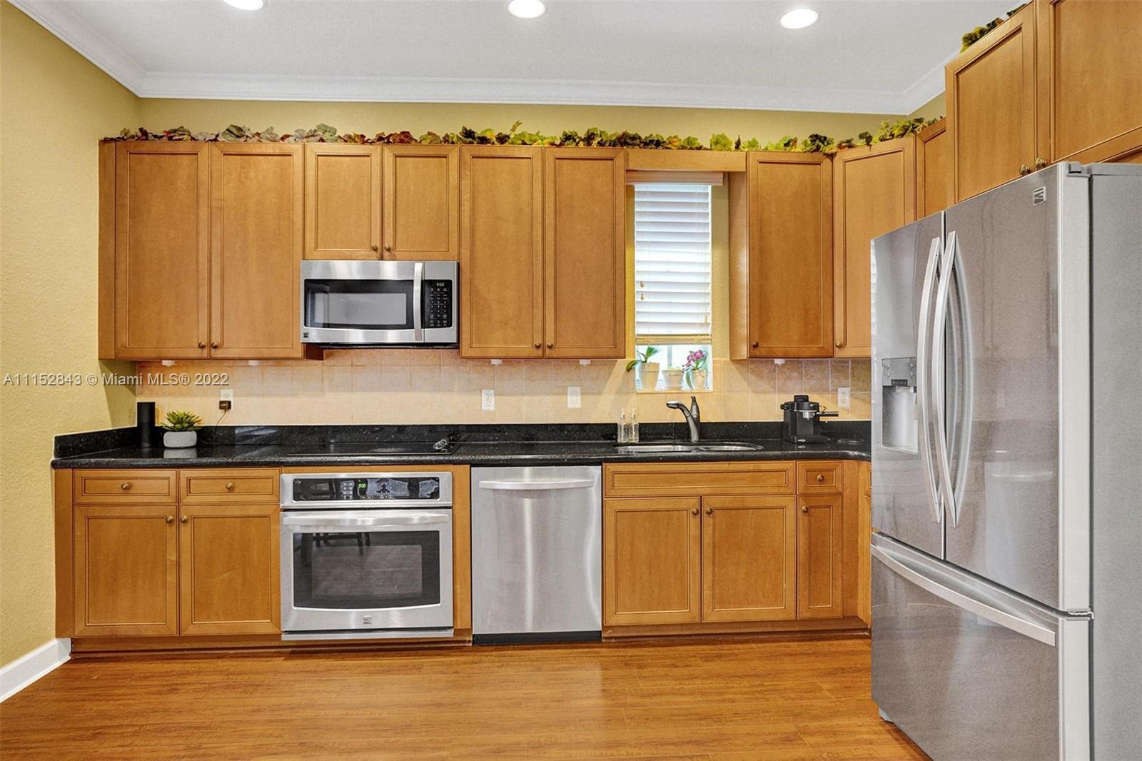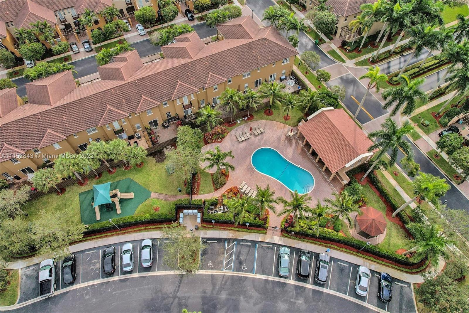 Clean 3 bedroom 2.5 bathroom corner home with crown molding in this quiet boutique community. Granite countertops, 2 large walk-in master closets, master bath has separate shower, double sinks, and a large soaking tub. It also has a 1 car garage, driveway space for 1 and additional guest parking. The HOA fee includes front exterior landscaping, pool service, common area maintenance, basic cable and alarm system. Cimarron amenities include the community pool and playground and is also zoned for A-rated Schools in Davie. Community repainted in 2021.