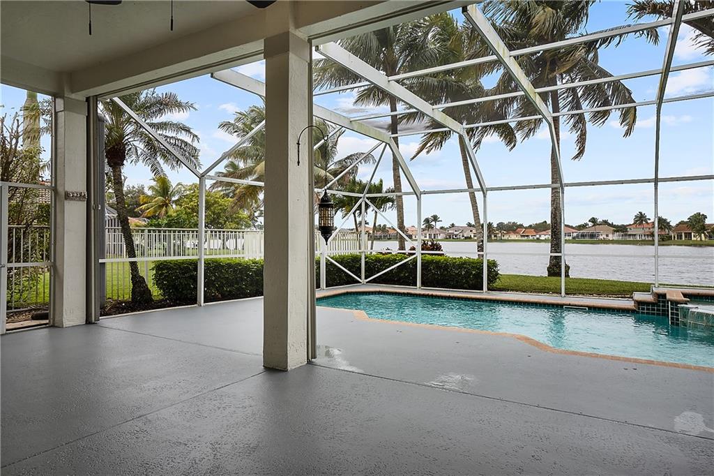 Beautiful Waterfront Home located in the desirable Verona Lakes gated community, in Lakes of Weston. Spacious split floor plan with vaulted ceilings has 4 Bedrooms and 3 Baths. A large Enclosed Pool with a spa is great for entertaining inside or outside with an amazing water view of a beautiful lake. All fans and light fixtures were replaced. The Masterbedroom +a sitting room or office with 2 walk-in closets and an enormous bathroom with a shower, a Roman tub, double vanities, and a separate toilet. The kitchen features granite countertops-wood cabinets. All bedrooms have wood flooring with exception of one. Tile floors are located in all living areas. Roof replaced 2014 and AC 5 yrs. All windows and doors have new Hurricane impact windows with hurricane shutters around patio.