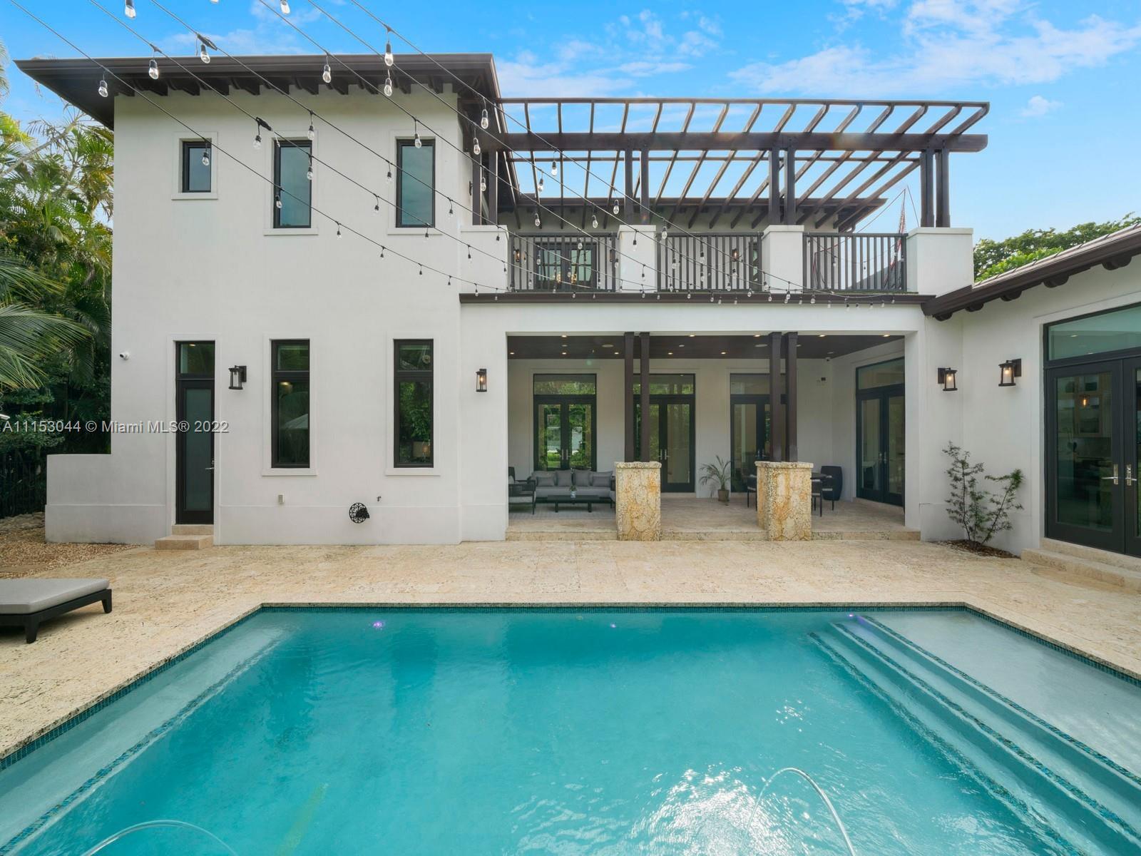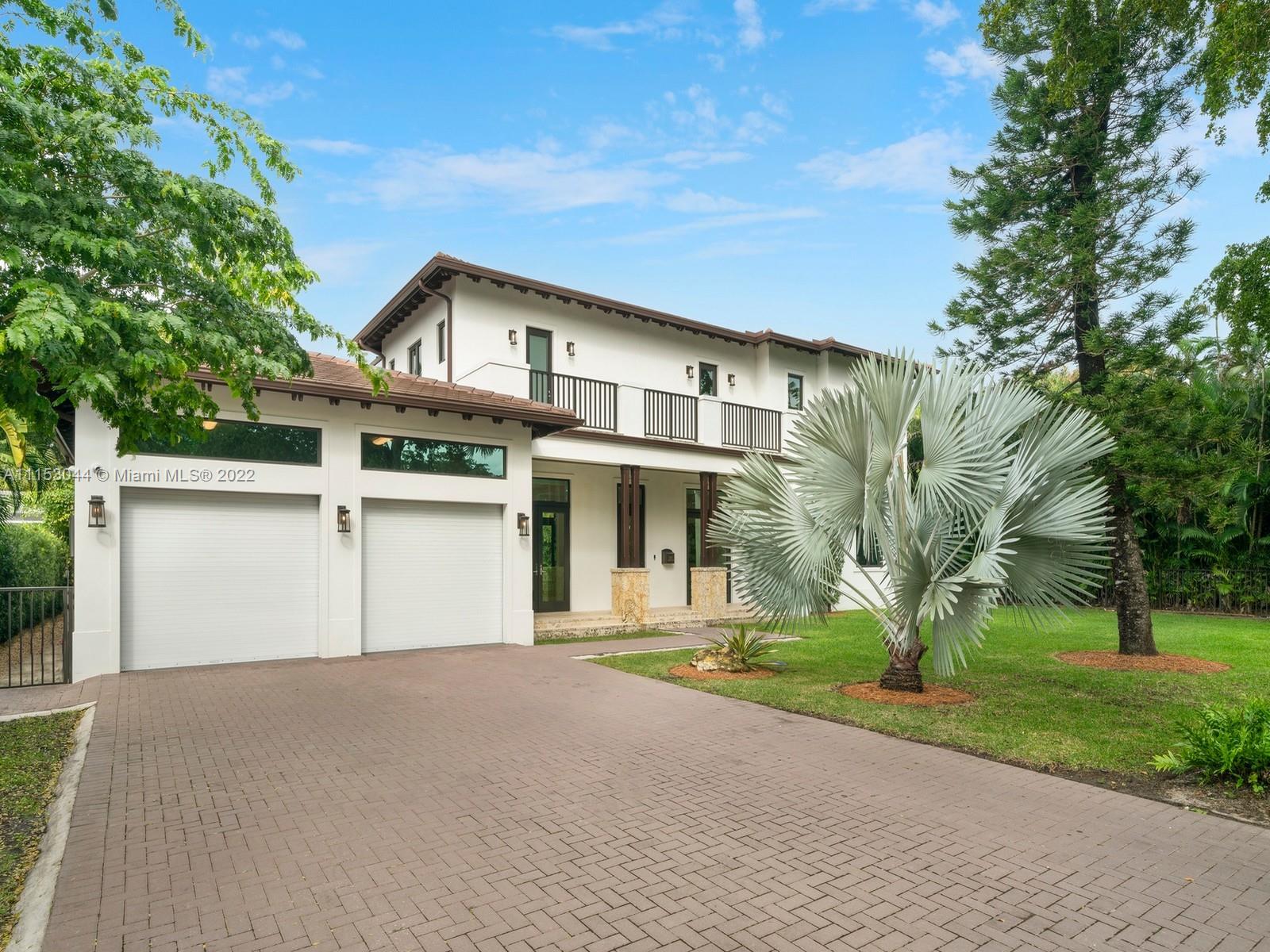 Gorgeous two-story modern estate located in the heart of Coral Gables. This recently built 2020 home offers a spectacular open concept flrplan, featuring exquisite finishes & details including high ceilings & beautiful white marble & wd flrs throughout. Discover expansive formal living & dining rms leading to a custom gourmet kitchen w/stunning cabinetry, Subzero & Wolf appl, gas stove & spacious family rm overlooking the serene outdrs. Lavish Master suite located upstairs, offering balcony & private terrace w/custom designed putting green, WIC & spa-like bath w/ floating tub & shower. Find ample rm to entertain w/ large covered terraces, summer kitchen, & glowing pool w/ deck jets. Additional Features: imp windows/drs, all bedrms are en-suite, laundry rm, 2-car gar with space for lifts.