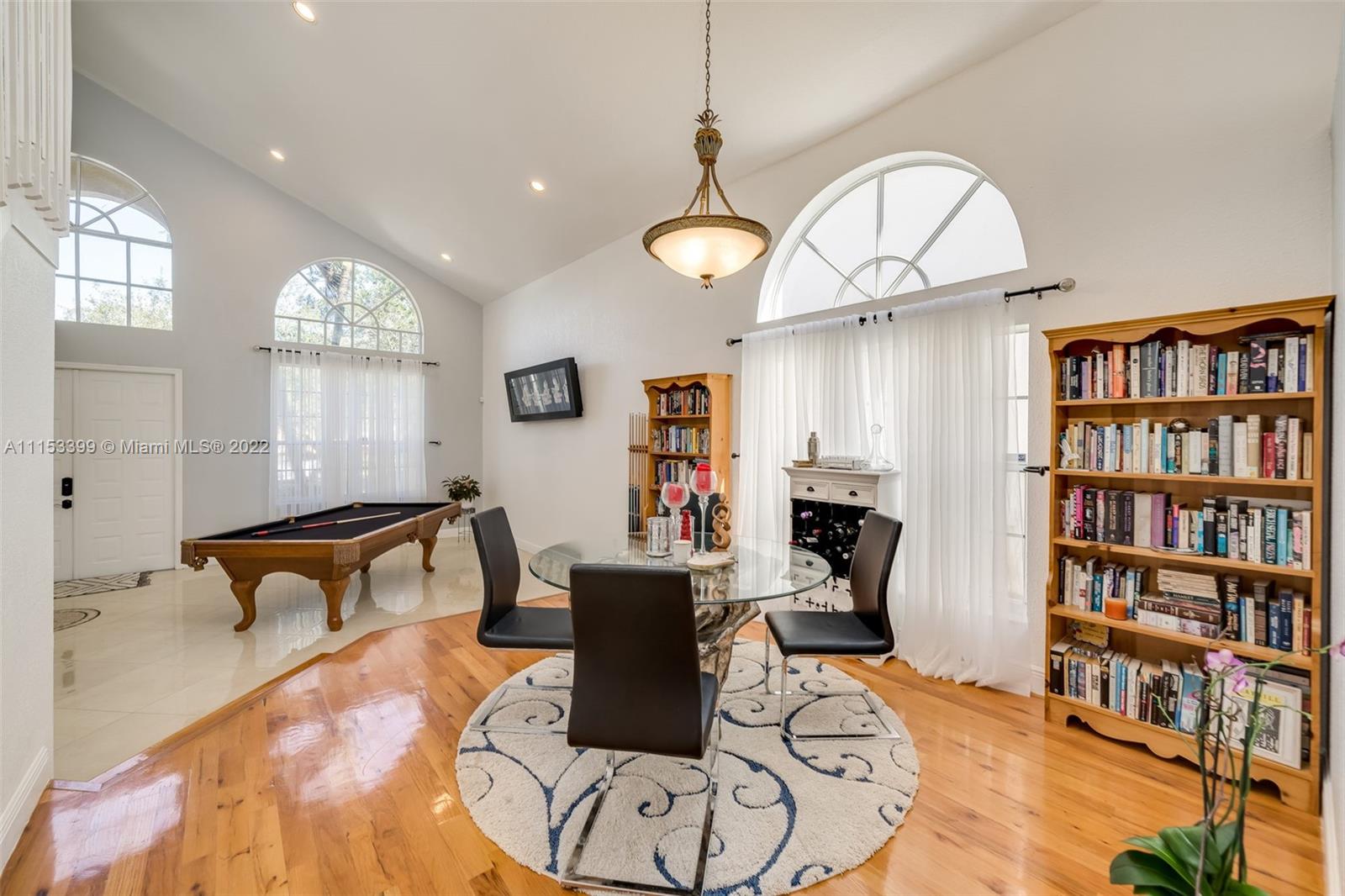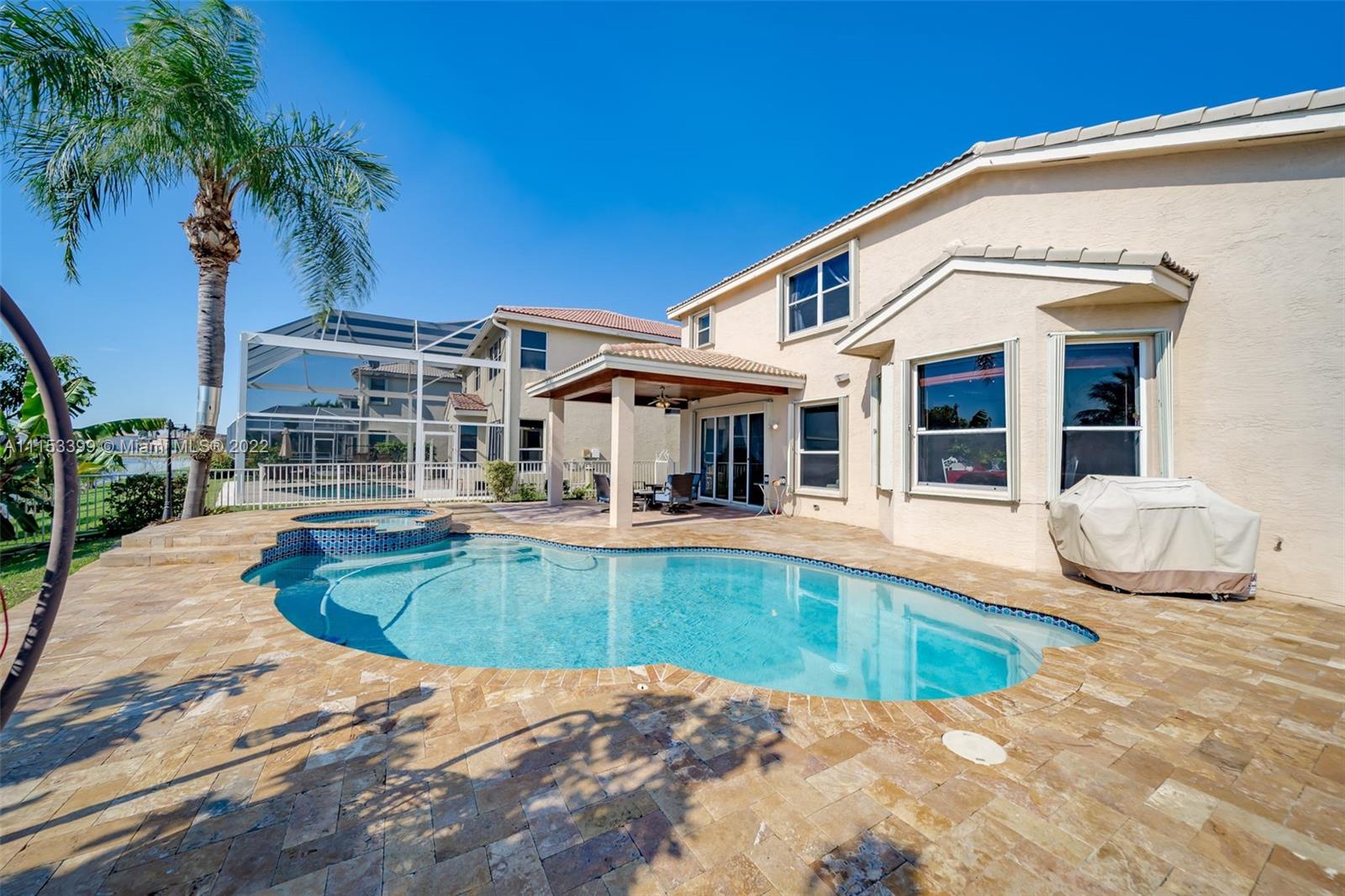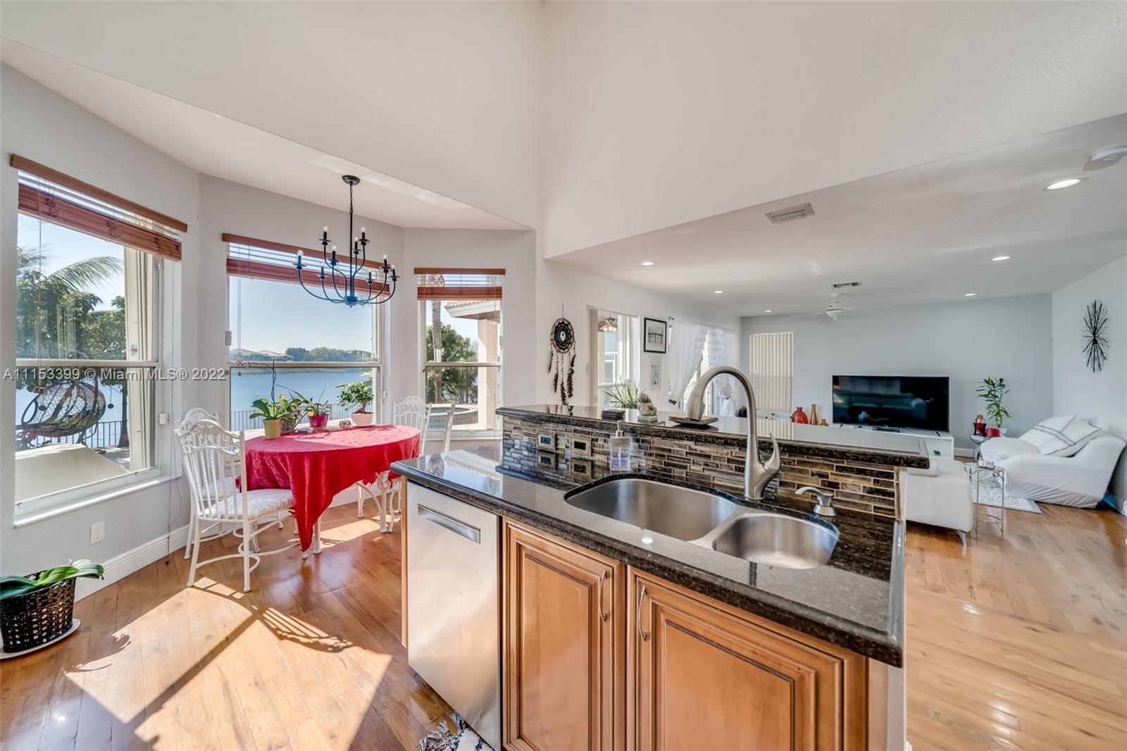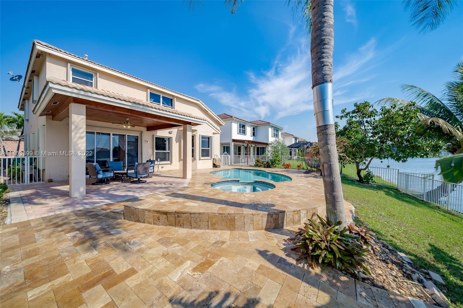 A TRUE GEM AWAITS YOU! This beautiful home is everything you've been looking for. From the moment you walk in you are mesmerized by the volume ceilings, open space, solid wood flooring and breath taking panoramic views of the lake. The Master Suite is massive with a sitting area and a "True" His & Hers Master Bathroom. Enjoy the sunrise and sunsets from your backyard or soak the sun in your salt water/ Heated pool with a spillover spa. Other features include: Natural Lighting, Upgraded Kitchen, SS Appliances, Walk In closets, Upgraded Bathrooms, Garden Tub, Jack & Jill Bedrooms, Downstairs bedroom for guests, teens or in Laws, Full size laundry room with sink, LOW HOA fees, Paved driveway, 2 Car Garage, Complete Accordion shutters, Fruit Trees, Gated Community & Community Amenities.