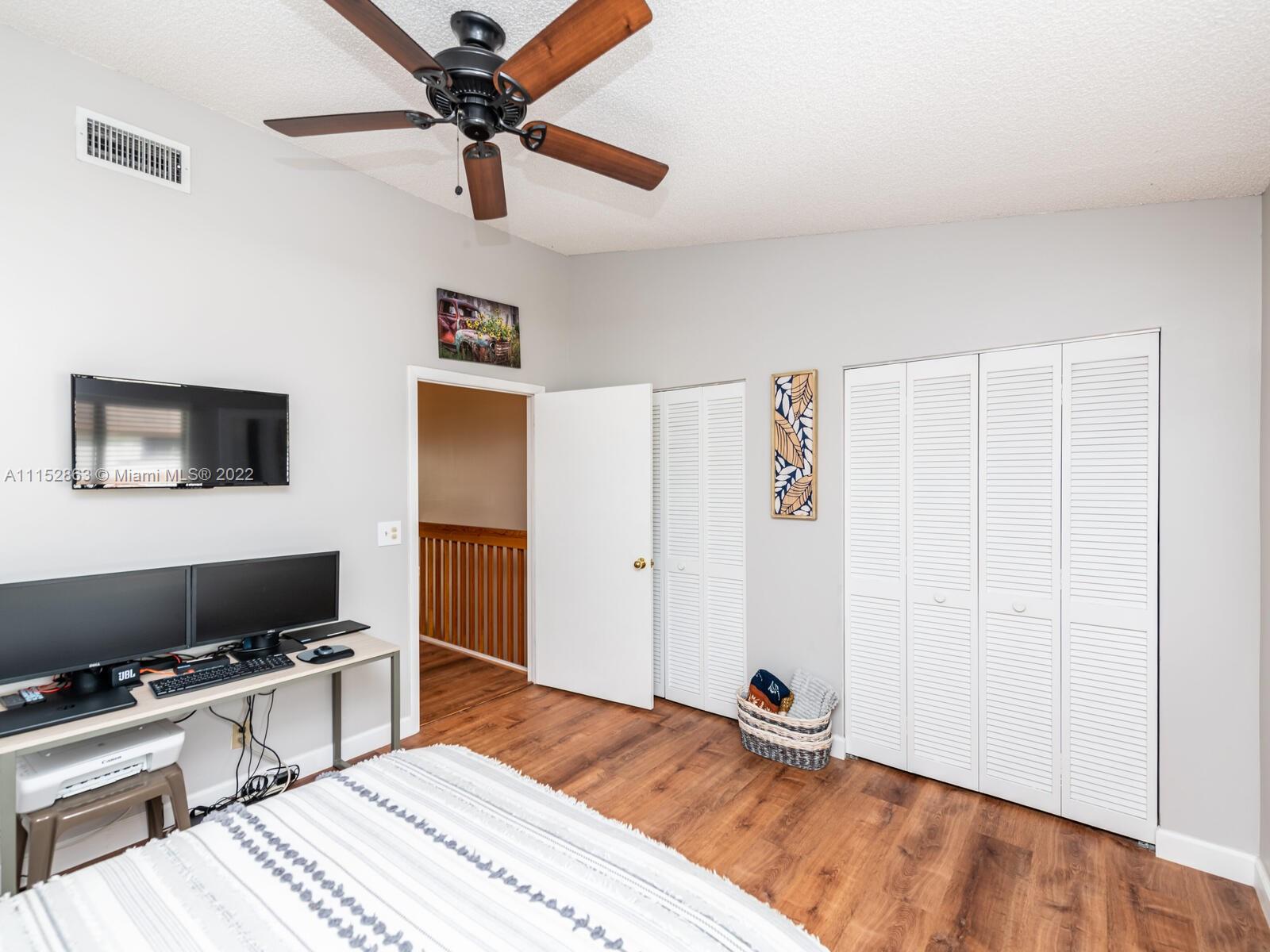Well maintained Townhome in beautiful Davie, FL. This is a CORNER unit with plenty of green space views of courtyard and pool. It is 2 BR 2 1/2 baths, with a den. The unit has Hurricane Impact windows throughout the home with large sliding doors leading to patio and in Master Bedroom. Hardwood floors upstairs and living/dining room area and tile in foyer and kitchen. Upgraded kitchen and bath, granite countertops, full washer and dryer. The appliances and HVAC units are less than 5 years old. Prime location to plenty of shopping, schools, universities, major highways, hospitals and more. This is a MUST SEE and a very comfortable space.
