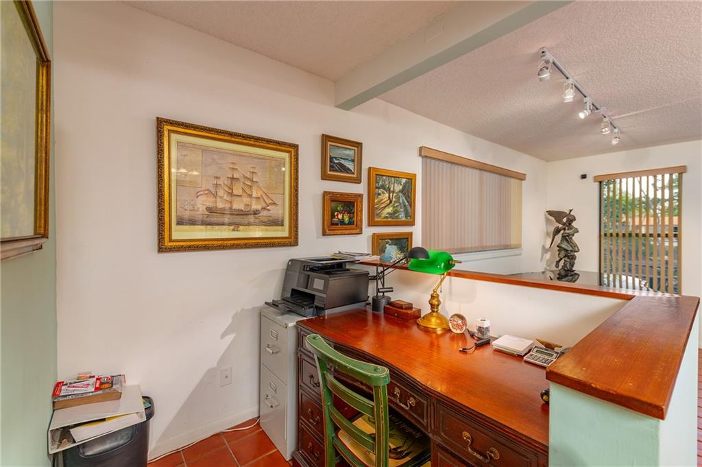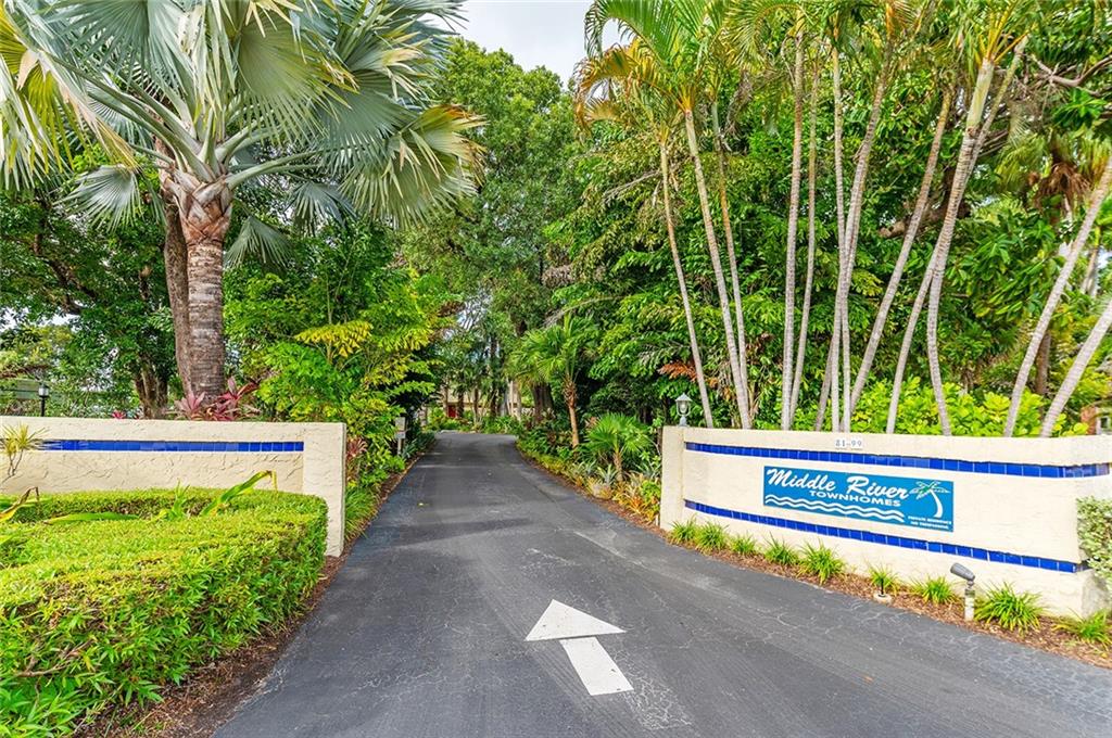 Enter this wonderful oasis of MIDDLE RIVER TOWNHOMES you will be greeted by lush landscaping and a unique serene feel. Nestled in a private corner you will find your new home. 1790 ft ², SOARING CEILINGS, w/ UNLIMITED potential. The wall space is an art lovers paradise. 2 Bedrooms/2 full baths/powder room. 3 private work from home spaces. A large kitchen with a breakfast/crafts/ coffee nook. W/D in a private utility room. Your dining area can easily fit a table for 8. A single step down into your sunken living room with double height ceilings. You'll LOVE both inside and outside of your home with a private patio, a balcony and a massive back deck with one VERY special water view with a backdrop of beautiful mangroves. An in ground community pool shared by only 10 other lovely neighbors.