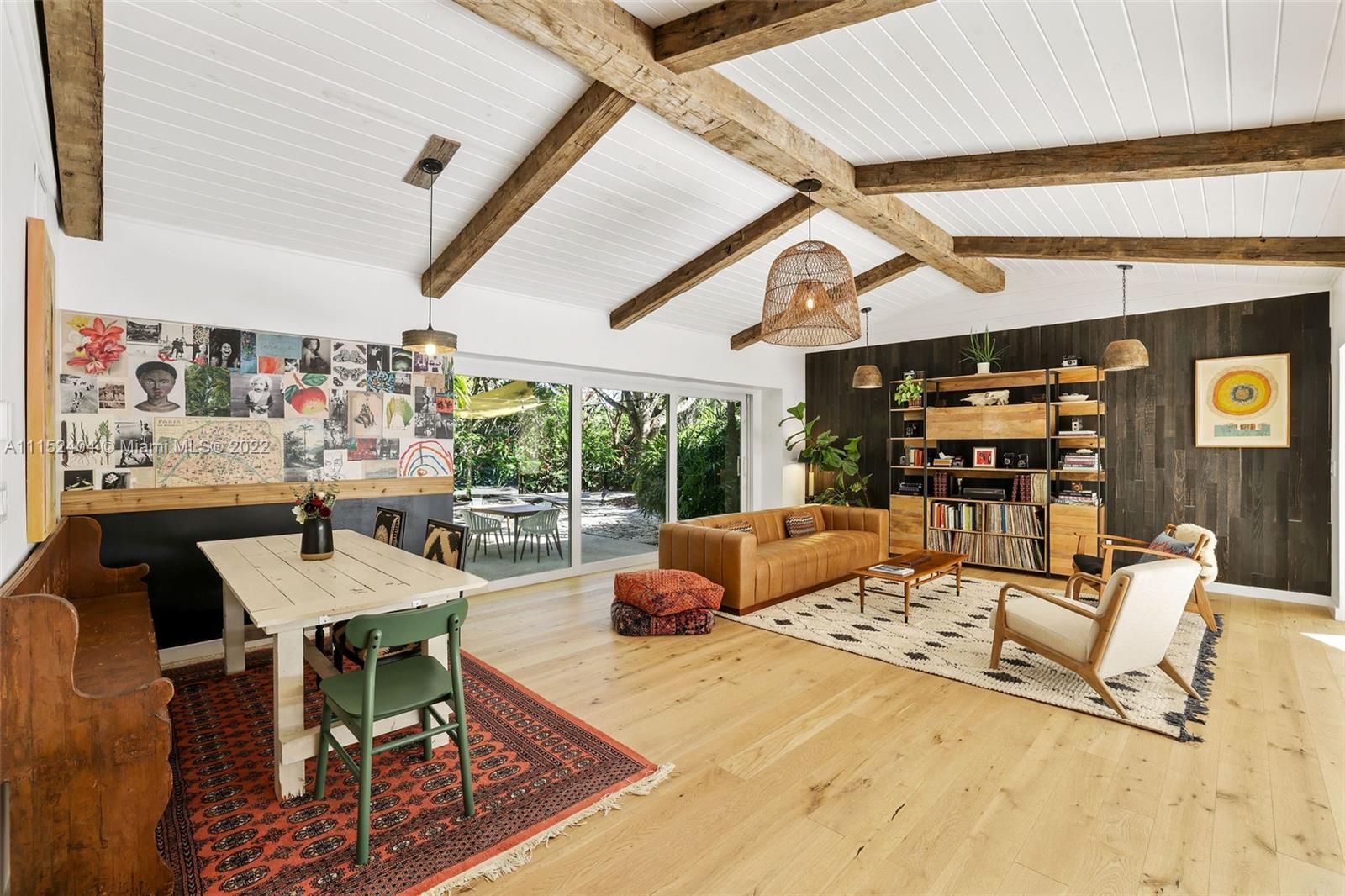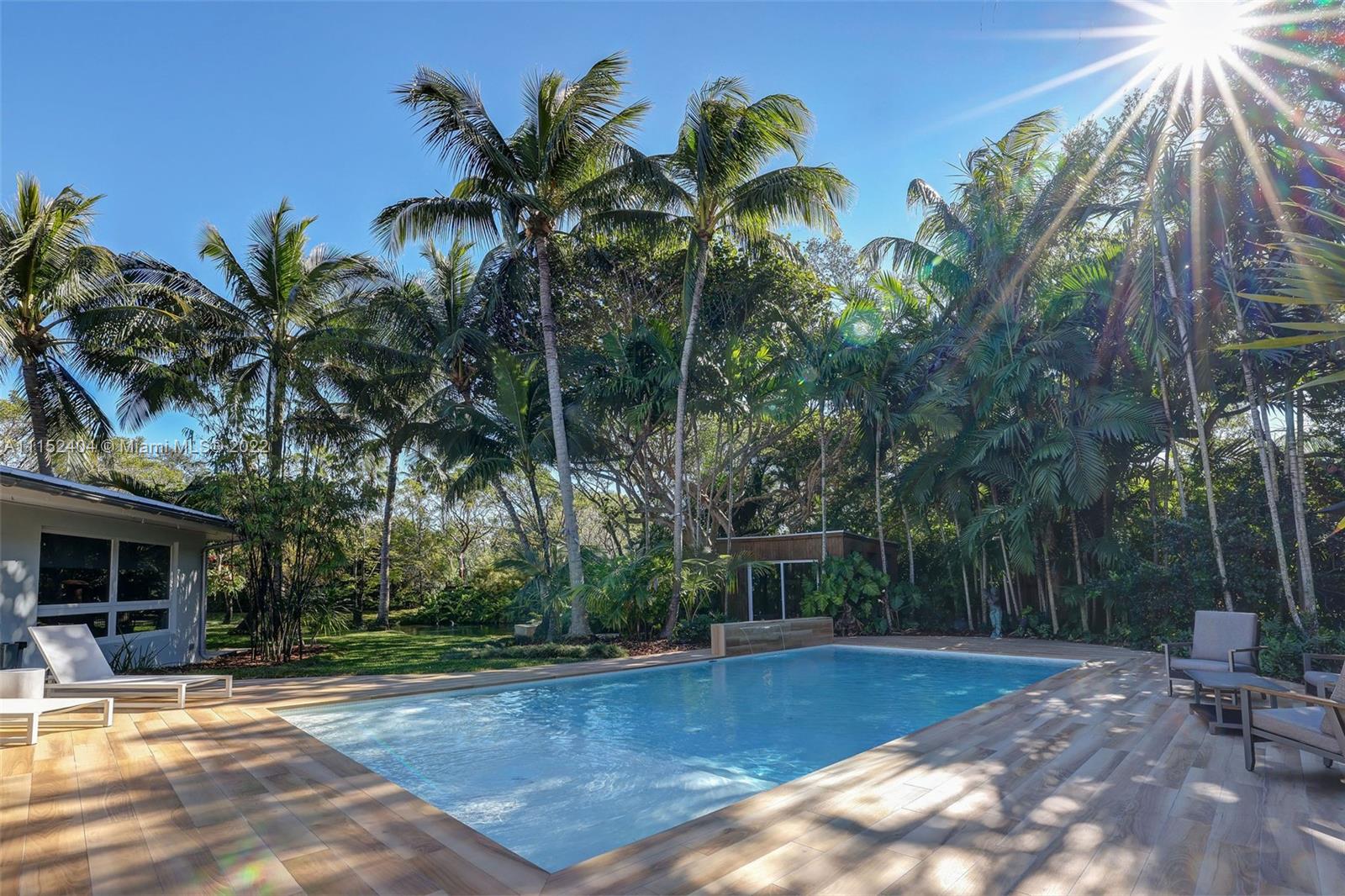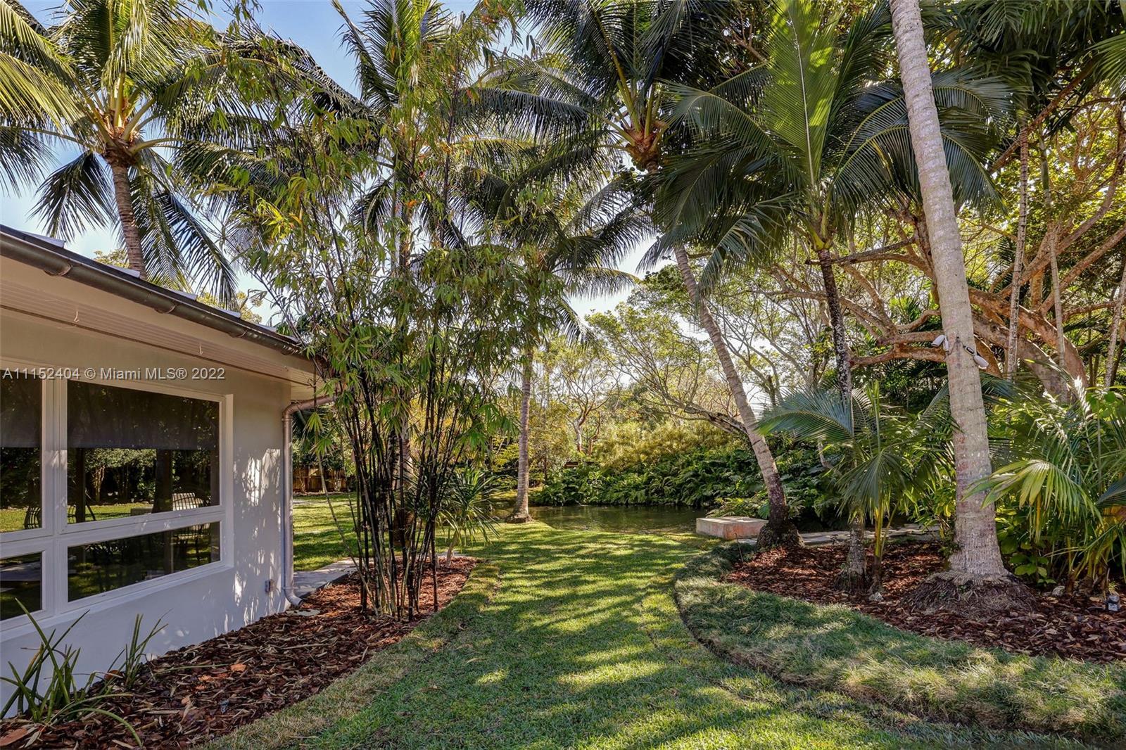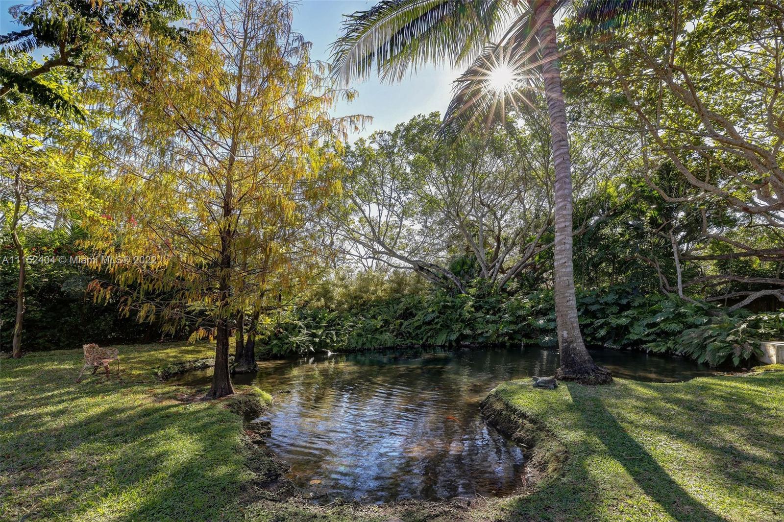 Nestled on a lush 3/4 acre corner lot in North Pinecrest, this home is a modern/rustic dream. Canopied by gorgeous Sea Grape Trees and embodied with a peaceful Koi Fish pond that welcomes you to meditate. Designed with integrity and aesthetic in mind, each room feels warm and inviting. Enveloped in vintage, handmade and high-end fixtures throughout that provide a natural yet unique look. This property's unique exterior provides natural beauty and is easily enjoyed throughout the entire house with stunning views from almost every room. A private oasis carefully customized to be one of a kind. Captivating for nature lovers and those who appreciate attention to detail. 3,996 sf living area as per survey.