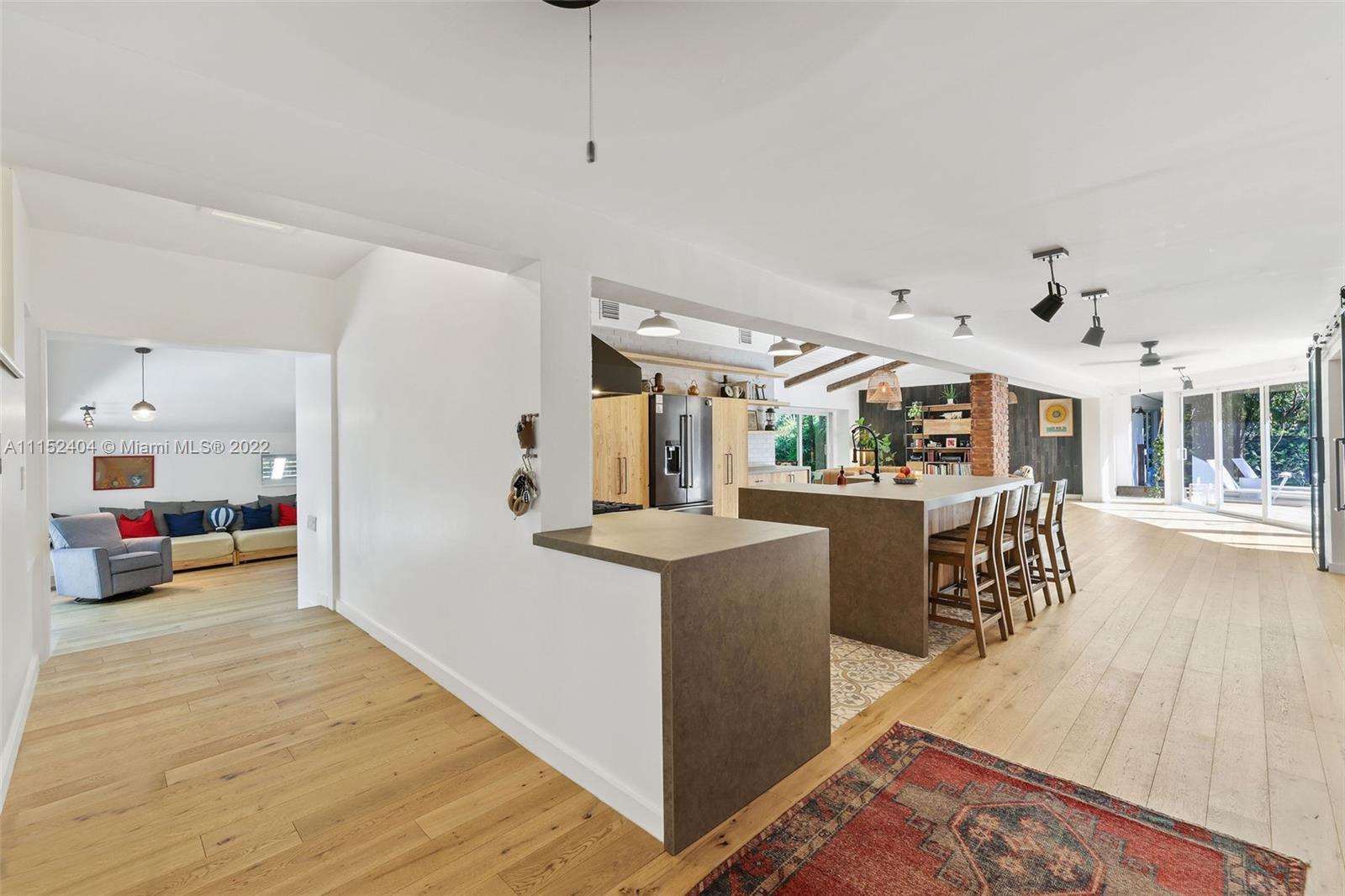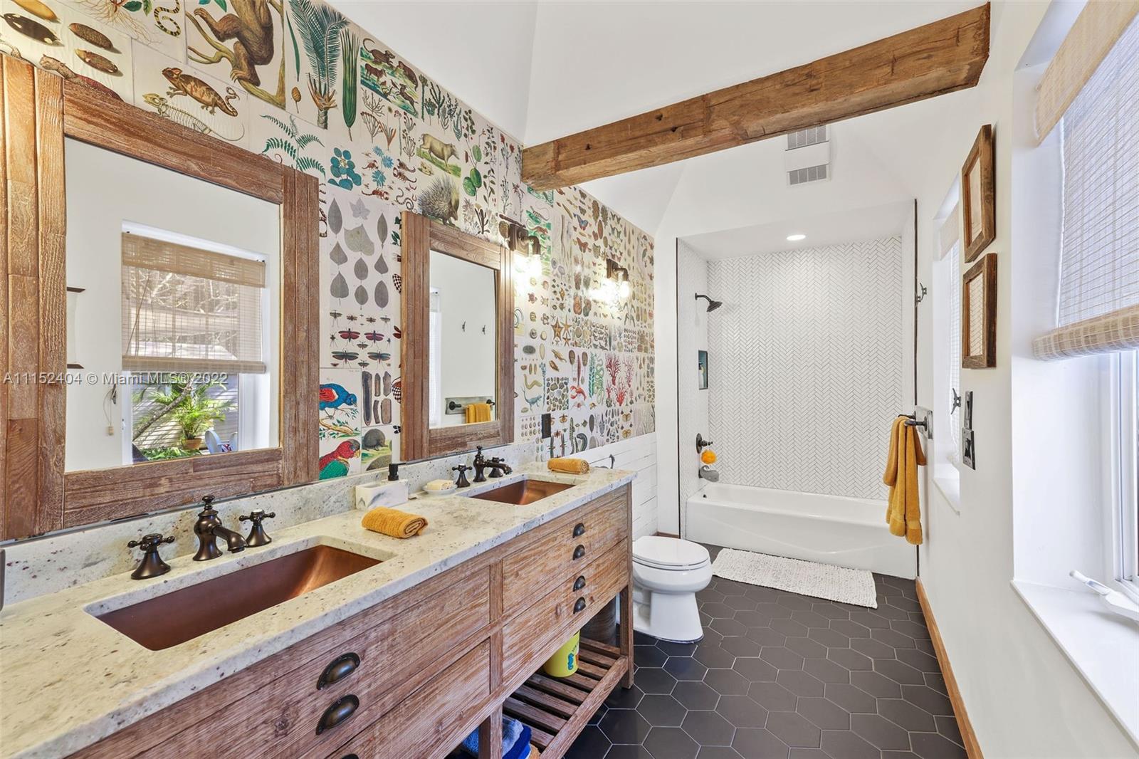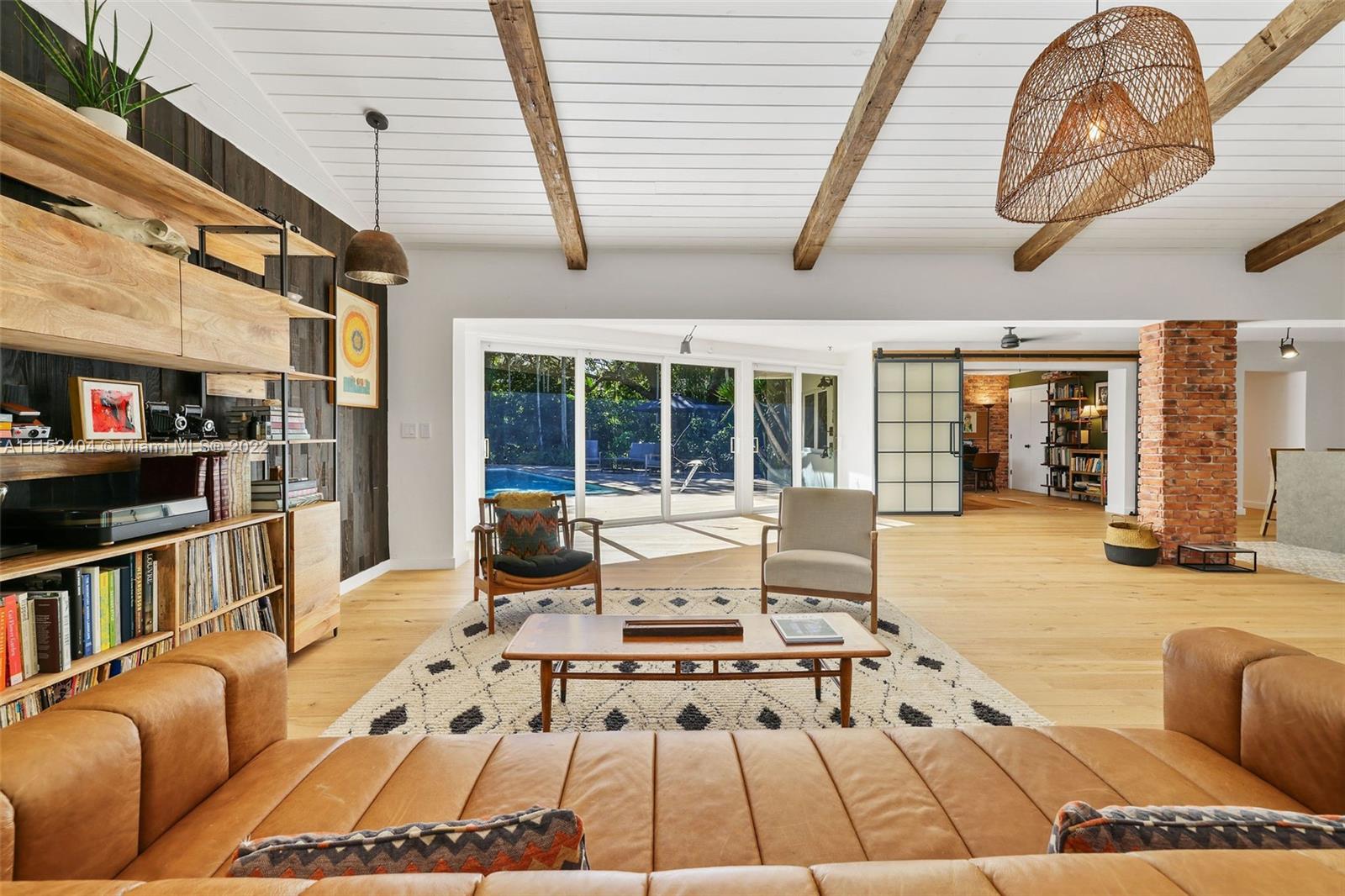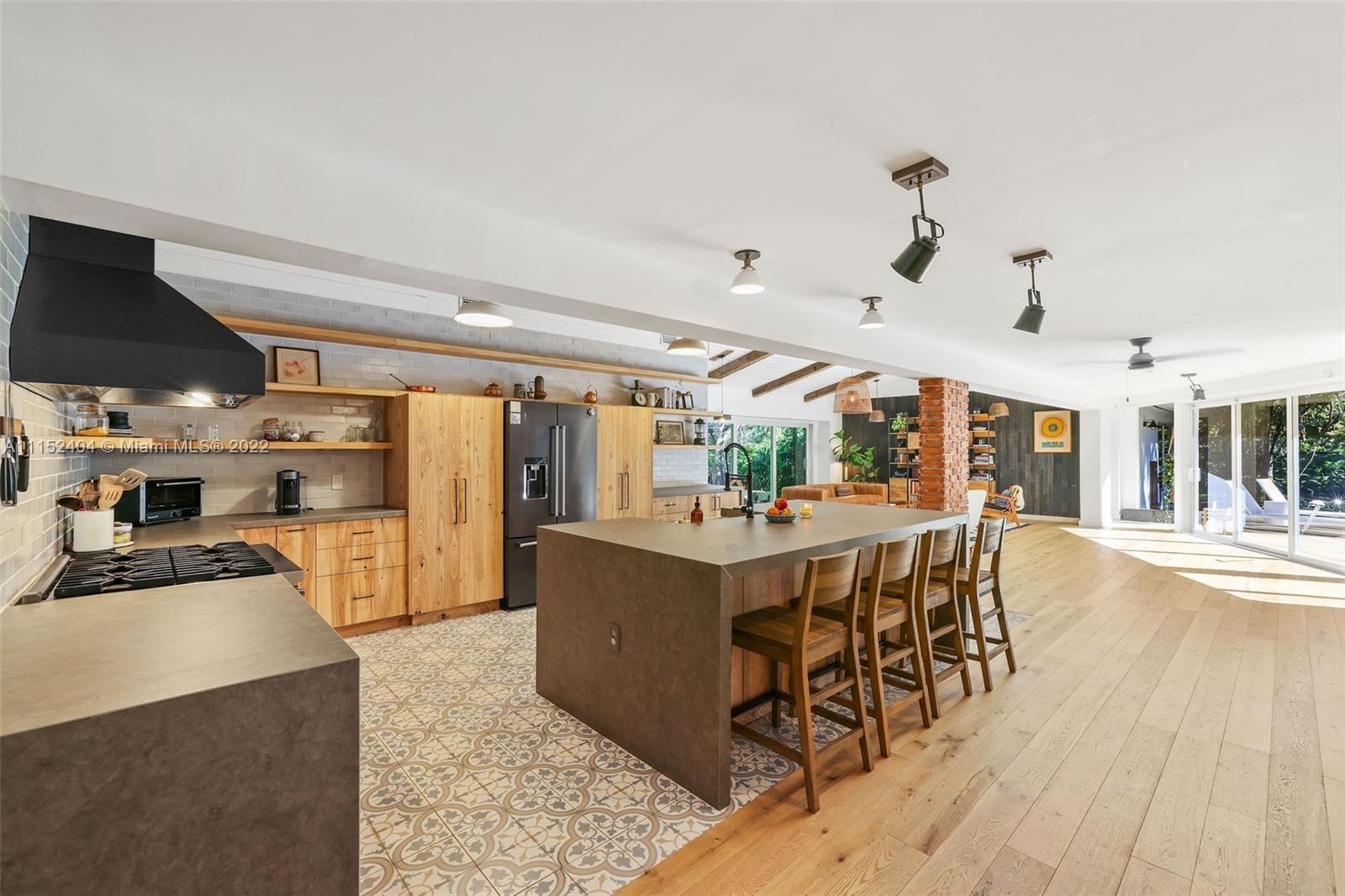 Nestled on a lush 3/4 acre corner lot in North Pinecrest, this home is a modern/rustic dream. Canopied by gorgeous Sea Grape Trees and embodied with a peaceful Koi Fish pond that welcomes you to meditate. Designed with integrity and aesthetic in mind, each room feels warm and inviting. Enveloped in vintage, handmade and high-end fixtures throughout that provide a natural yet unique look. This property's unique exterior provides natural beauty and is easily enjoyed throughout the entire house with stunning views from almost every room. A private oasis carefully customized to be one of a kind. Captivating for nature lovers and those who appreciate attention to detail. 3,996 sf living area as per survey.