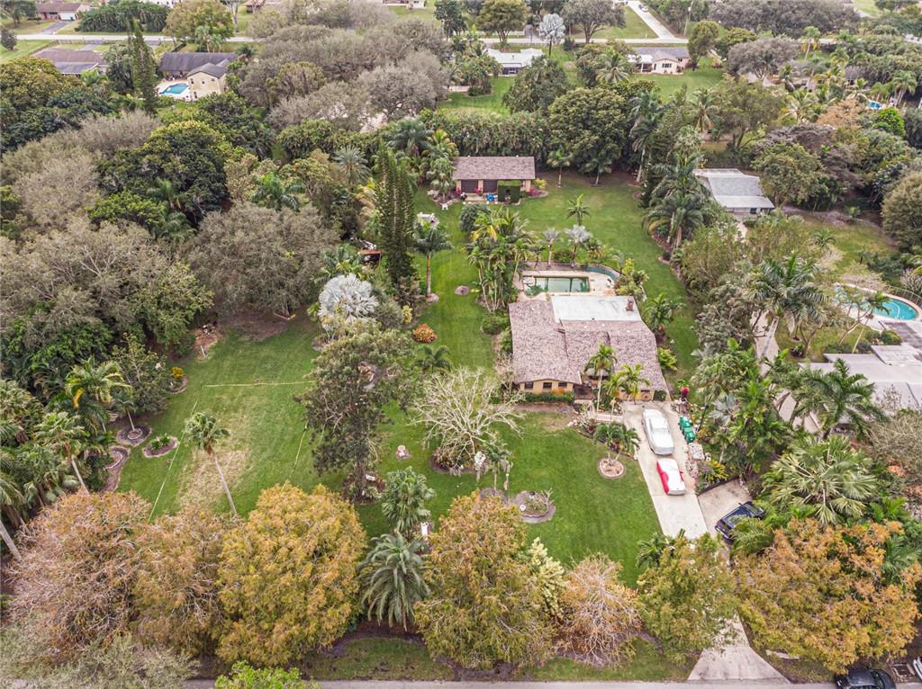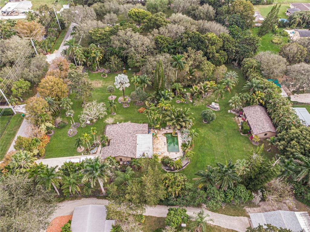 A RARE FIND IN WEST DAVIE. Over 1.7 acre, 3 bedroom 2 bath pool home. A beautiful red brick fireplace. You have new kitchen cabinets and counter tops, ample cabinet space with new appliances. Kitchen opens to the huge family room. Impact windows in the house and oversized 2 car detached garage which is 1178 sqft. You have a 10 inch thick apron slab in front of the garage. The property has two separate folio numbers,504015010262. One for the home and one for the vacant adjacent land. It has a beautiful pond that has a walk over bridge. Many exotic trees, plants and fruit trees. This house has so many possibilities. It need some TLC. The roof is four years new. The house is all tiled inside, completely fenced in and very private. Jump on this property. IT WON’T LAST LONG.