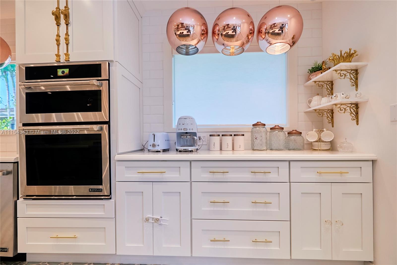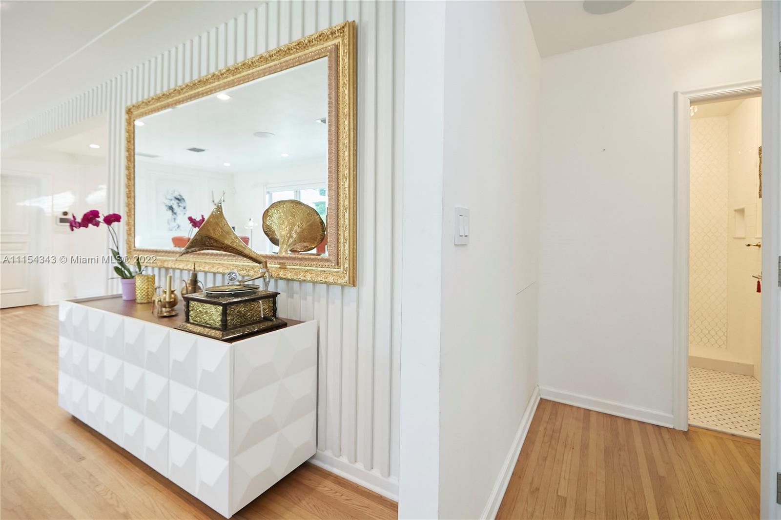 The Deco Baroque House, a unique renovated mid-century modern designer home with deco baroque accents, spacious master suite with large walking closet; spa shower and imperial-shaped tub with handmade mosaic floors. Two guest bedrooms, 3 1/2 rococo-style baths, elegant open living room, formal dining, spectacular gourmet kitchen with high-end appliances and media room. Luxury hardwood floors throughout; wired audio/theater system; wall fences, customized gates & electric car charger. You’ll be proud to call this Miami Shores charmer your home... and be around great schools, close to restaurants, shops and golf course. This property has an unspoiled authenticity & royal architectural value perfect for discerning art & design aficionados.