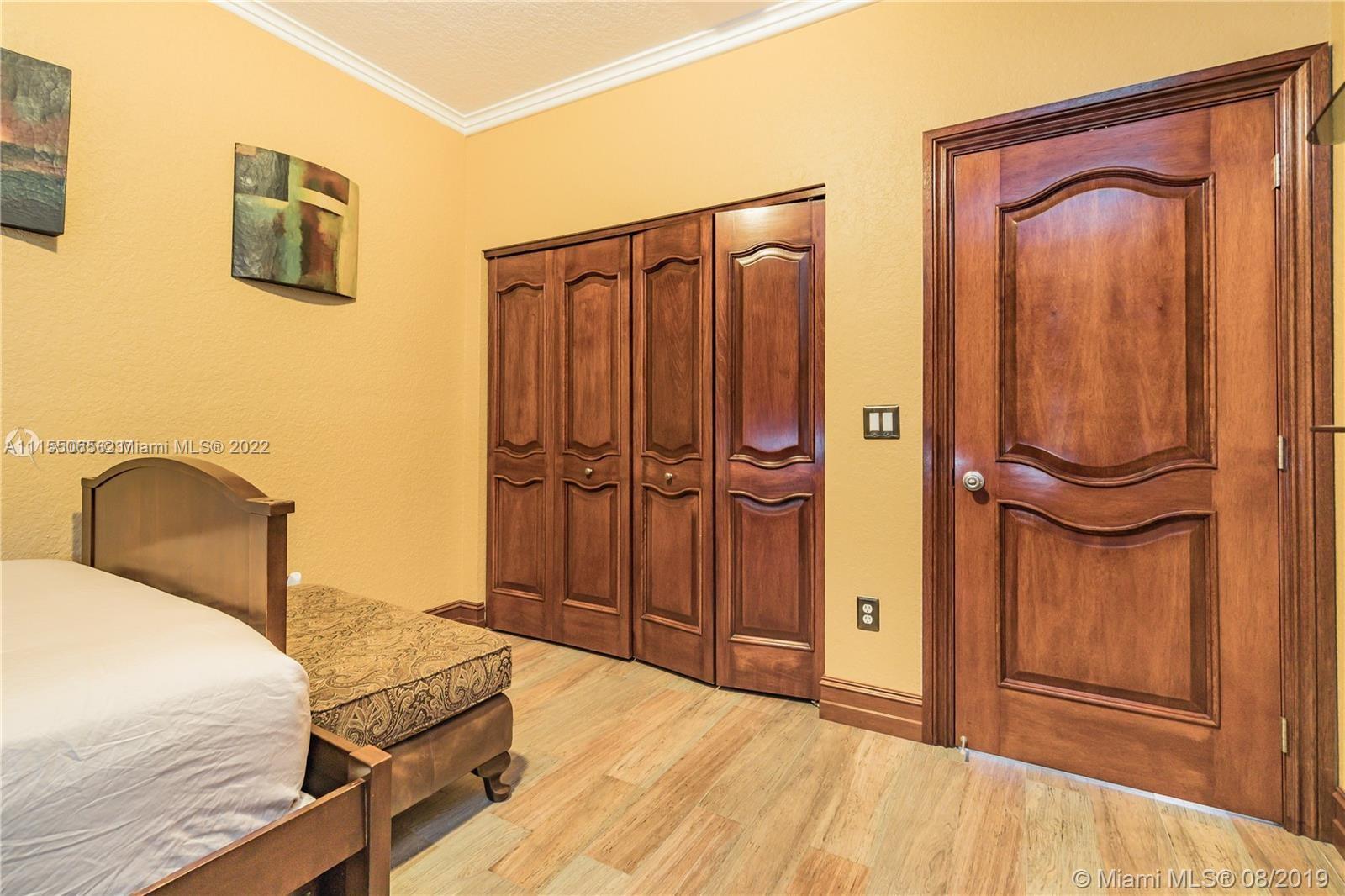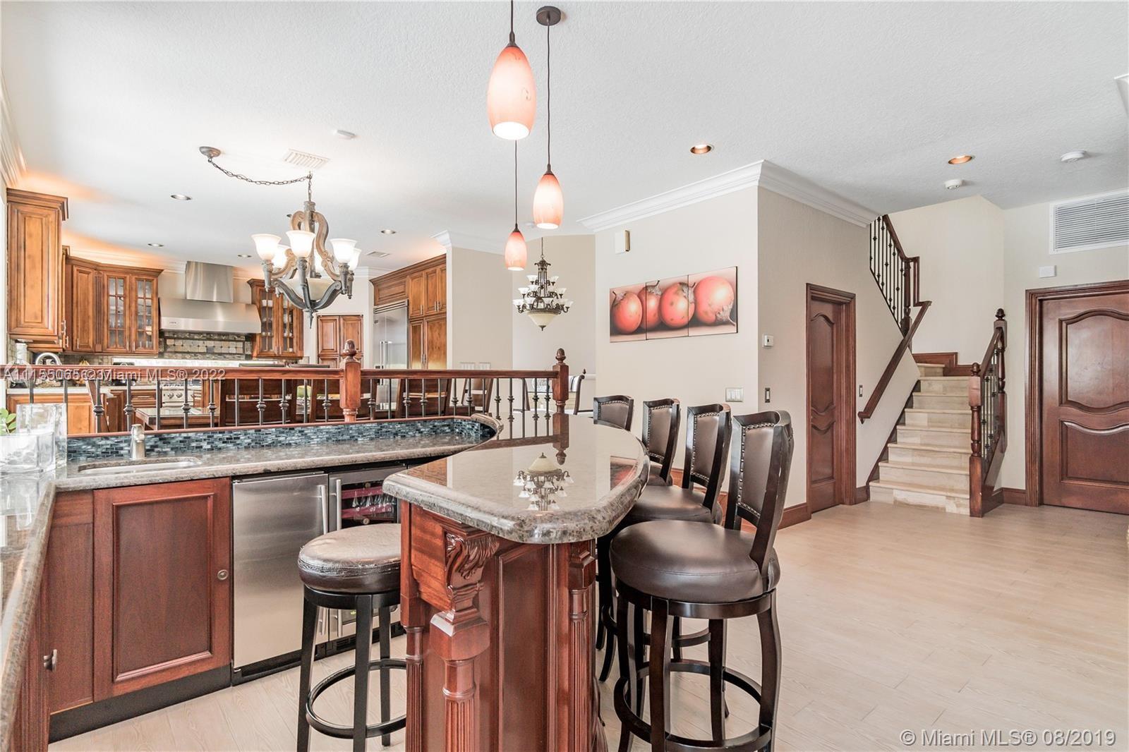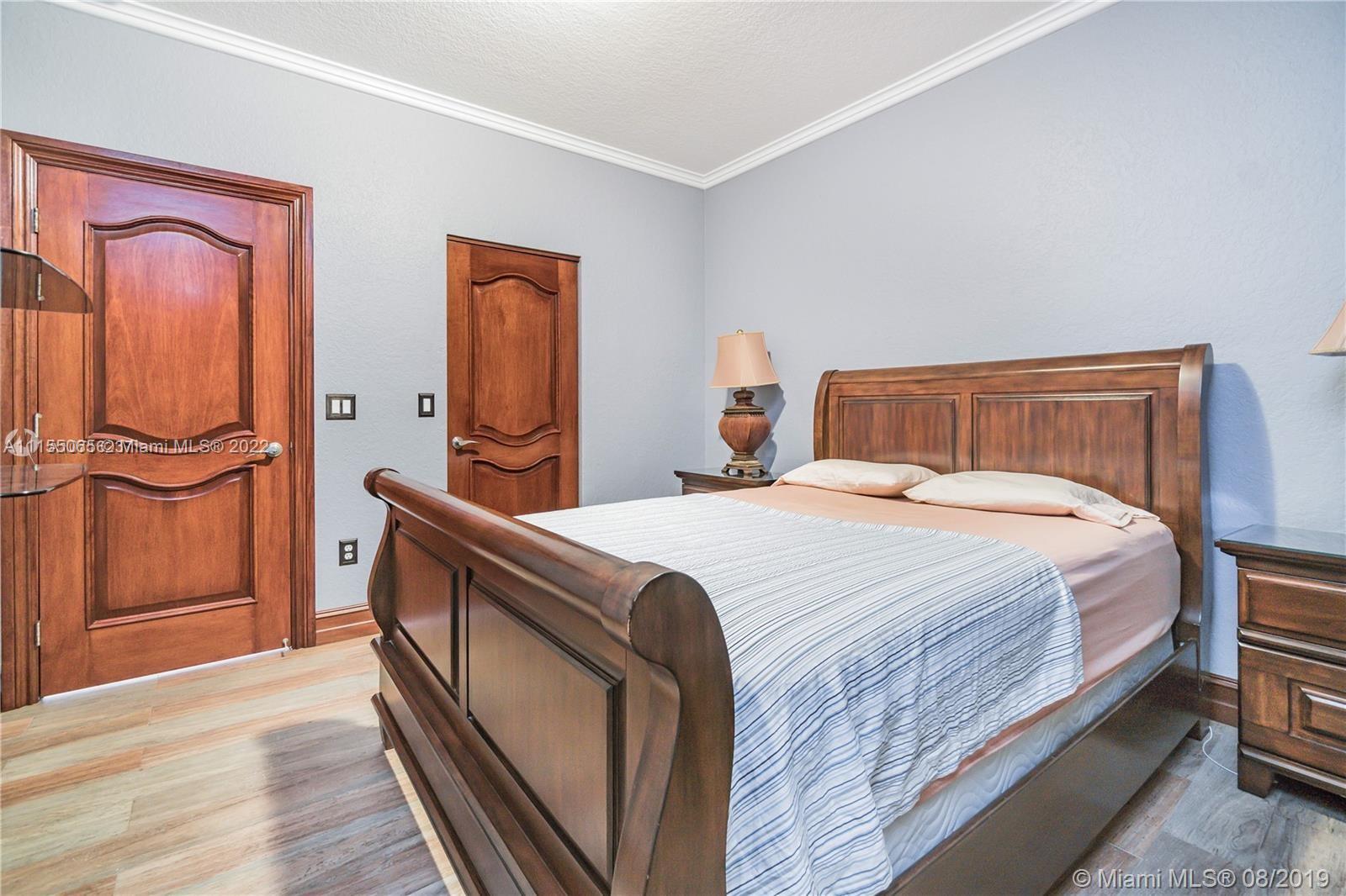Desirable and well maintained home in Sunset Lakes. This 2 story home features 6 beds, 5 baths, 3 car garage in addition to a great Pool area and lush landscaping. Gated community. No neighbors on the back. The patio is great for entertaining, has a BBQ area. Enter to an impressive volume ceilings, marble flooring on the first floor, quality kitchen w/wood cabinetry and fine appliances including a Gas stove. One bedroom on the first floor w/full bath across. Cabana bathroom completes the great outdoor area. Windows have Hurricane Accordion Shutters. Wet bar in the family room. Double stairs, from living area & from family room. The master suite features an oversized sitting area, walk in closet with built in cabinets & large master bedroom with shower and tub. Porcelain flooring upstairs.