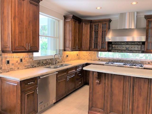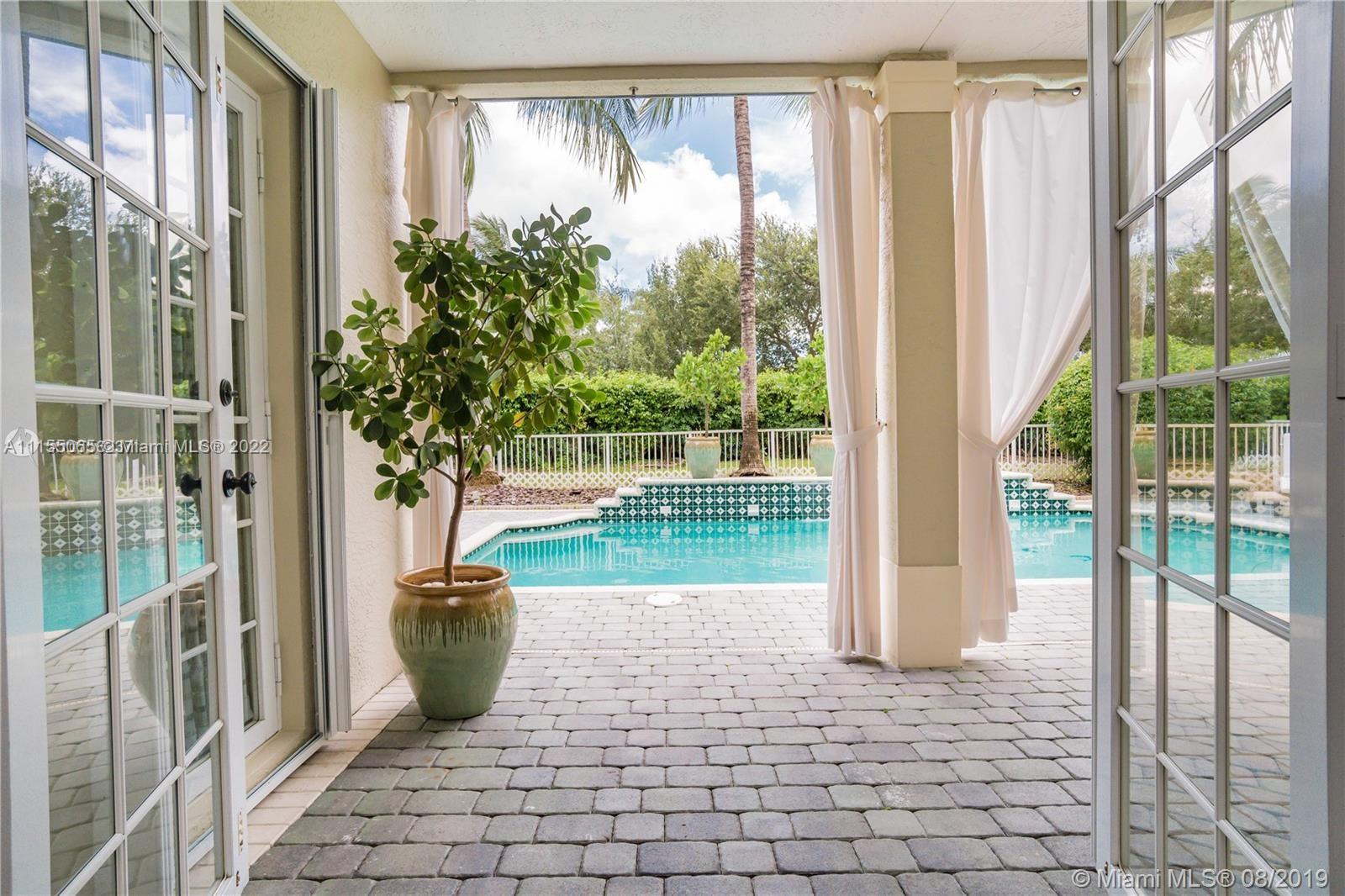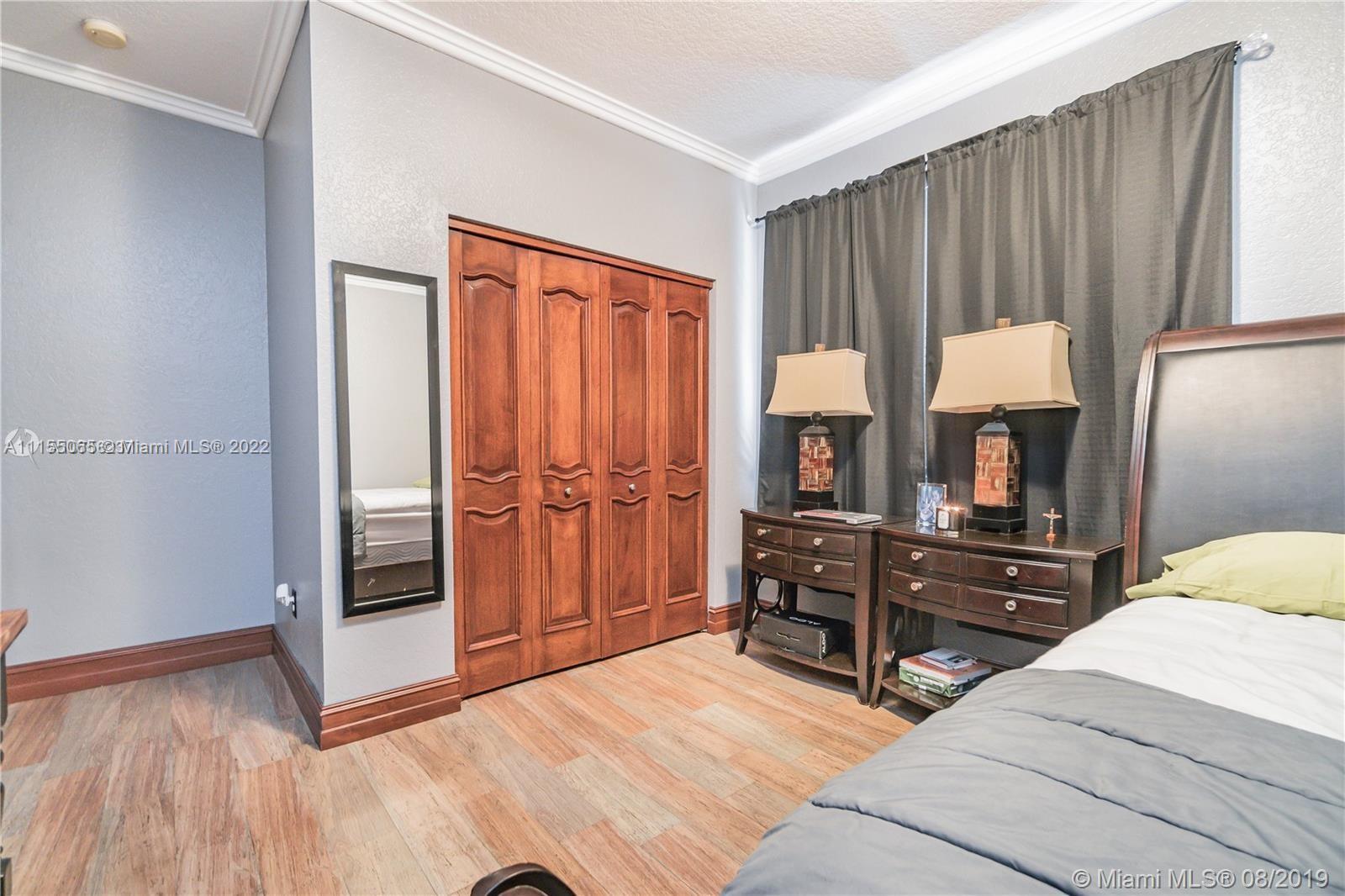 Desirable and well maintained home in Sunset Lakes. This 2 story home features 6 beds, 5 baths, 3 car garage in addition to a great Pool area and lush landscaping. Gated community. No neighbors on the back. The patio is great for entertaining, has a BBQ area. Enter to an impressive volume ceilings, marble flooring on the first floor, quality kitchen w/wood cabinetry and fine appliances including a Gas stove. One bedroom on the first floor w/full bath across. Cabana bathroom completes the great outdoor area. Windows have Hurricane Accordion Shutters. Wet bar in the family room. Double stairs, from living area & from family room. The master suite features an oversized sitting area, walk in closet with built in cabinets & large master bedroom with shower and tub. Porcelain flooring upstairs.