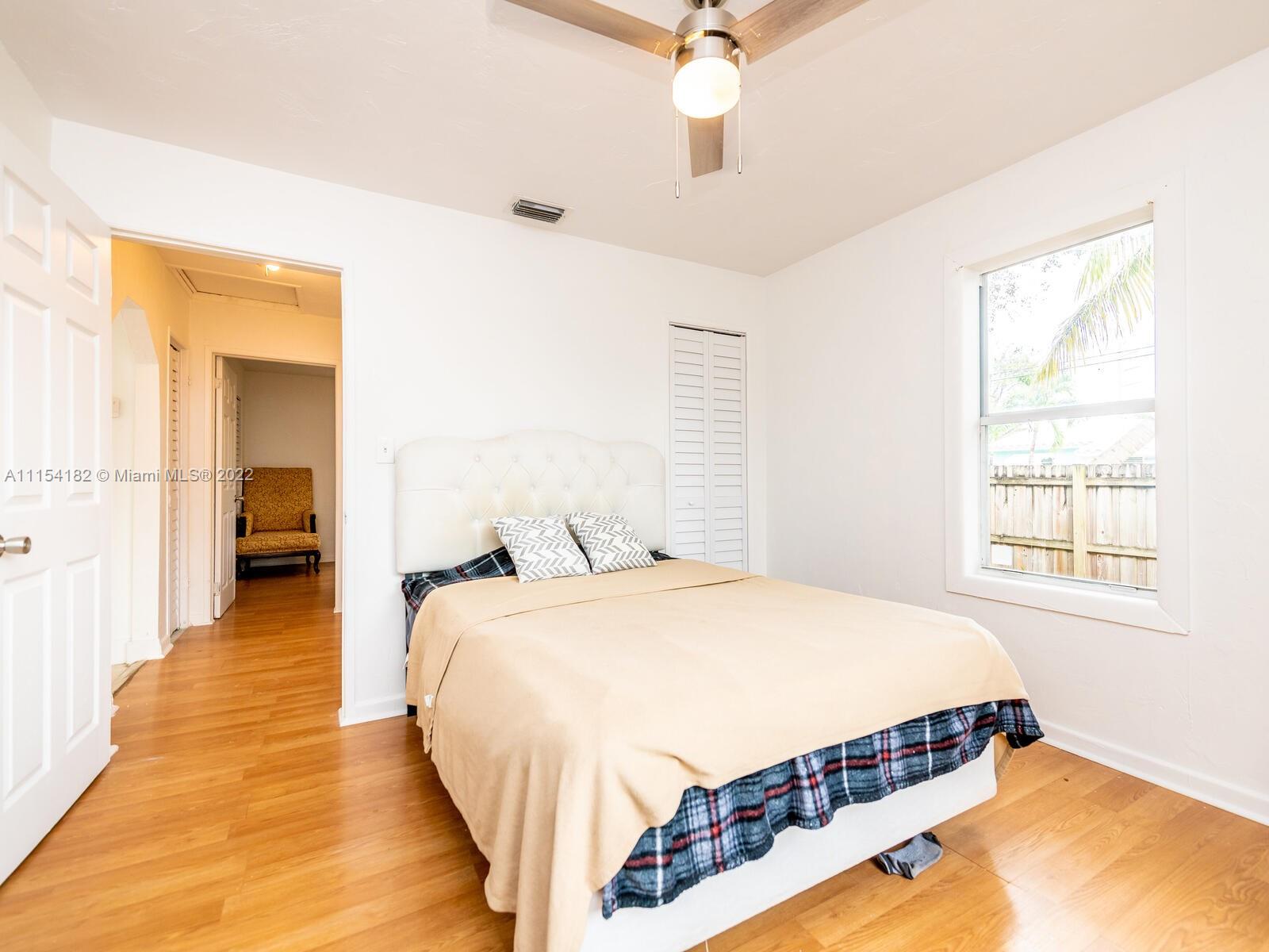 AMAZING CORNER LOT SINGLE FAMILY HOME LOCATED IN HOLLYWOOD, minutes away from Hollywood beach. This property features 2 bedrooms 1 bathroom, laundry & 2 bonus rooms that are BIG enough to set one up as a home office, or a dining room, the bonus room can be set up as a playroom or a Florida room. Wood kitchen cabinets and an island. Beautiful wood laminate flooring throughout the entire home! New windows were installed in the laundry room and back bonus room. The roof is only 3 years old. You'll love all the landscaping this house has to offer, the variety of palm trees around the yard with wood fences & the best part of the back patio is the MAGNIFICENT PRODUCING HUMONGOUS MANGO TREE. Click on the virtual tour to see the YouTube video walk-thru tour and property website for more info!
