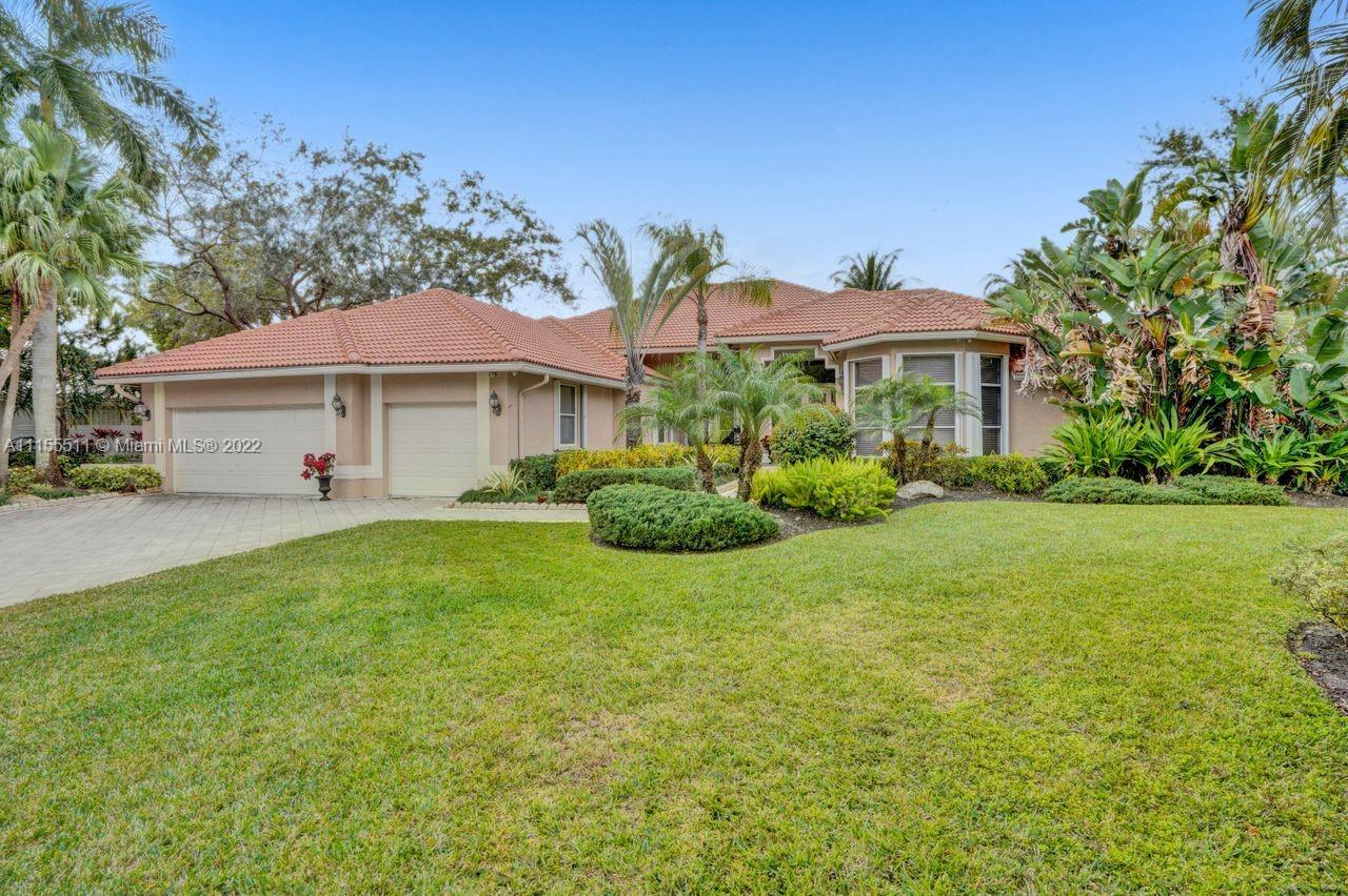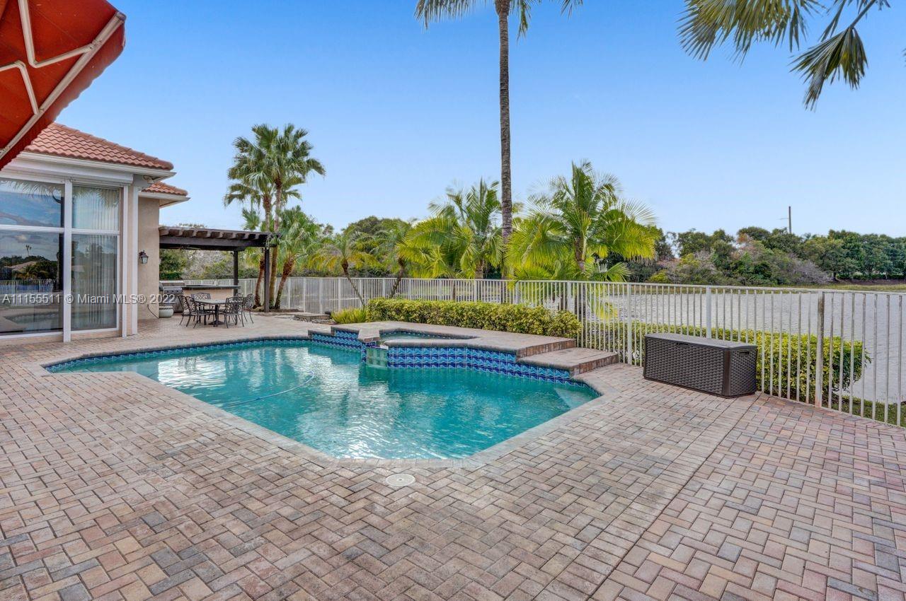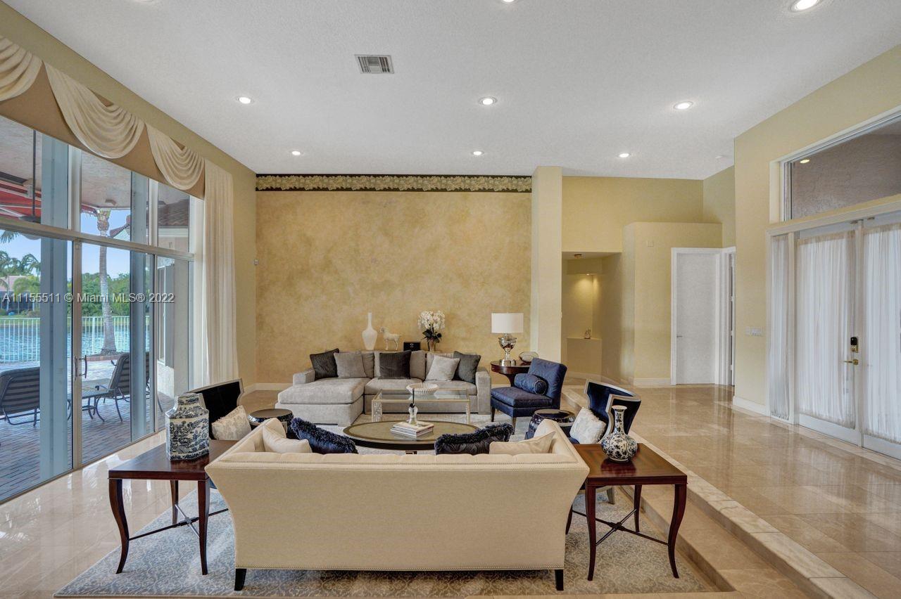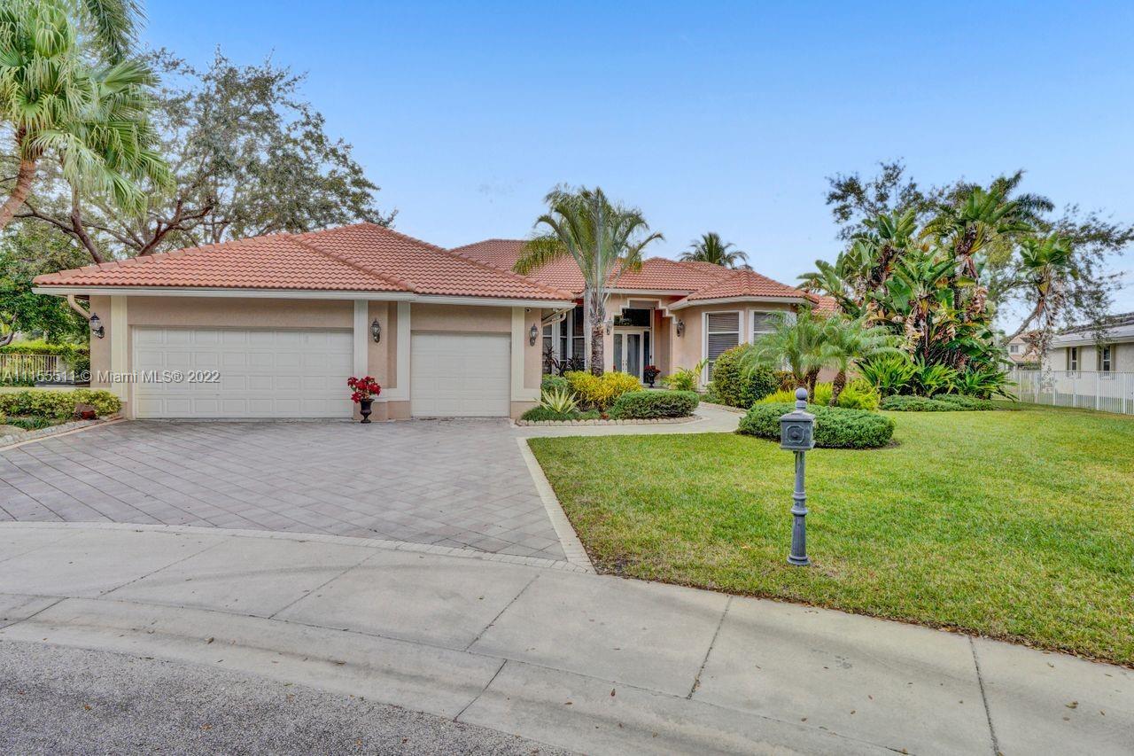 Absolutely gorgeous estate home on a huge 1/2 acre cul de-sac lot in Weston Hills Country club.Home shows great with 5 bedrooms and 5 baths with over 4000 sf living area. Open floor plan with high ceilings and marble flooring in main areas and real hardwood flooring in bedroooms.Nice open kitchen with stainless steel appliances, granite, breakfast area and huge family room. Step down bar area and nice formal area with views of pool and lake. Large master suite w/real wood flooring, tray ceiling and updated master bathroom.Stunning pool and patio area with barbeque and bar area, heated free form pool and jacuzzi with tranquil and long lake views. Oversized pie shaped lot with plenty of room to play and entertain. Home has accordion hurricane shutters, newer AC units and roof from 2009