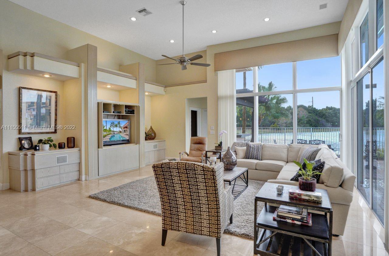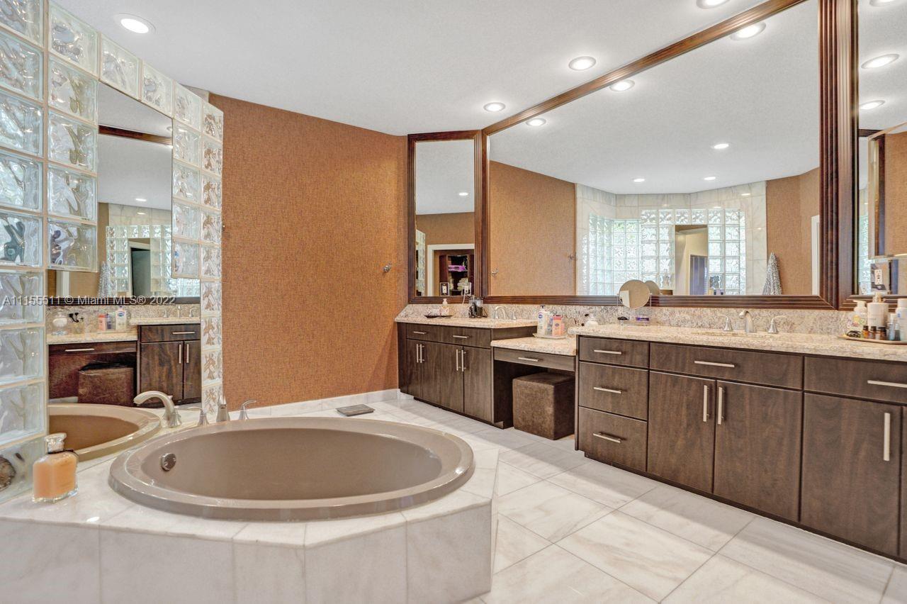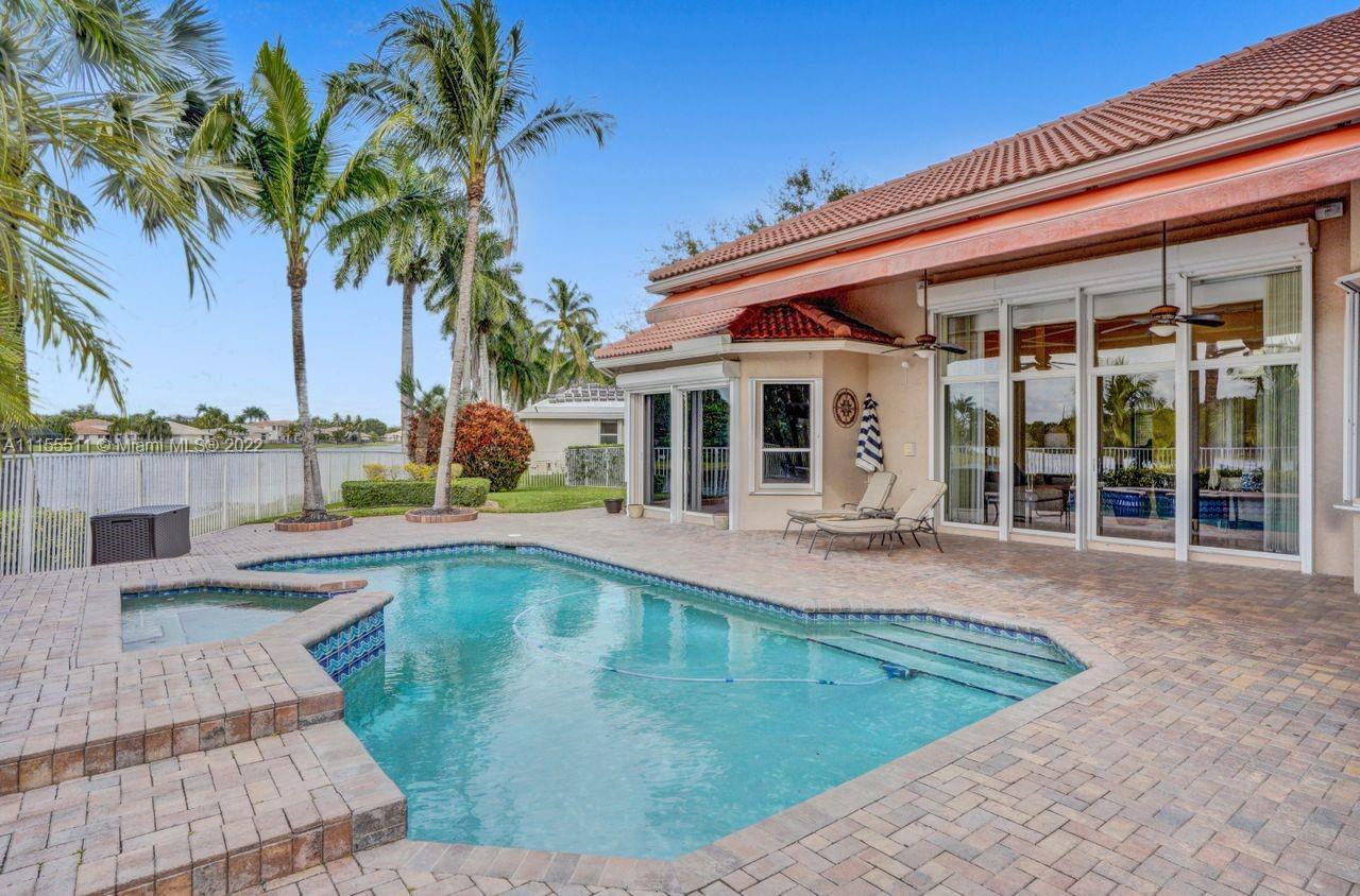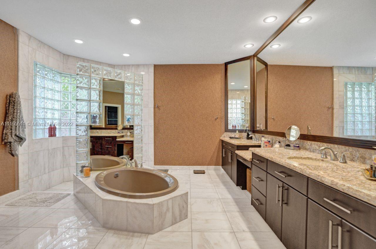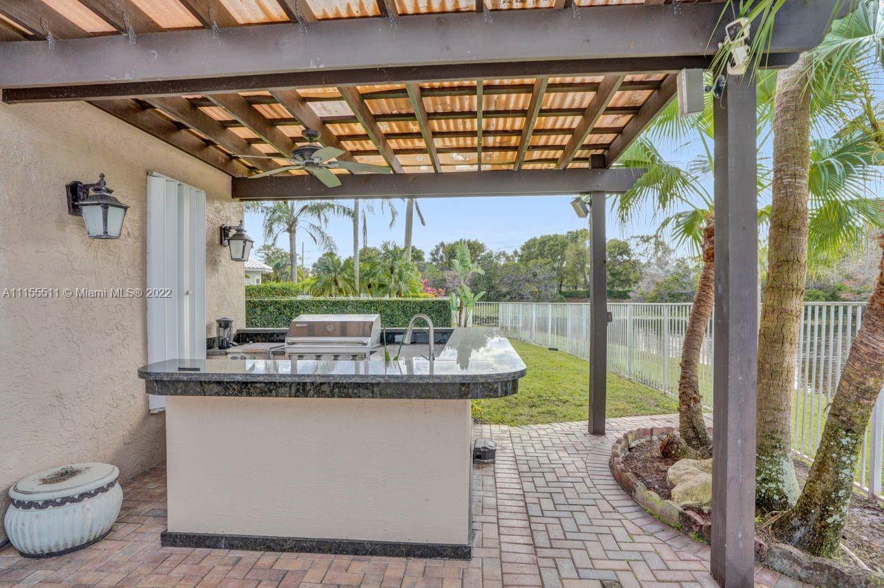 Absolutely gorgeous estate home on a huge 1/2 acre cul de-sac lot in Weston Hills Country club.Home shows great with 5 bedrooms and 5 baths with over 4000 sf living area. Open floor plan with high ceilings and marble flooring in main areas and real hardwood flooring in bedroooms.Nice open kitchen with stainless steel appliances, granite, breakfast area and huge family room. Step down bar area and nice formal area with views of pool and lake. Large master suite w/real wood flooring, tray ceiling and updated master bathroom.Stunning pool and patio area with barbeque and bar area, heated free form pool and jacuzzi with tranquil and long lake views. Oversized pie shaped lot with plenty of room to play and entertain. Home has accordion hurricane shutters, newer AC units and roof from 2009