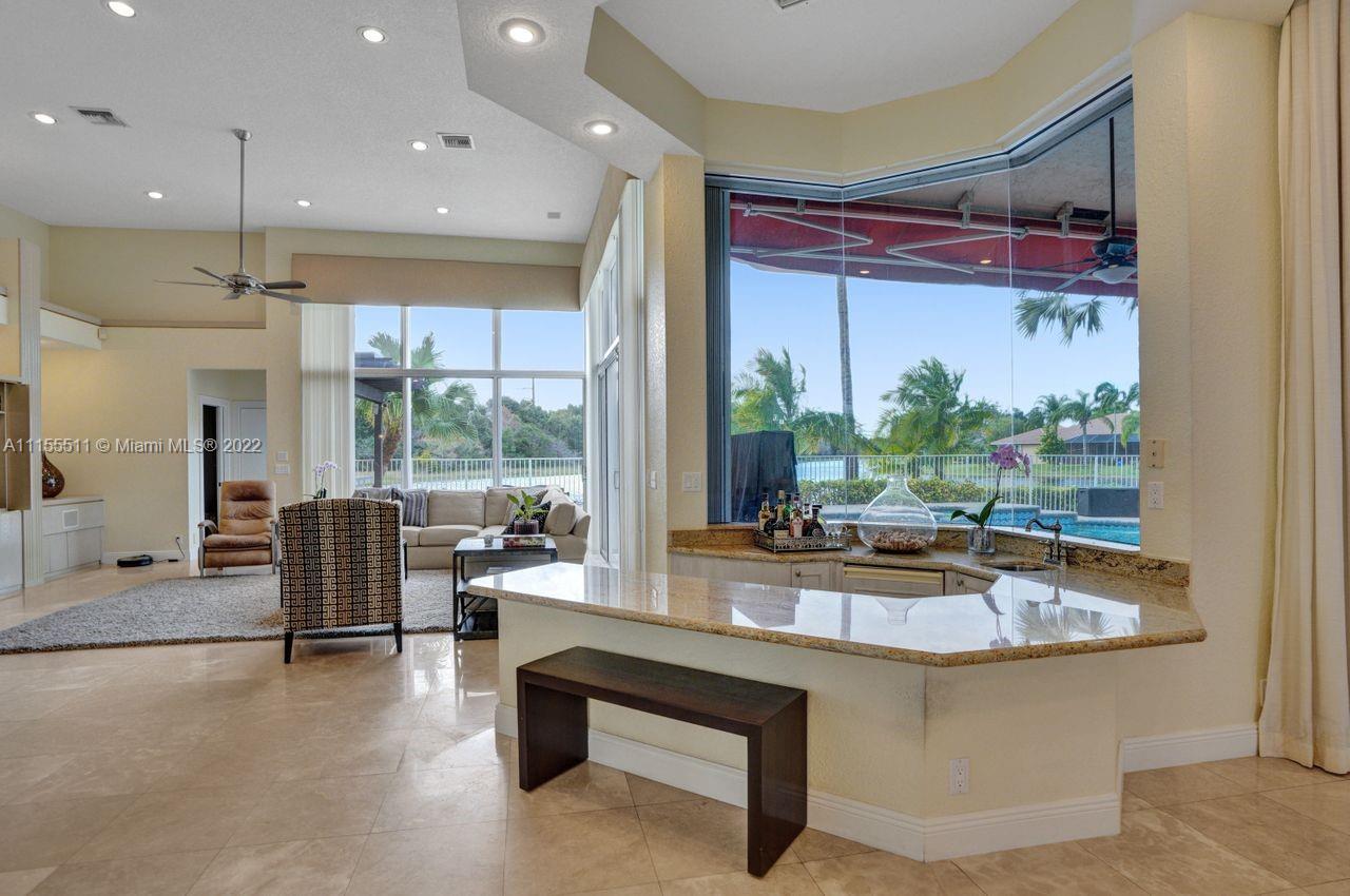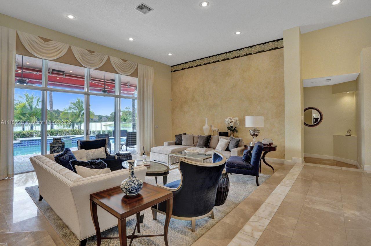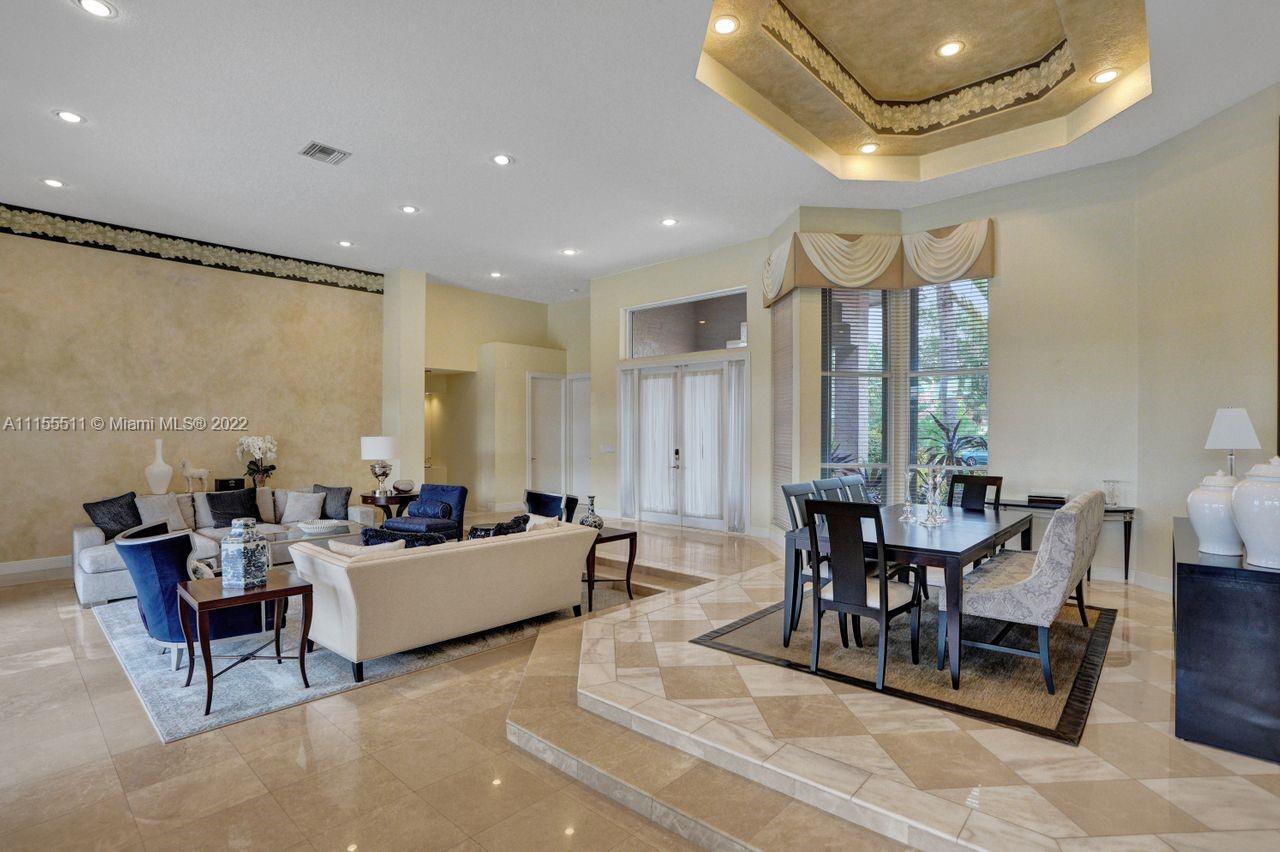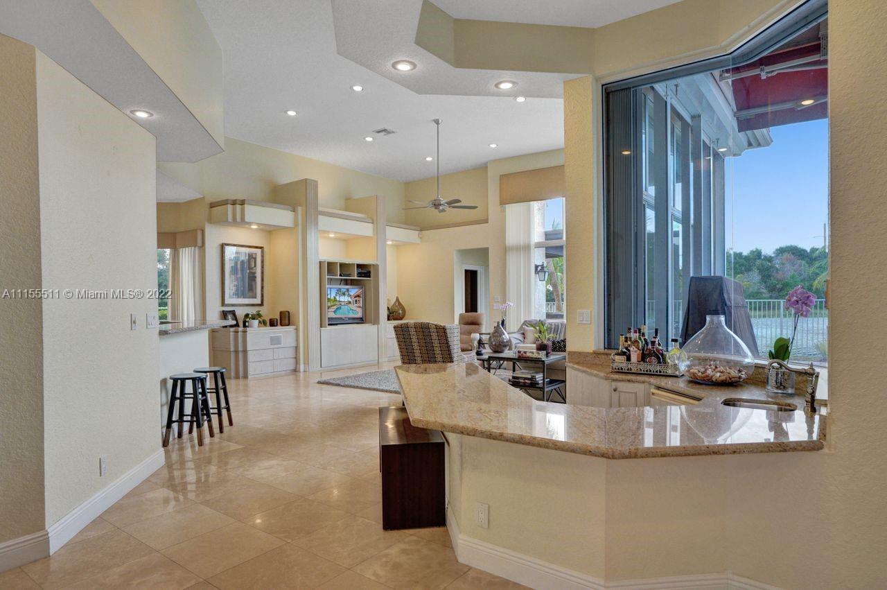 Absolutely gorgeous estate home on a huge 1/2 acre cul de-sac lot in Weston Hills Country club.Home shows great with 5 bedrooms and 5 baths with over 4000 sf living area. Open floor plan with high ceilings and marble flooring in main areas and real hardwood flooring in bedroooms.Nice open kitchen with stainless steel appliances, granite, breakfast area and huge family room. Step down bar area and nice formal area with views of pool and lake. Large master suite w/real wood flooring, tray ceiling and updated master bathroom.Stunning pool and patio area with barbeque and bar area, heated free form pool and jacuzzi with tranquil and long lake views. Oversized pie shaped lot with plenty of room to play and entertain. Home has accordion hurricane shutters, newer AC units and roof from 2009