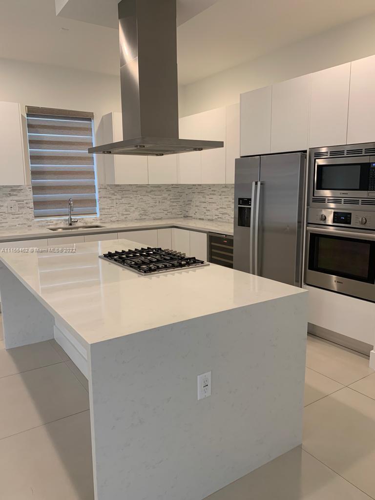 Beautiful two-story pool home located in prestige Doral Common. Elegant interiors, 4 bedrooms & 4 bathrooms (1 bed. 1st floor), formal living & dining room, family room, 2 car garage, laundry room, energy efficient water heater, full size washer and dryer, wood flooring in all bedrooms & stairs, aluminum stair railing, side-by-side Refrigerator/freezer with ice maker, free standing range with radiant top, microwave and wall oven combination, canopy wall & island hood, Italian wood cabinetry, dishwasher, wine cooler, outside rest area & summer kitchen