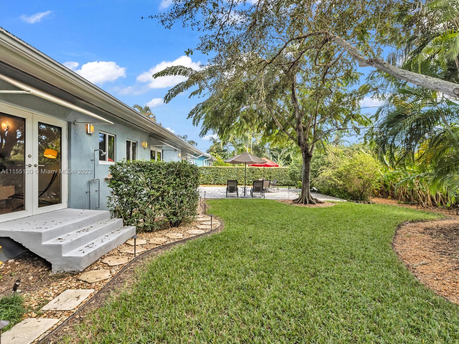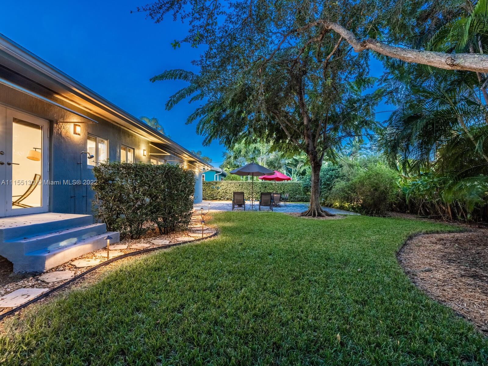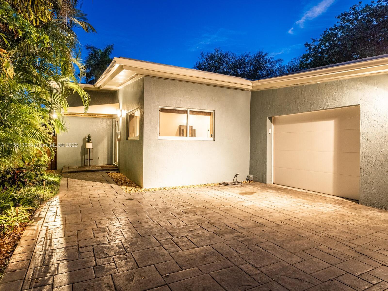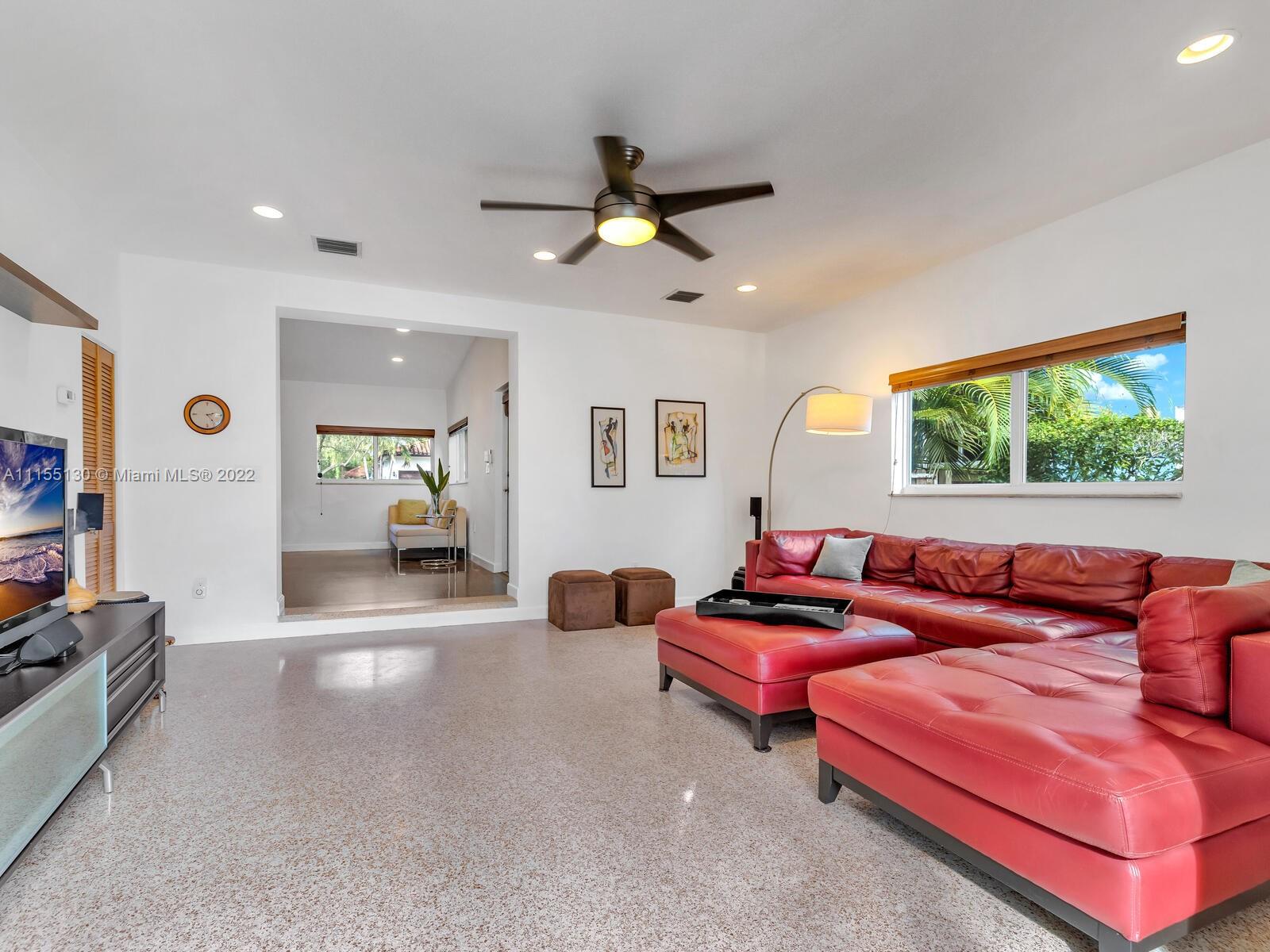Welcome to Shores Casa Bahia! Breathe easy in your own personal oasis on a quiet East Miami Shores cul-de-sac in this updated, open flow Mid-Century Modern home with massive lush, illuminated tropical rear gardens. Spacious living and grand entertaining indoors and out! Expansive, fluid living with vaulted ceilings, dining, spectacular updated eat-in chef’s kitchen and beautiful terrazzo floors. Huge media room for watching your favorite movies. Updated main bedroom en-suite retreat with double vanities, large shower, tub, huge walk-in closet and double French doors to the gardens. Bright guestroom and separate private entrance office-- perfect to work from home! Plus, impact windows-doors and 1-car garage. Tucked away, yet close to all the cool downtown Miami Shores shops and restaurants.