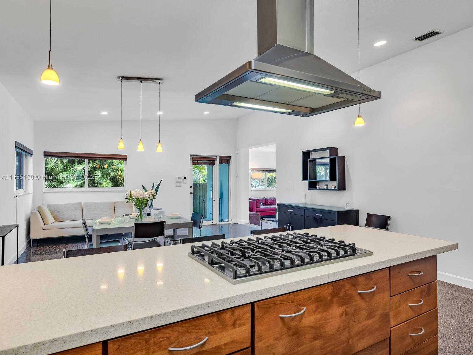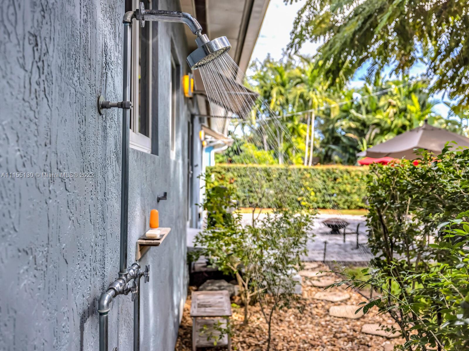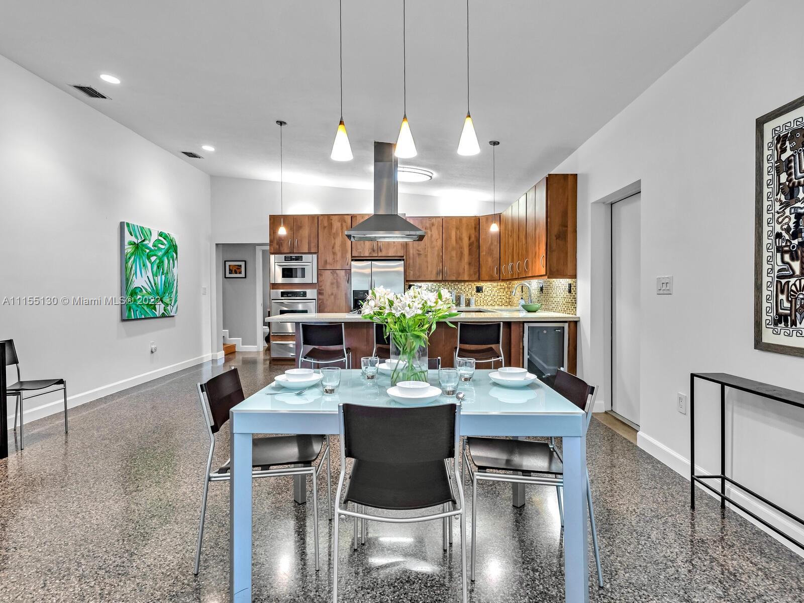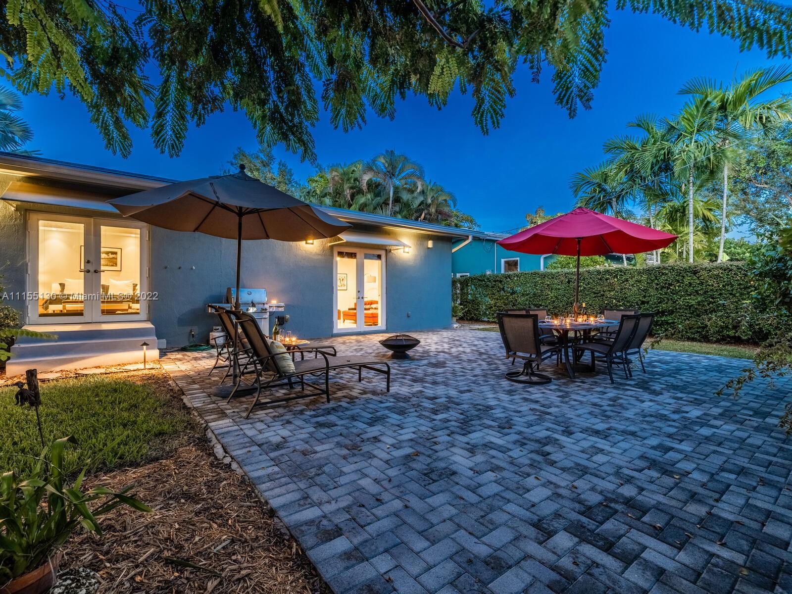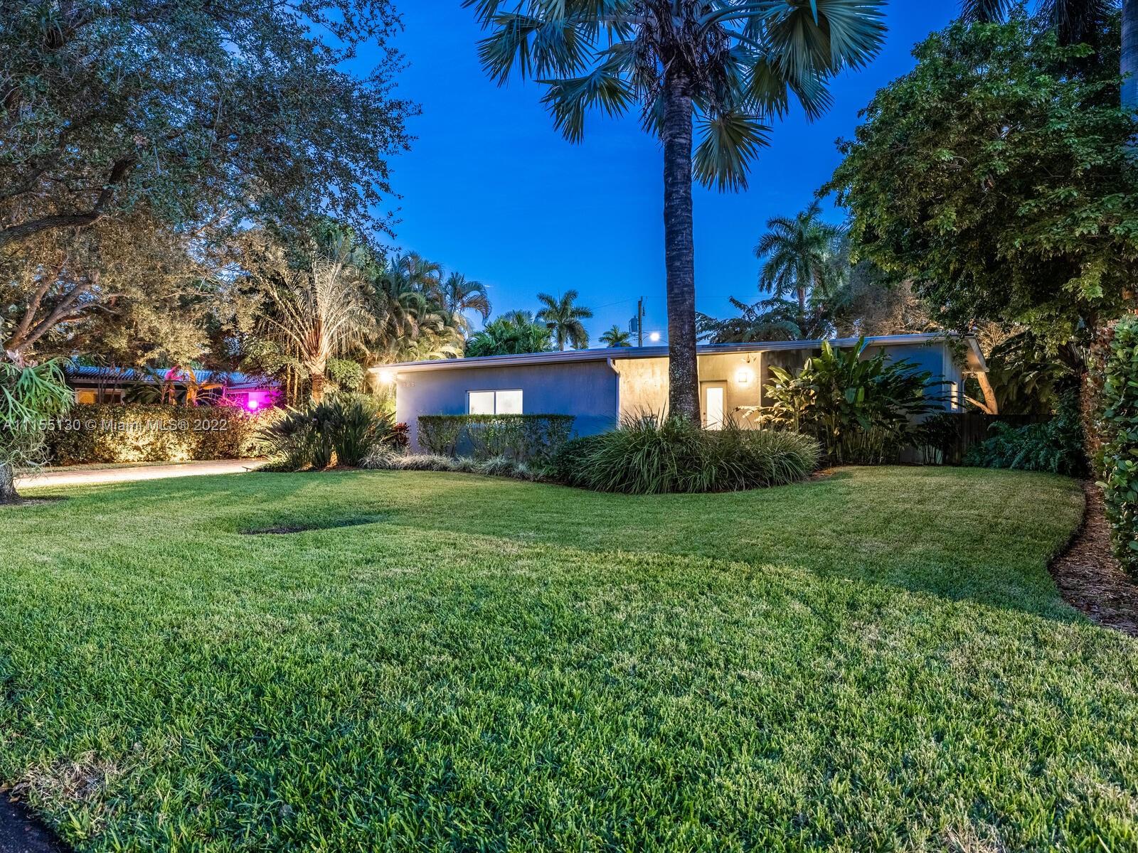 Welcome to Shores Casa Bahia! Breathe easy in your own personal oasis on a quiet East Miami Shores cul-de-sac in this updated, open flow Mid-Century Modern home with massive lush, illuminated tropical rear gardens. Spacious living and grand entertaining indoors and out! Expansive, fluid living with vaulted ceilings, dining, spectacular updated eat-in chef’s kitchen and beautiful terrazzo floors. Huge media room for watching your favorite movies. Updated main bedroom en-suite retreat with double vanities, large shower, tub, huge walk-in closet and double French doors to the gardens. Bright guestroom and separate private entrance office-- perfect to work from home! Plus, impact windows-doors and 1-car garage. Tucked away, yet close to all the cool downtown Miami Shores shops and restaurants.