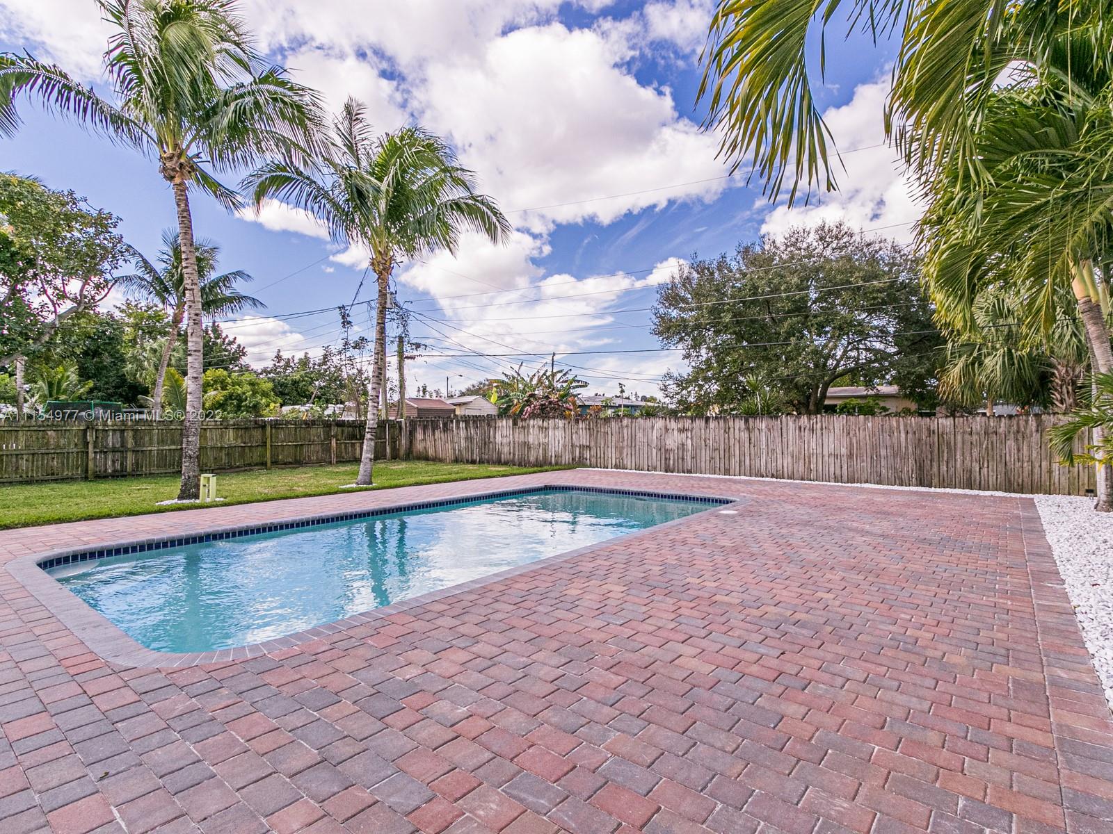 Wow! What a transformation on this Beautiful 4 Bed/2 Bath home w/ pool and large backyard. This home has a great open floor plan and meticulously updated with the most gorgeous finishes beginning with the top of the line kitchen cabinets and quartz counter tops with waterfall edge as well as new S/S appliances. New high end vinyl flooring, and bathroom updates as well. Hurricane windows and doors throughout property. New resurfaced pool and new deck as well! All new recessed lighting in home along with brand new electrical panel and rewiring. New tankless water heater, new washer/dryer. Security system with cameras surround the property, smart home. Home features a second entrance for MIL quarters or a future tenant. Move in Ready! The work has been done, just bring your furniture.