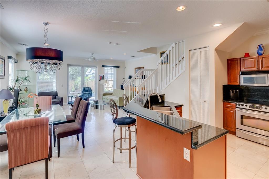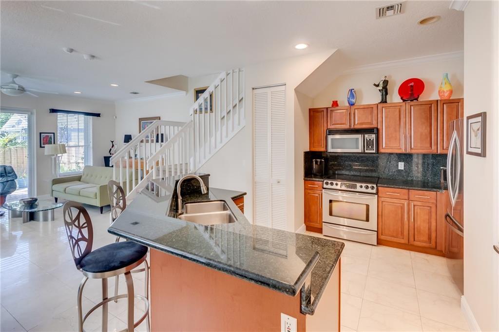 Corner unit townhouse over +/-2300 SF, 2-car garage, rooftop patio overlooking Downtown and a great backyard. This Fee-Simple townhouse feels more like a single family. First floor has an open concept kitchen, backyard access and1/2 bath. Perfect for entertaining. 2nd story has two very large bedrooms and an open loft being used as an ofc 3rd floor has a giant living room w/ wet bar & access to the patio overlooking the city & a bedroom with full bath. One of the best floorplans you can have for guests or work from home. Walking distance to restaurants, The Broward Center The River Walk Park, Las Olas Nightlife, Cooleys boat ramp. under 3 Miles to the airport, under 3 miles to the Ocean and fast access to 95 for commuting. The ideal location in the middle of everything. Room for a pool.